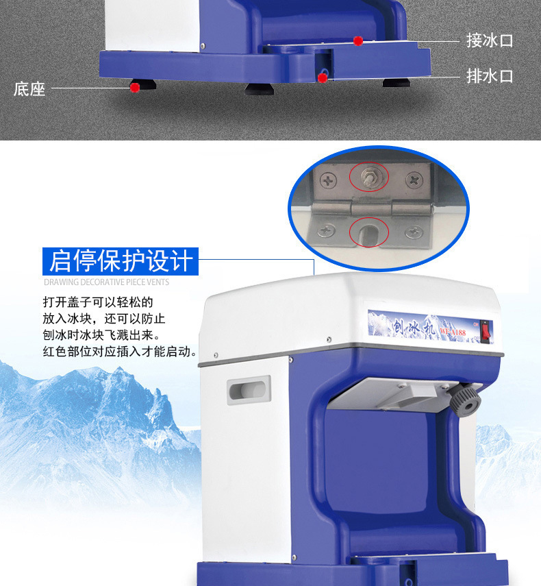 공장 직접 상업용 얼음 면도 기계 고출력 빠른 얼음 분쇄기 국경 간 발전 모래 얼음 기계 자동면 얼음 기계
