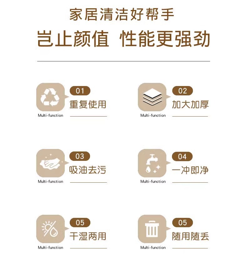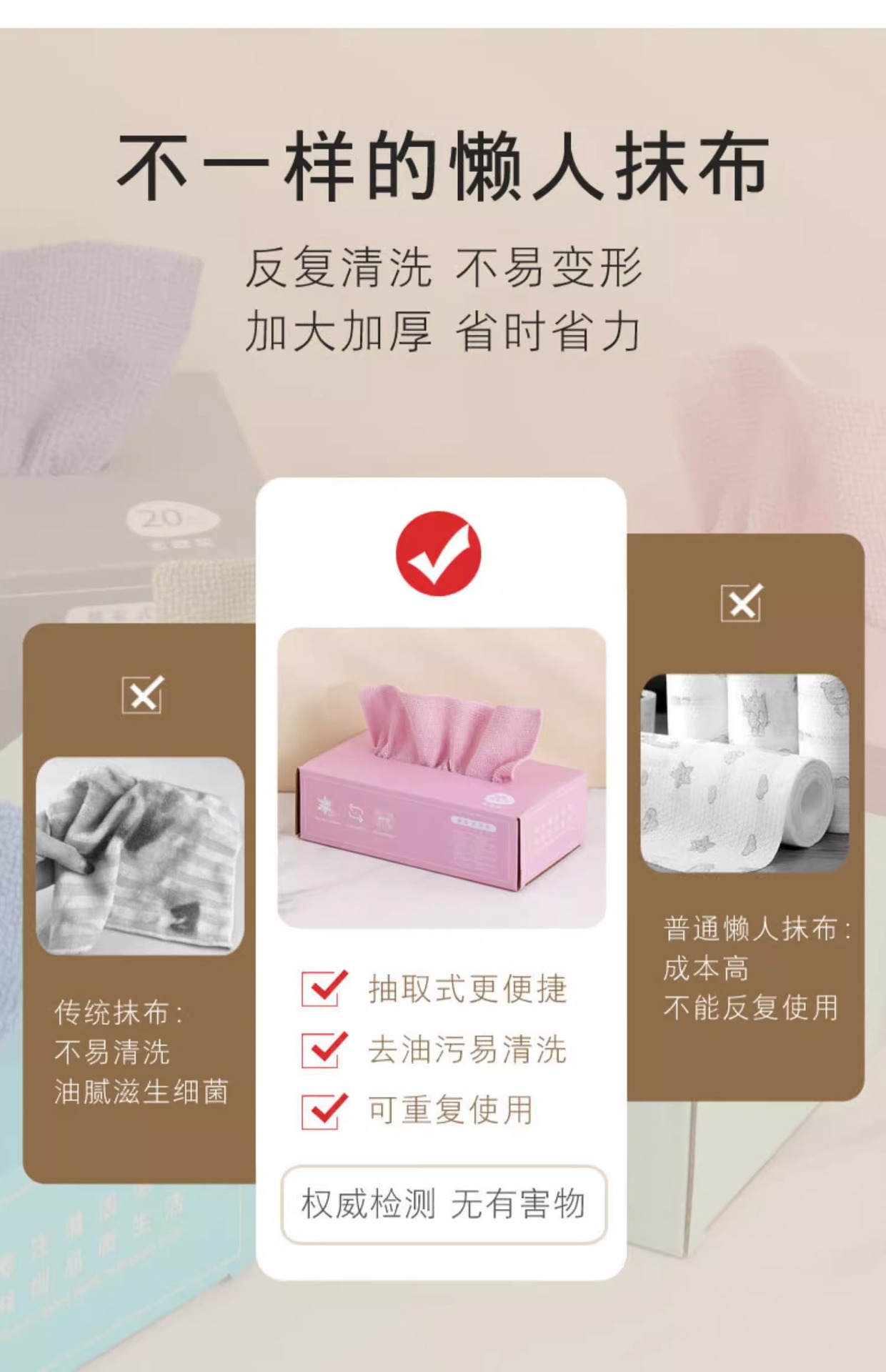 보푸라기가 없는 물을 흡수하는 위생적인 청소용 탈착식 걸레, 게으른 사람들을 위한 일회용 습식 및 건식 식기 세척용 천