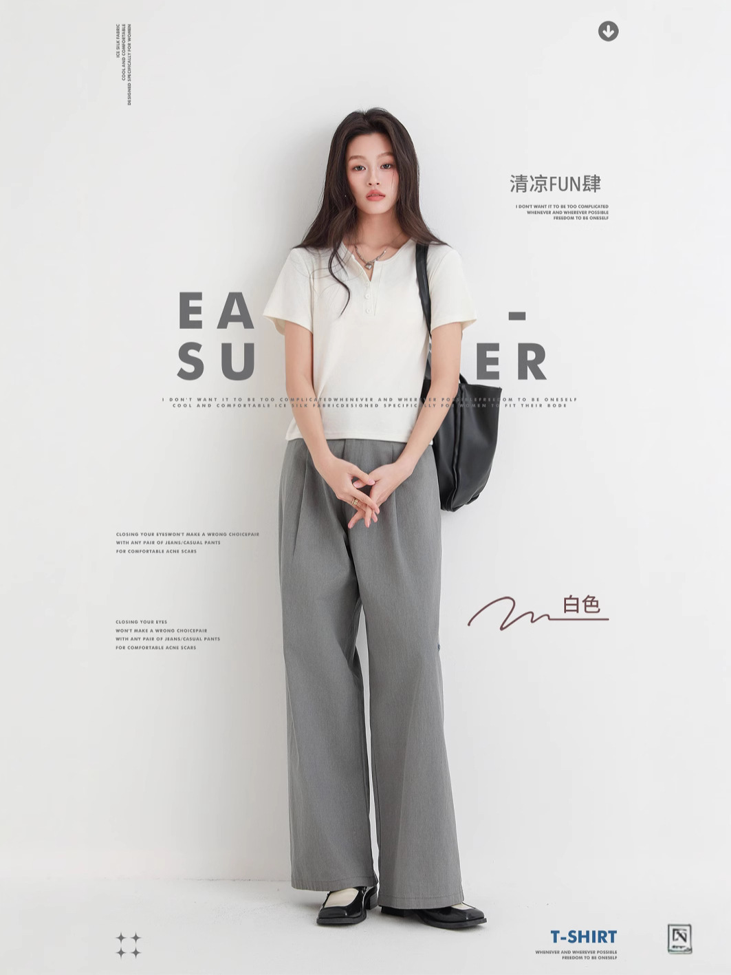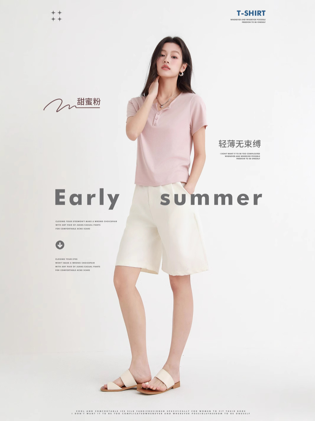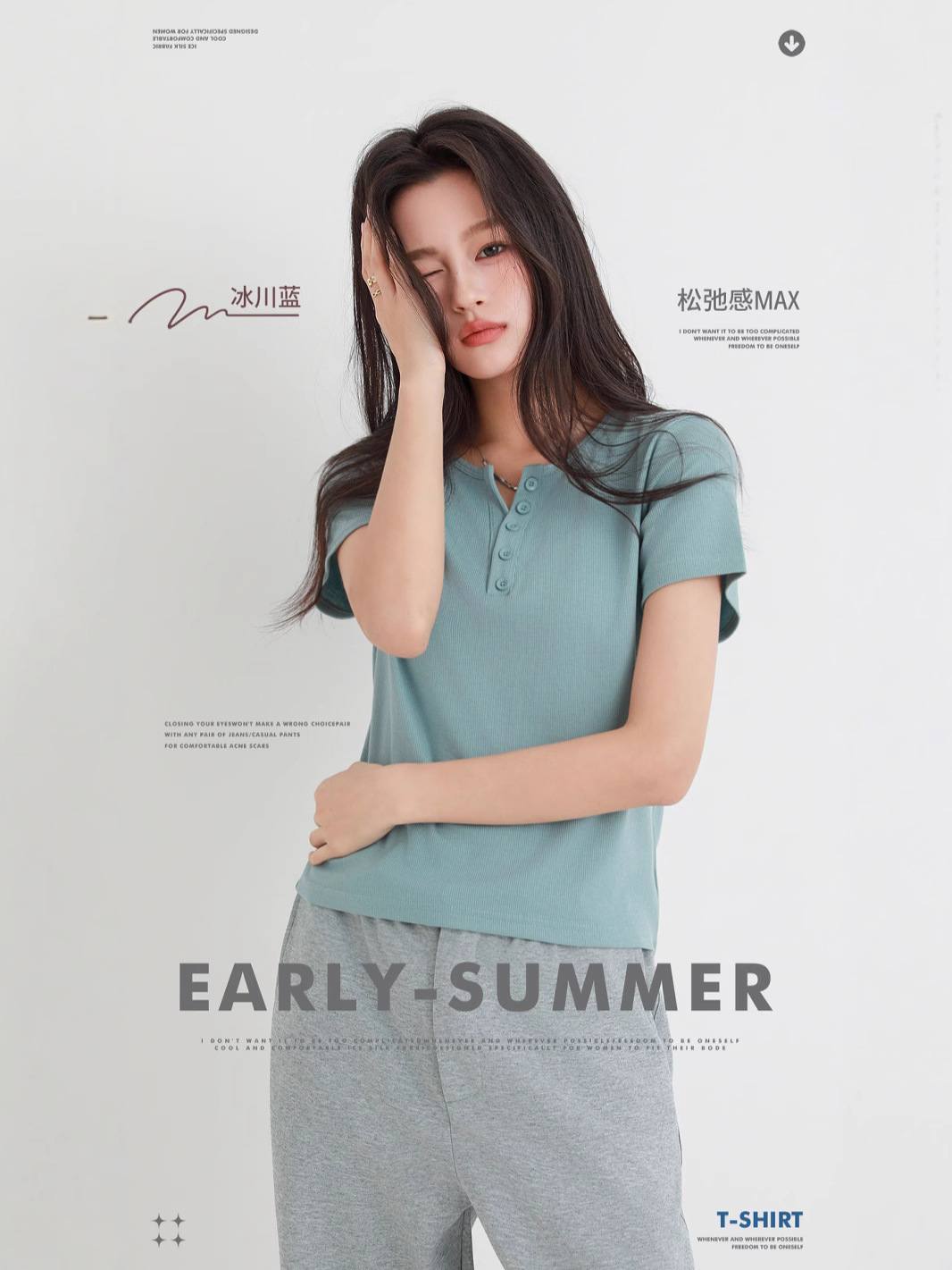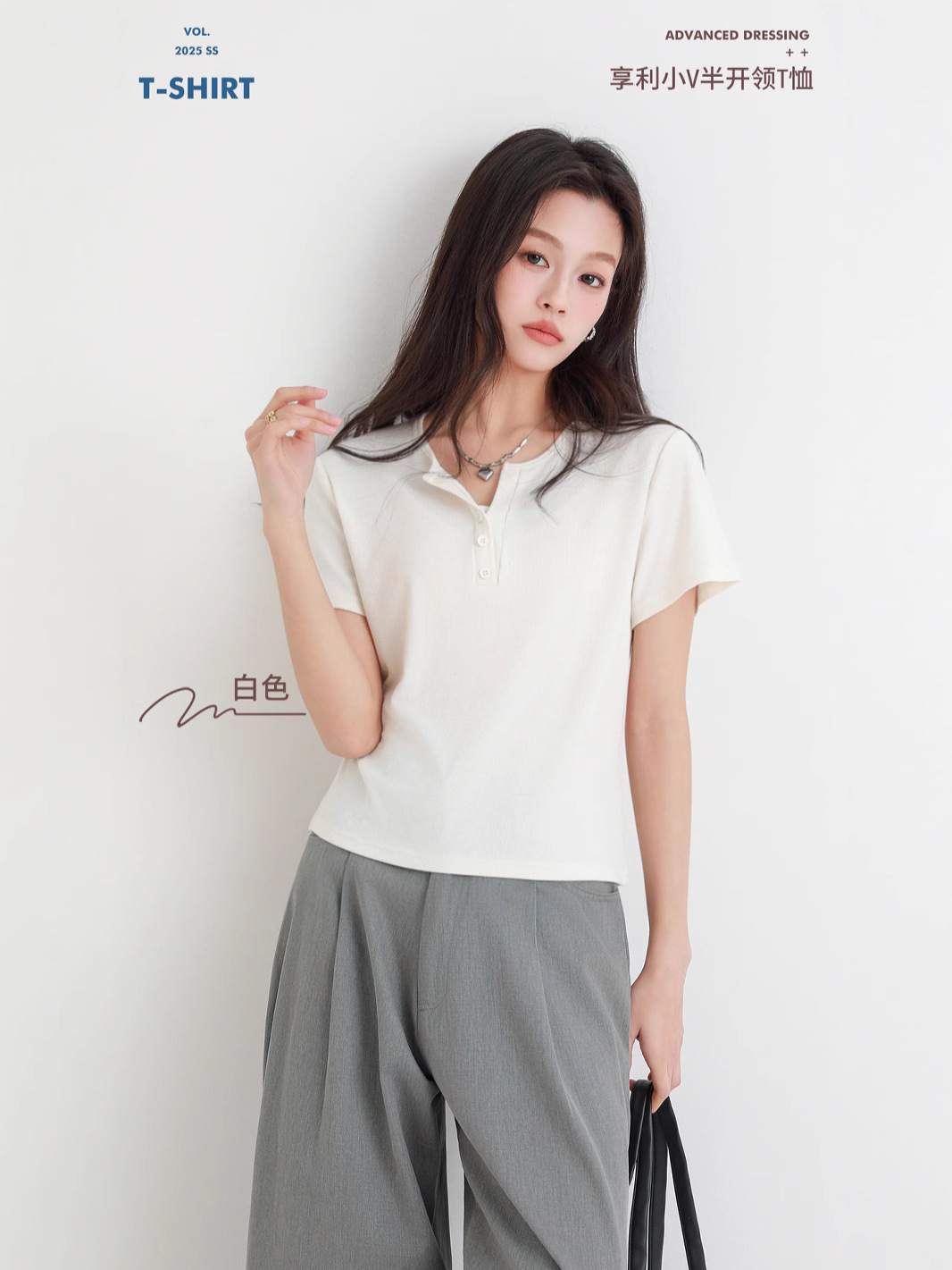 여름 텐셀 패브릭 반팔 여성용 티셔츠 조커 작은 V 넥 탑 여성용 캐주얼 슬림 핏 슬리밍 텐셀베이스 셔츠