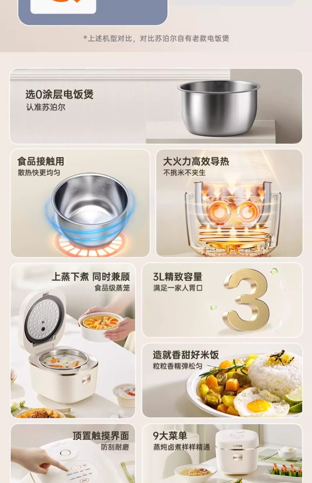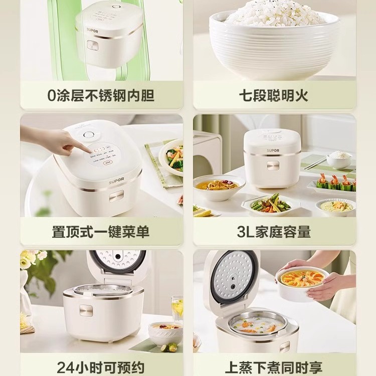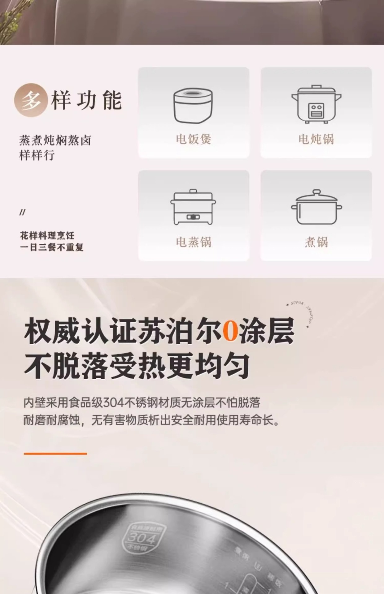보조 밥솥 코팅되지 않은 밥솥 2-4 명 3 리터 다기능 스테인레스 스틸 라이너 포트 SF30FC971