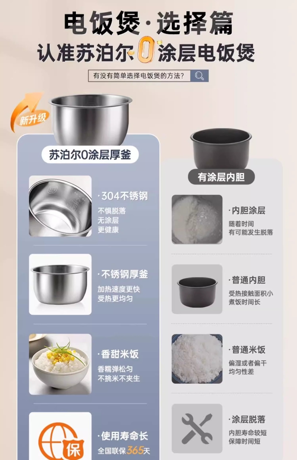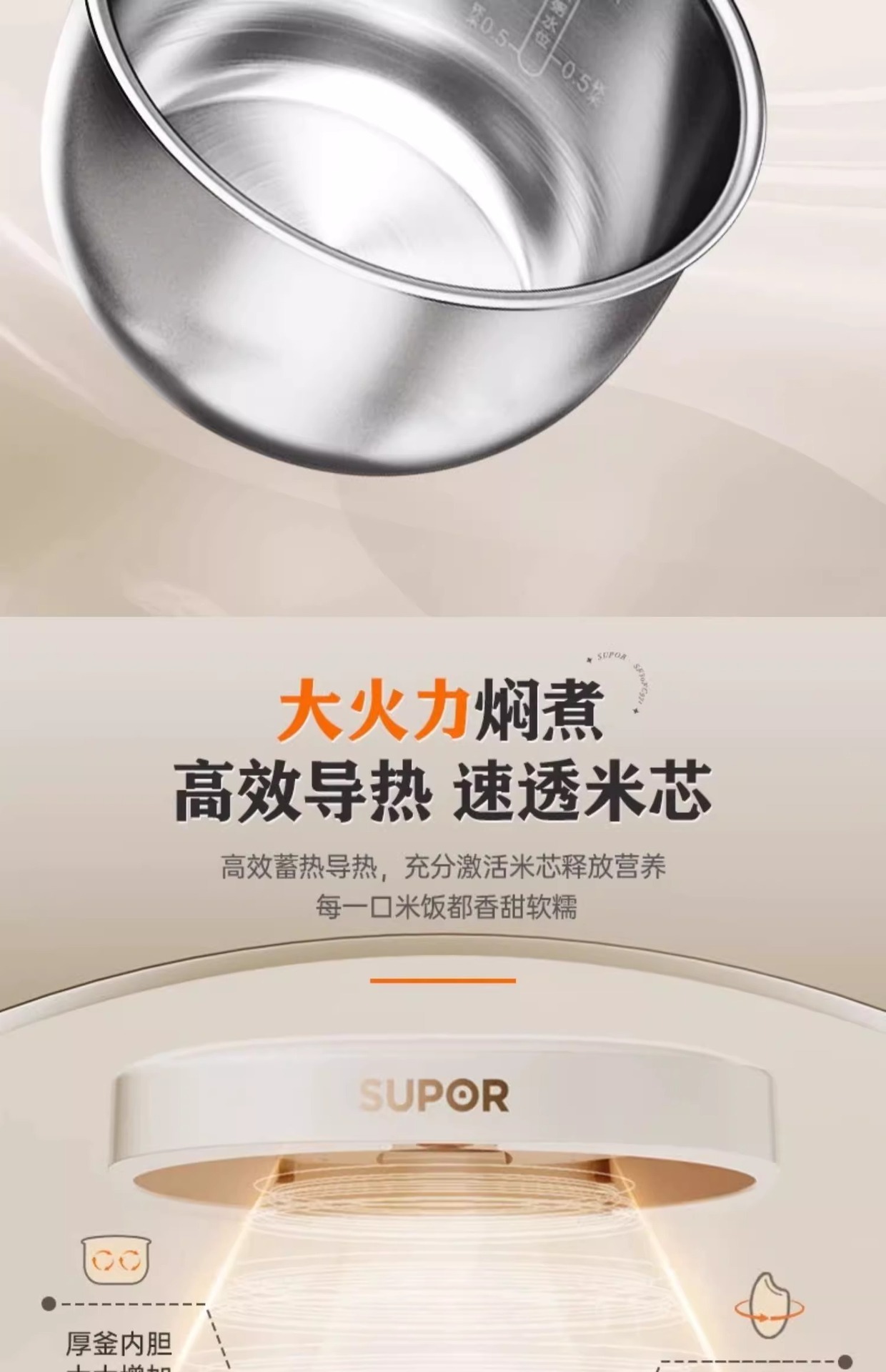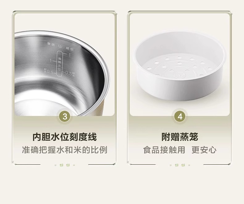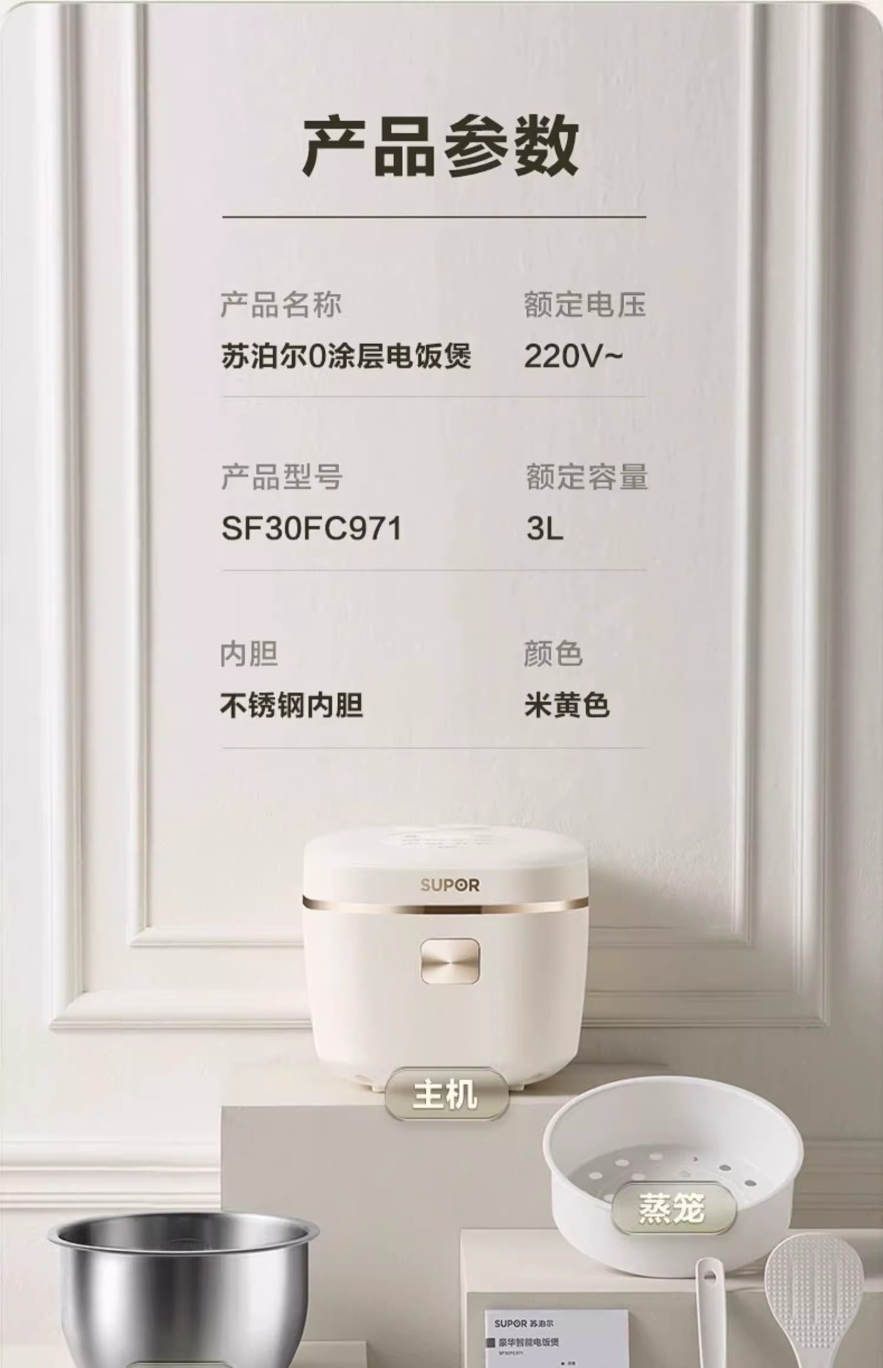 보조 밥솥 코팅되지 않은 밥솥 2-4 명 3 리터 다기능 스테인레스 스틸 라이너 포트 SF30FC971