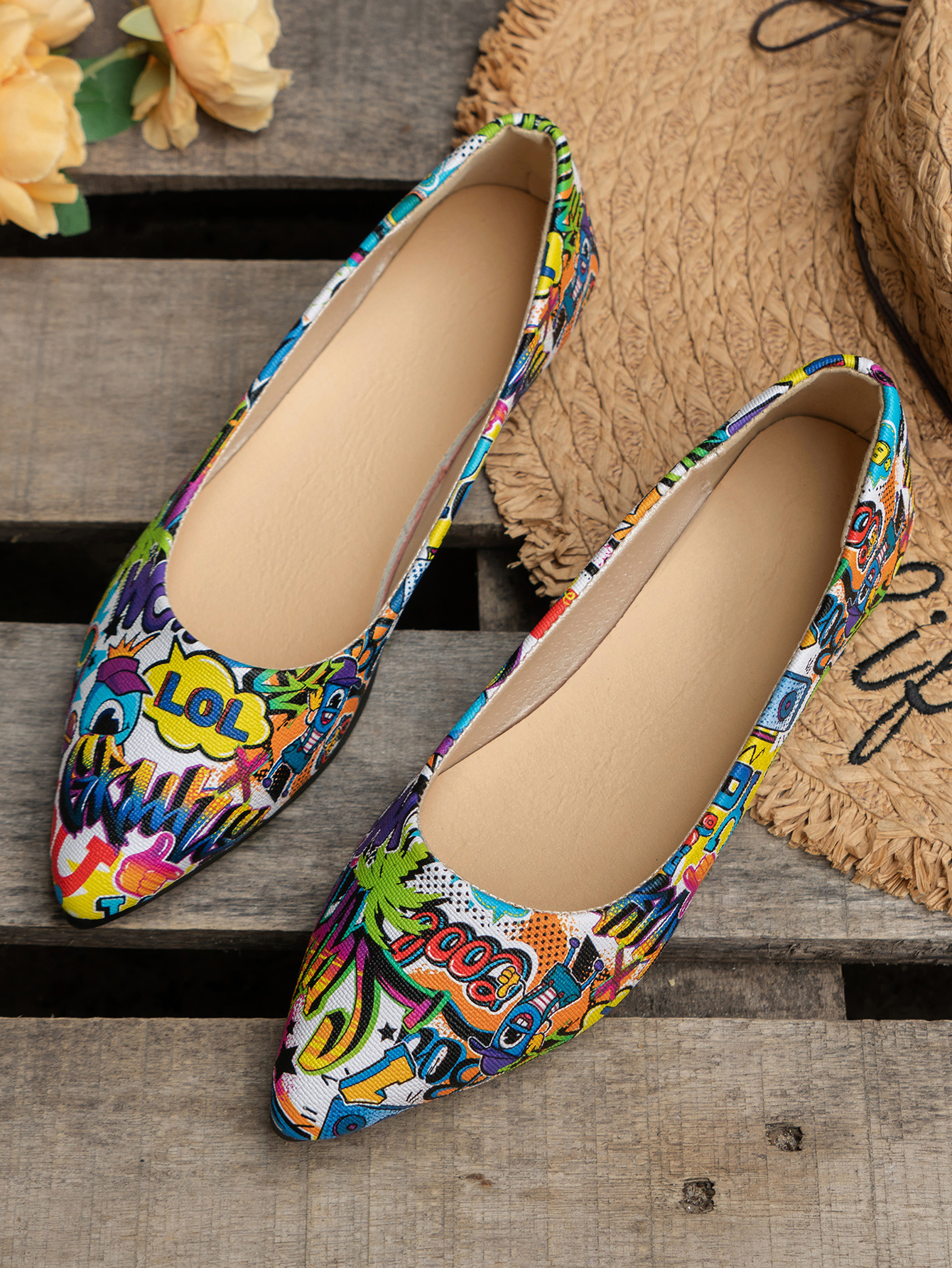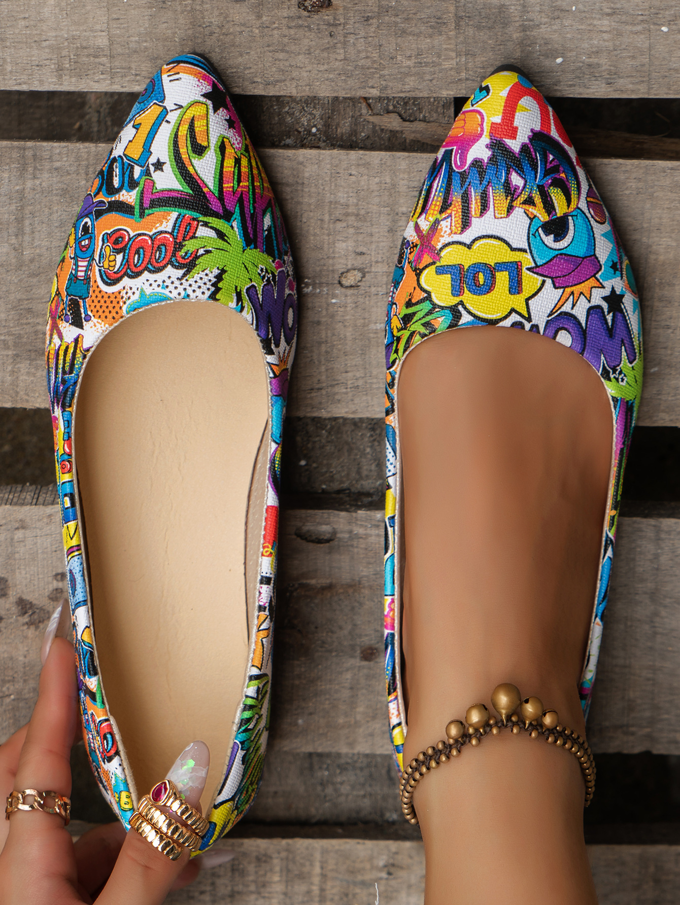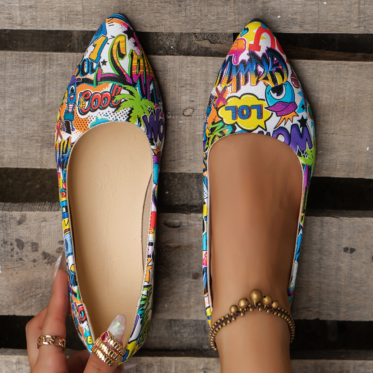 2026 봄 가을 신상 유럽 및 미국 패션 프린트 크로스보더 대외 무역 대형 사이즈 플랫 슈즈 포인티드 토 슬립온 여성화