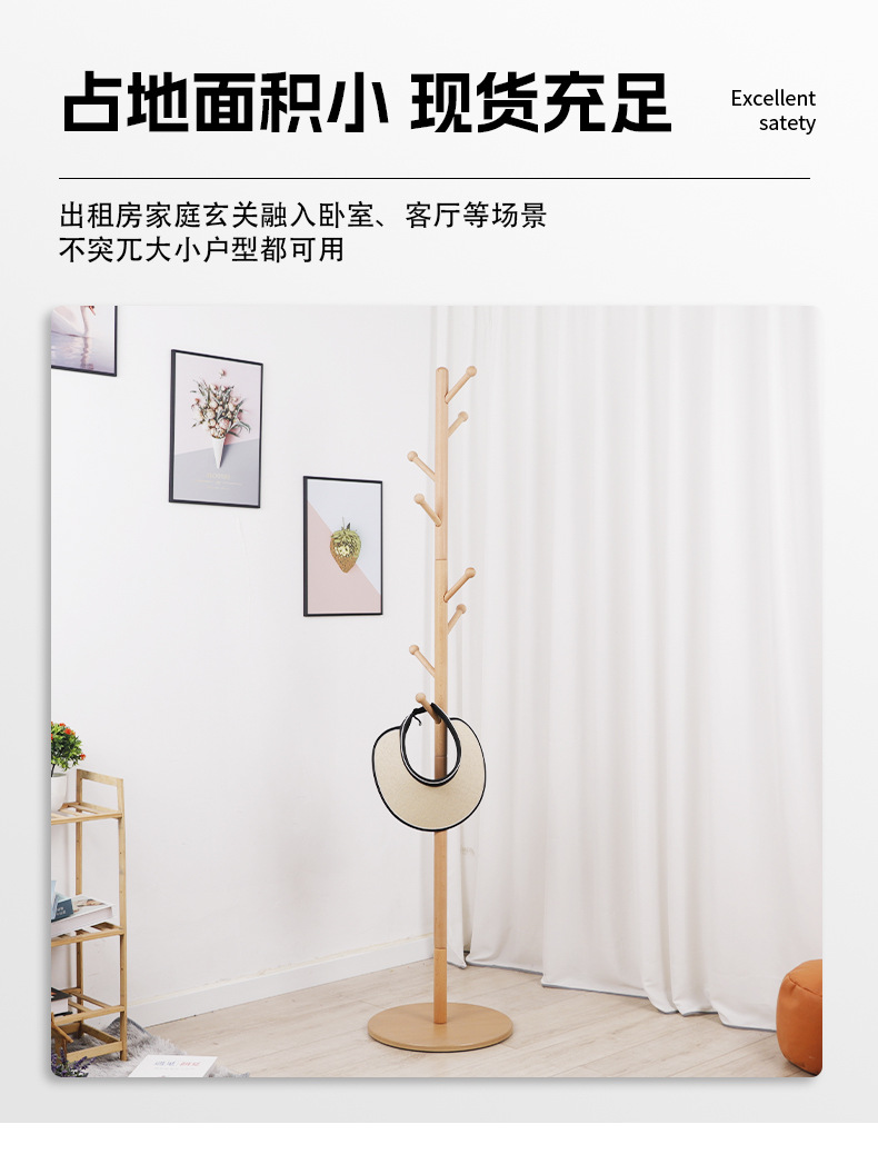 모든 단단한 나무 코트 랙 가정용 침실 거실 바닥-서 있는 옷걸이 Bold 수직 옷 옷걸이 가방 옷걸이