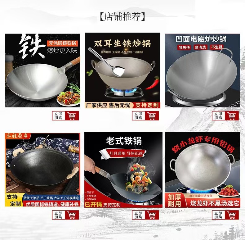 알루미늄 냄비 구식 가정 요리 가재 알루미늄 냄비 워크 가정용 호텔 상업 매점 이나럴 요리 블랙 수프가 아닌
