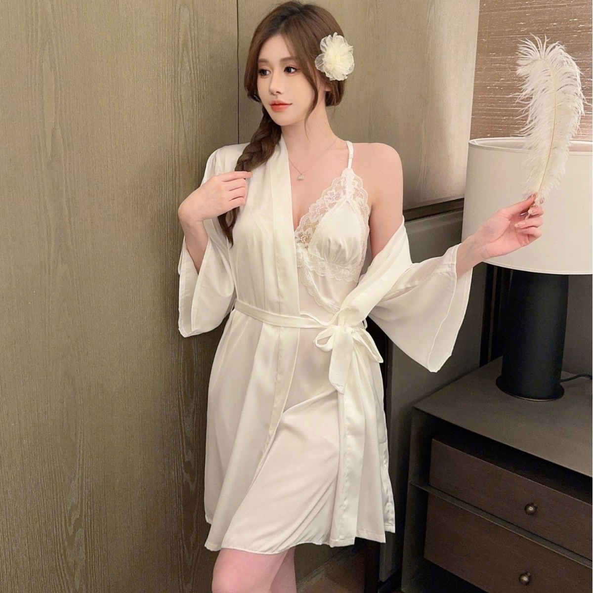 봄과 여름 새로운 여성의 여름 느슨한 플러스 사이즈 웨딩 모닝 가운 캐주얼 원피스 나이트 가운 실크 목욕 가운 외부 가운