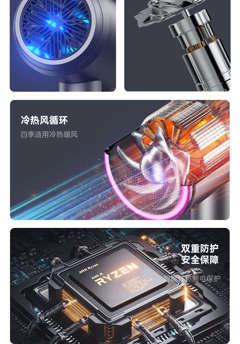 독일의 새로운 헤어 드라이어 홈 기숙사 학생 네거티브 이온 부상 없음 고출력 감기 및 뜨거운 바람 음소거 머리 부는