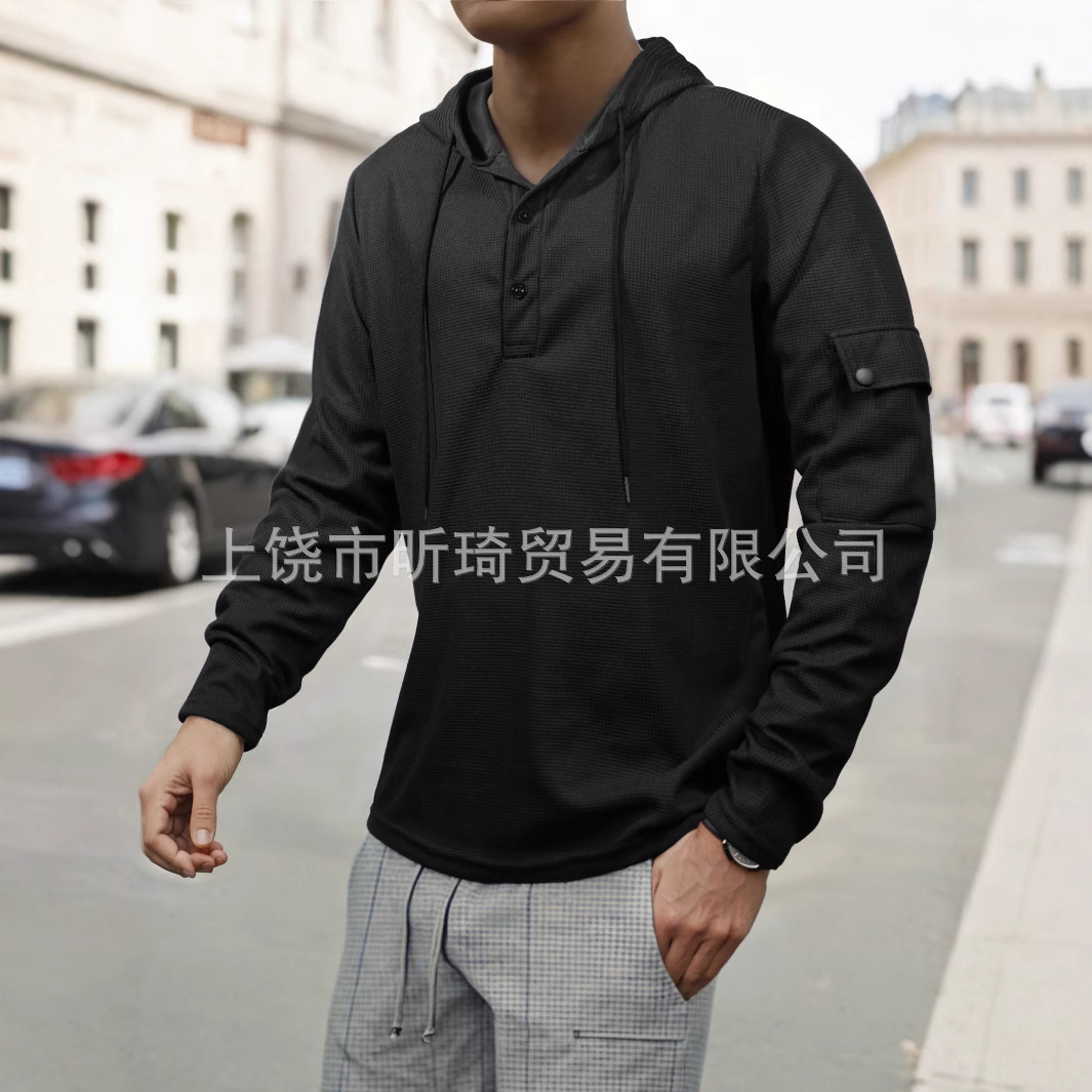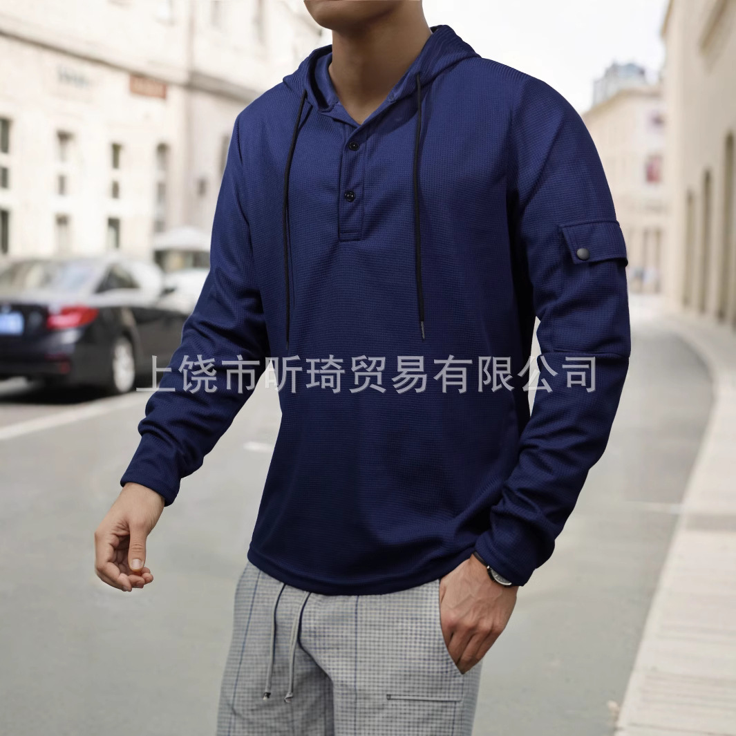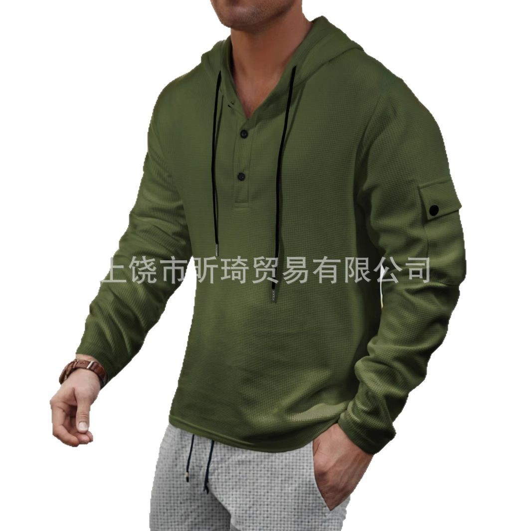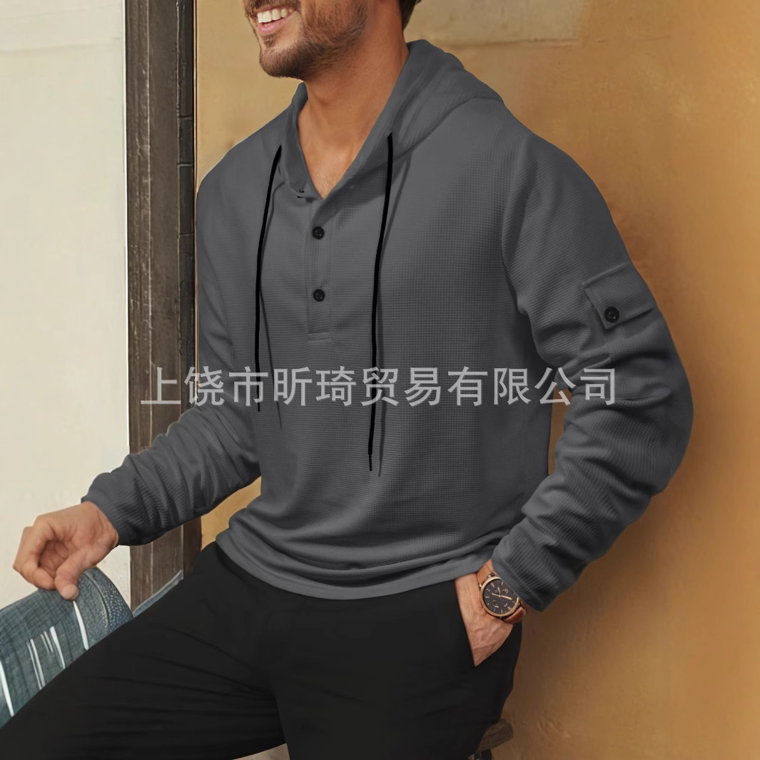 2025 유럽과 미국 국경 봄과 여름 새로운 플러스 사이즈 남성 무거운 대형 와플 후드 스웨터 얇은