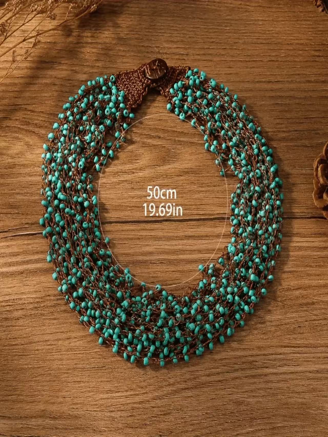 유럽과 미국의 성격 수제 쌀 구슬 목걸이 보헤미안 패션 과장된 니트 구슬 스웨터 목걸이 액세서리 도매