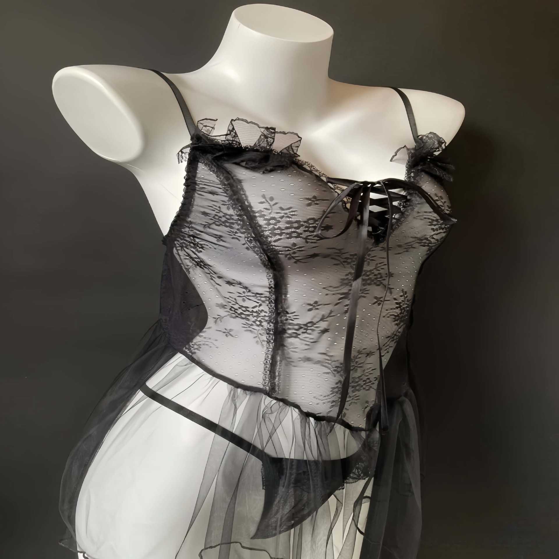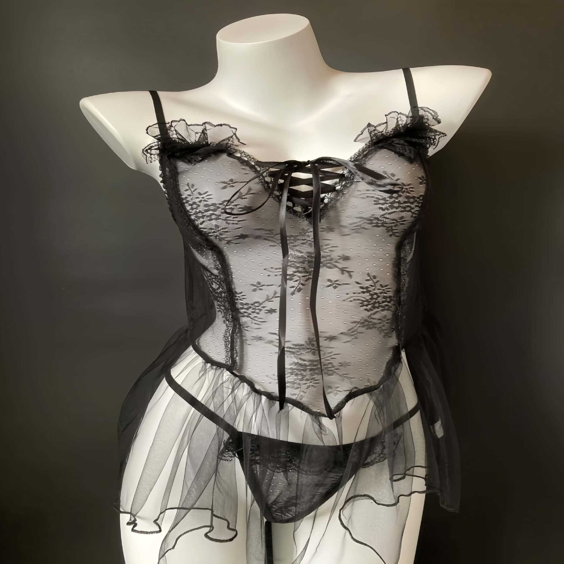 Drunk Cellar Sexy Lingerie Lace Nightgress Open File 무료 번쩍이는 관점 파자마 메이드 유혹 테이 베일