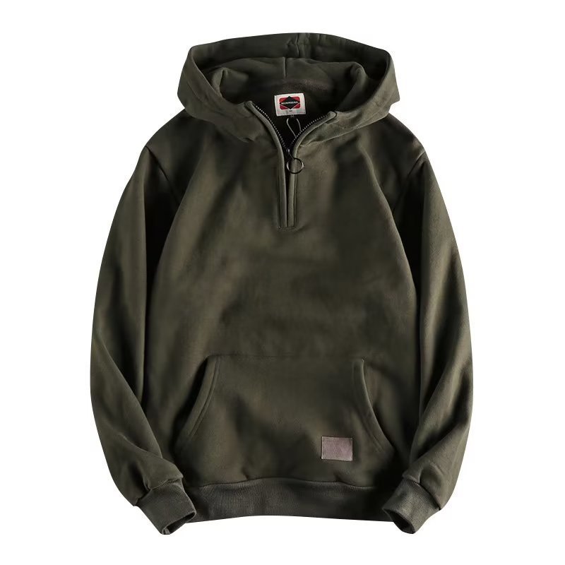 새로운 하프 지프 후드 스웨터 남자 아메리칸 스타일 레트로 무거운 두꺼운 커플 포켓 칼라 후디 코트 코튼