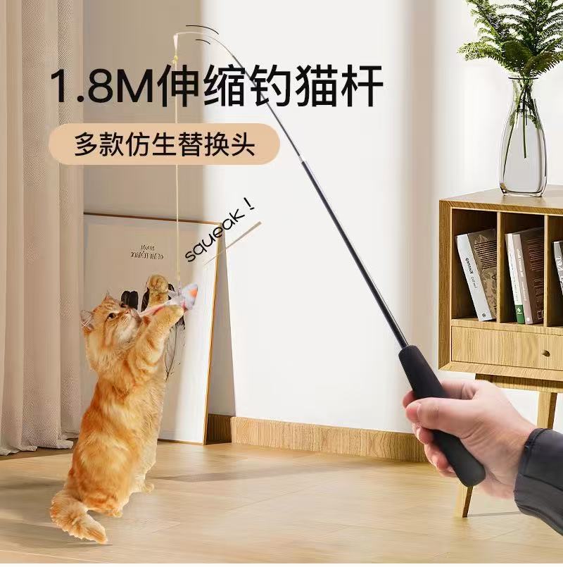 2.2m 섹션 텔레스코픽 고양이 티저 스틱 + 얼룩덜룩한 깃털 교체 헤드