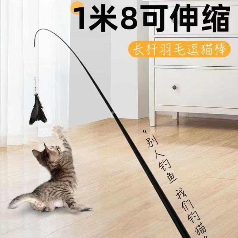 2.2m 섹션 텔레스코픽 고양이 놀리는 막대 + 내부 핑크 깃털