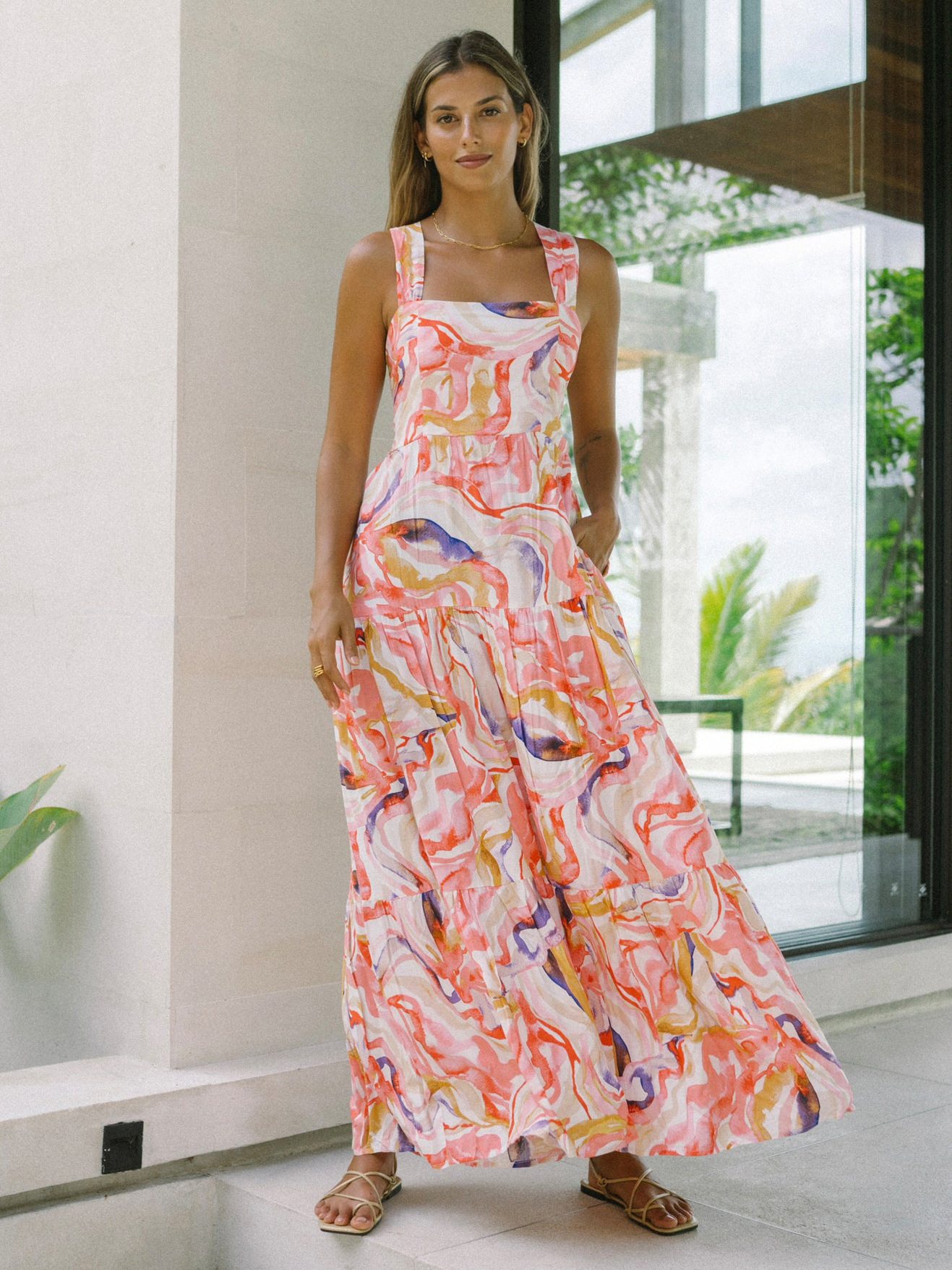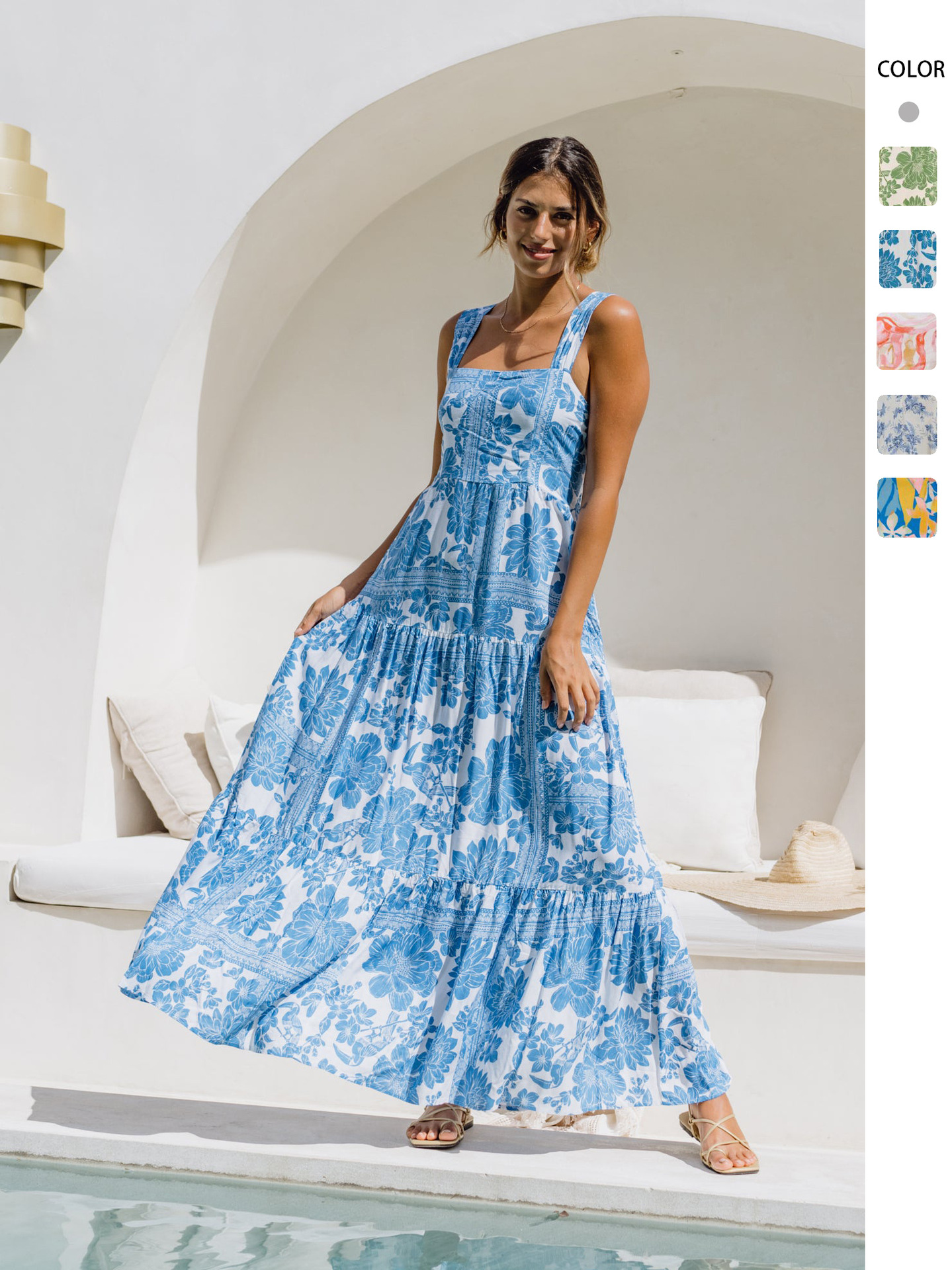 재고 2025 유럽과 미국의 국경 간 독립 역 새로운 느슨한 슬링 원피스 보헤미안 홀리데이 스타일 비치 원피스