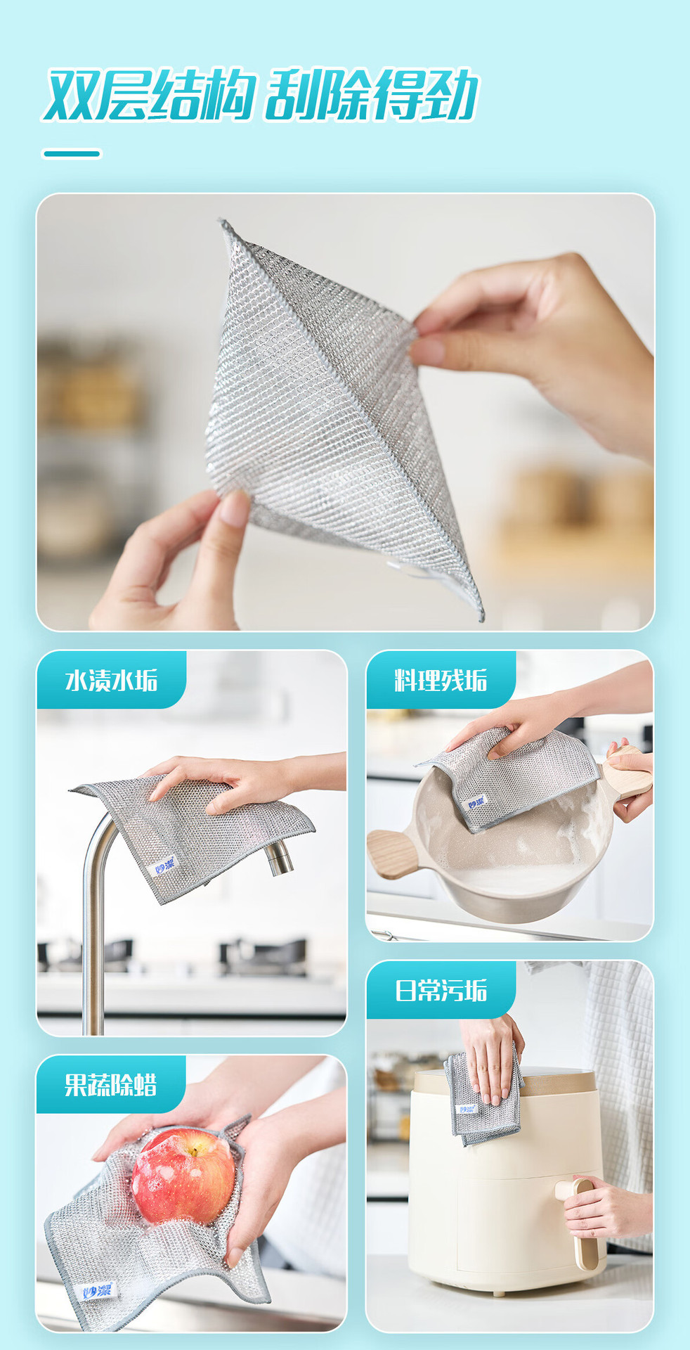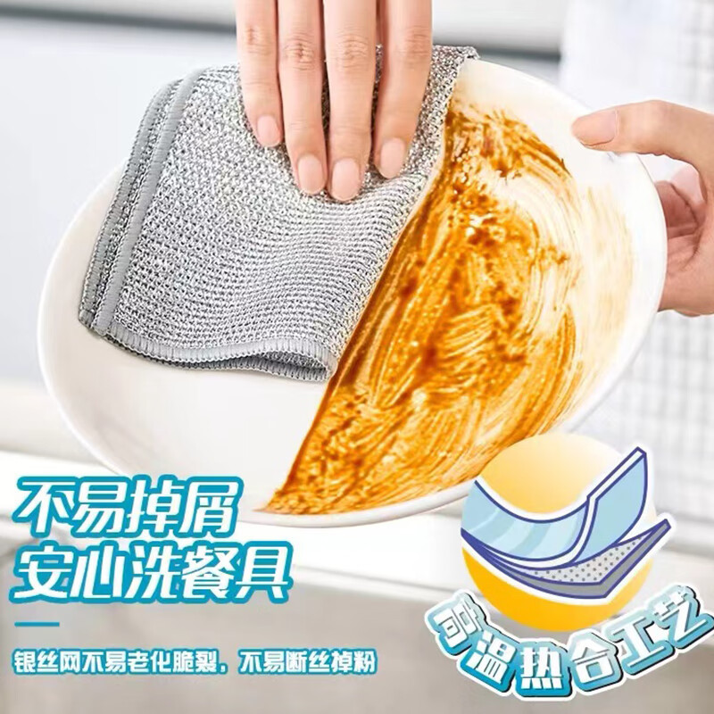 Miaojie 스틸 와이어 접시 세척 천 오일이없는 두꺼운 실버 공 접시 세척 천 주방 특수 소원 세척 냄비 금속 와이어 청소 천