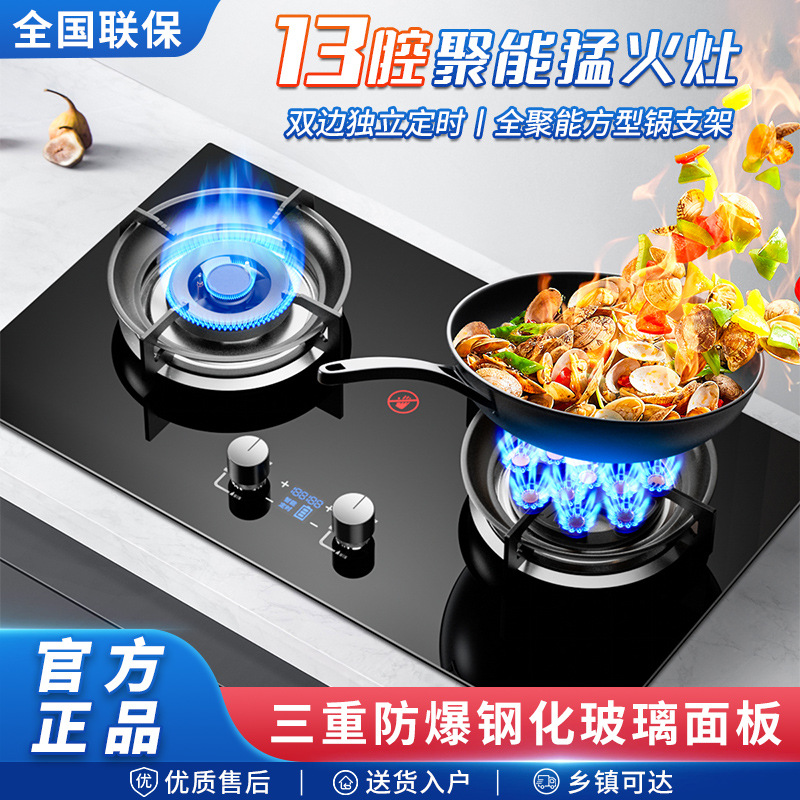 도매 큰 화력 13 공동 슈퍼 치열한 화재 가스 스토브 더블 스토브 가정용 천연 가스 액화 가스 테이블 임베디드 가스 스토브