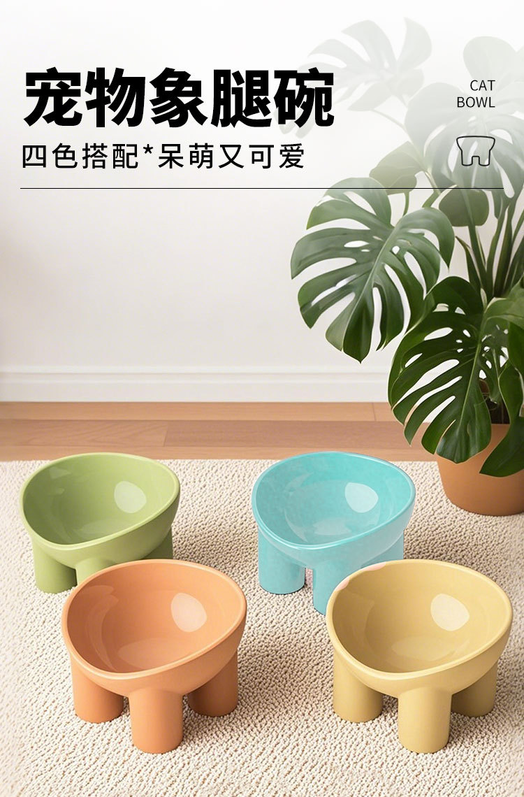 국경 간 새로운 마카롱 컬러 코끼리 다리 목 보호 그릇 고양이 그릇 고양이 그릇 안티 노크 애완 동물 그릇 식품 도구 도매