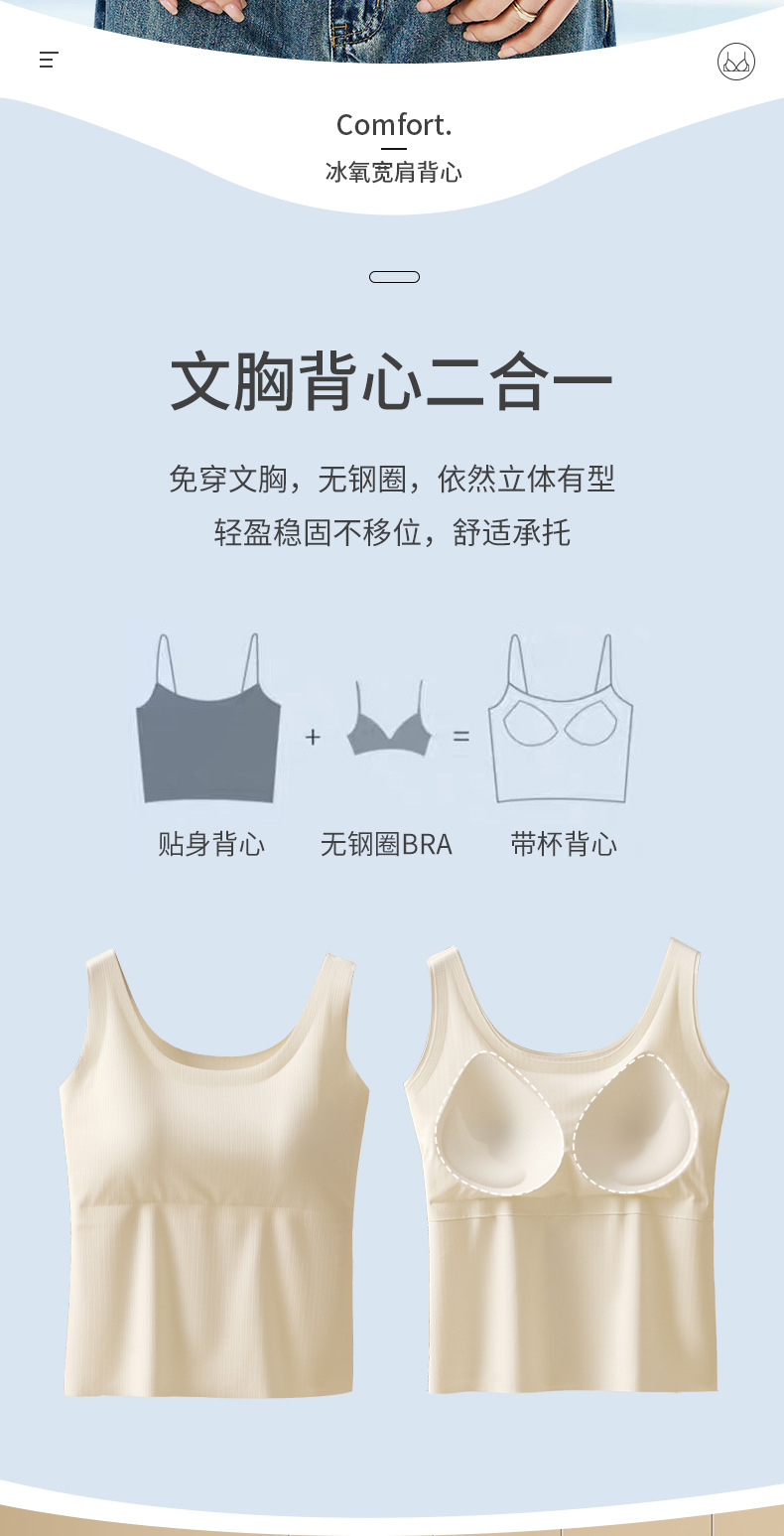 여름 폭발 벌거 벗은 감각 민소매 조끼 긴 추적없는 뷰티 백 속옷 내부 및 외부 여성 탑