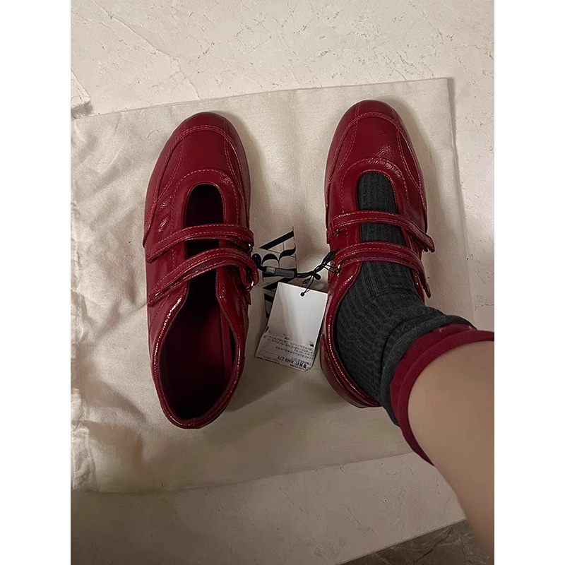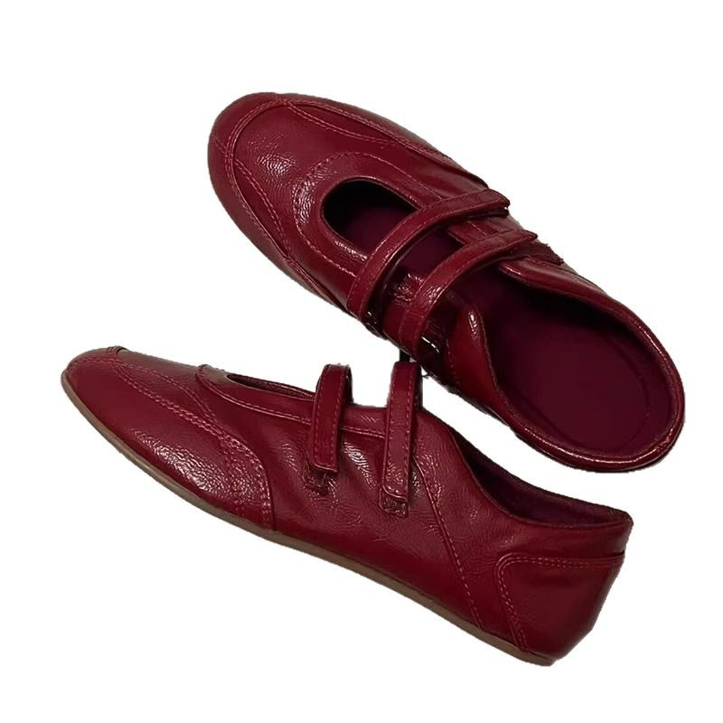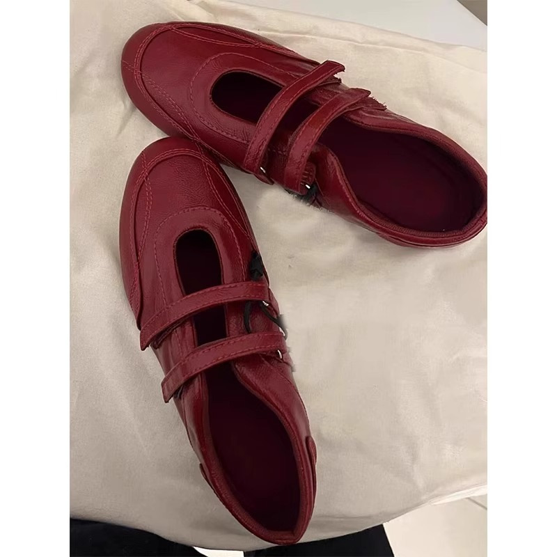 화이트 ~ 벨크로 캐주얼 운동화 여자 올 매치 발레 스타일 메리 제인 레드 플랫 슈즈 트렌디 로퍼