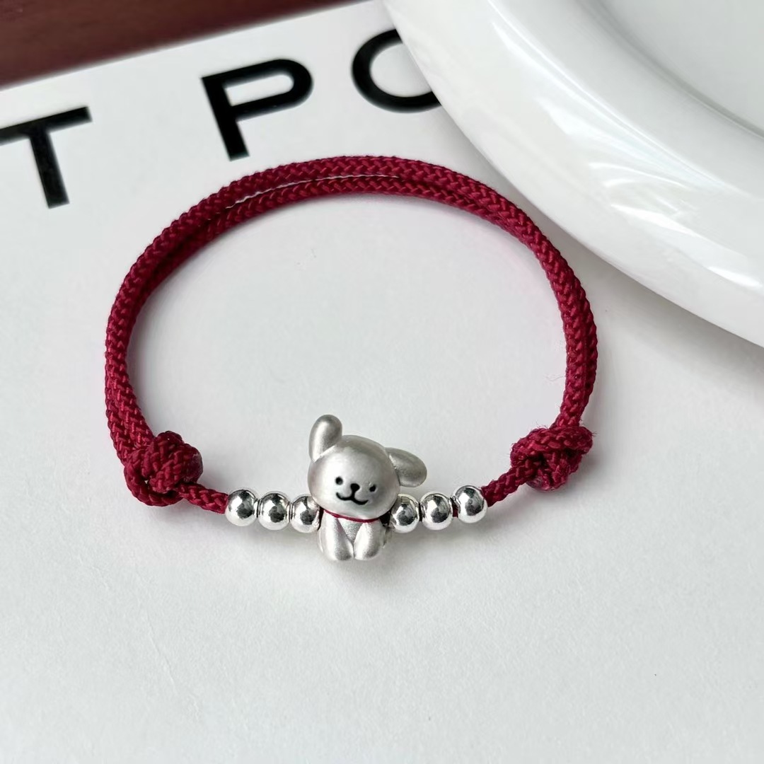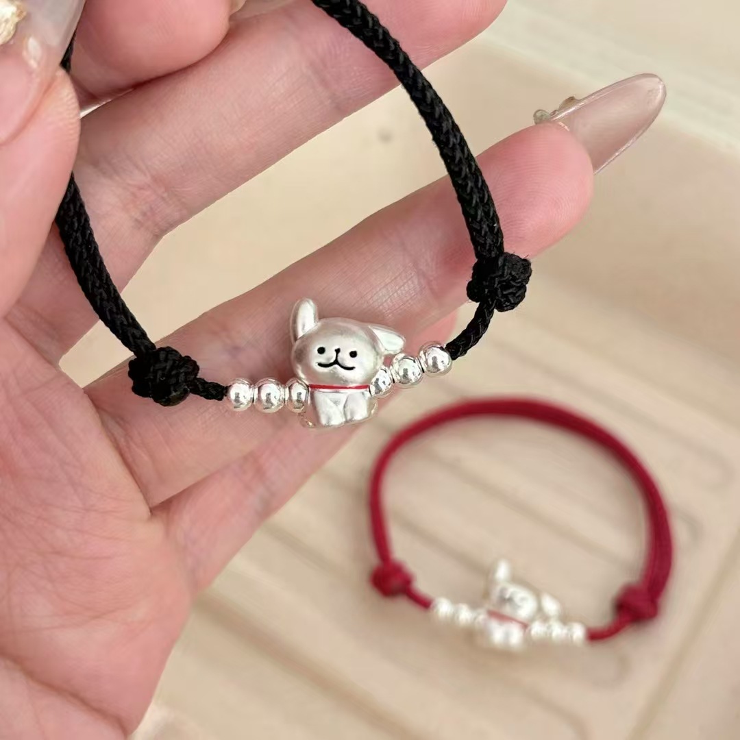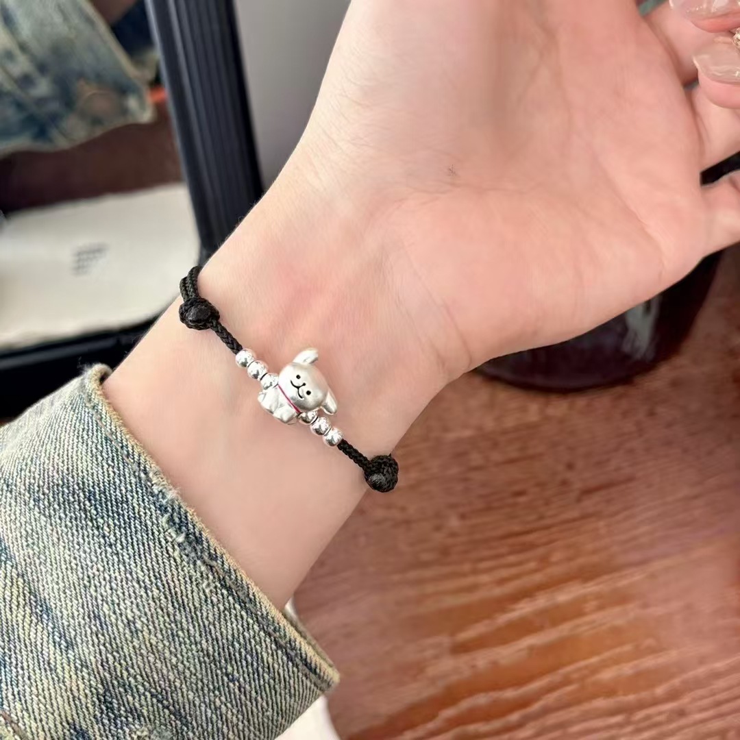 999 발 실버 라인 개 팔찌 스털링 실버 강아지 짠 손 로프 커플 틈새 간단한 문자열 올매치 실버 보석
