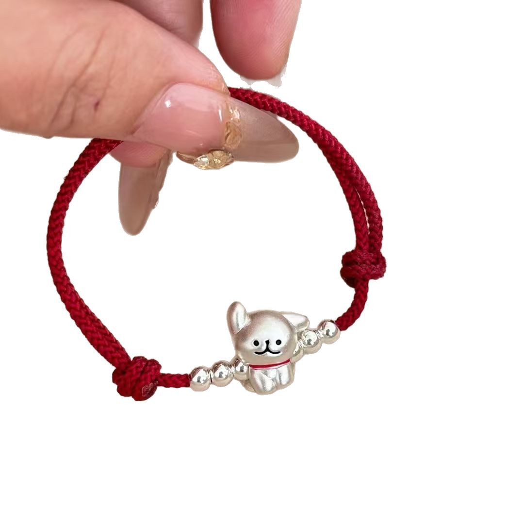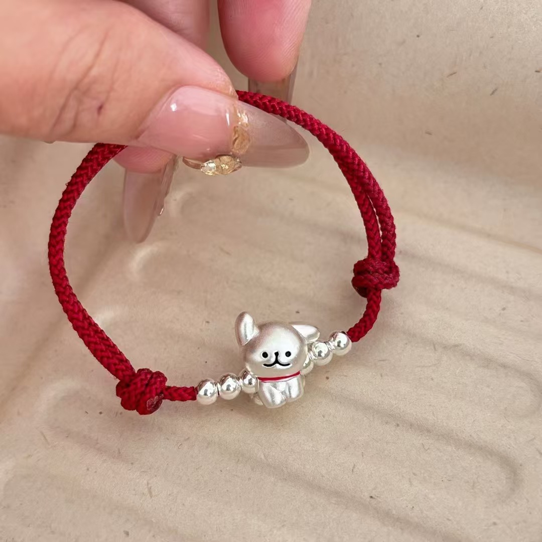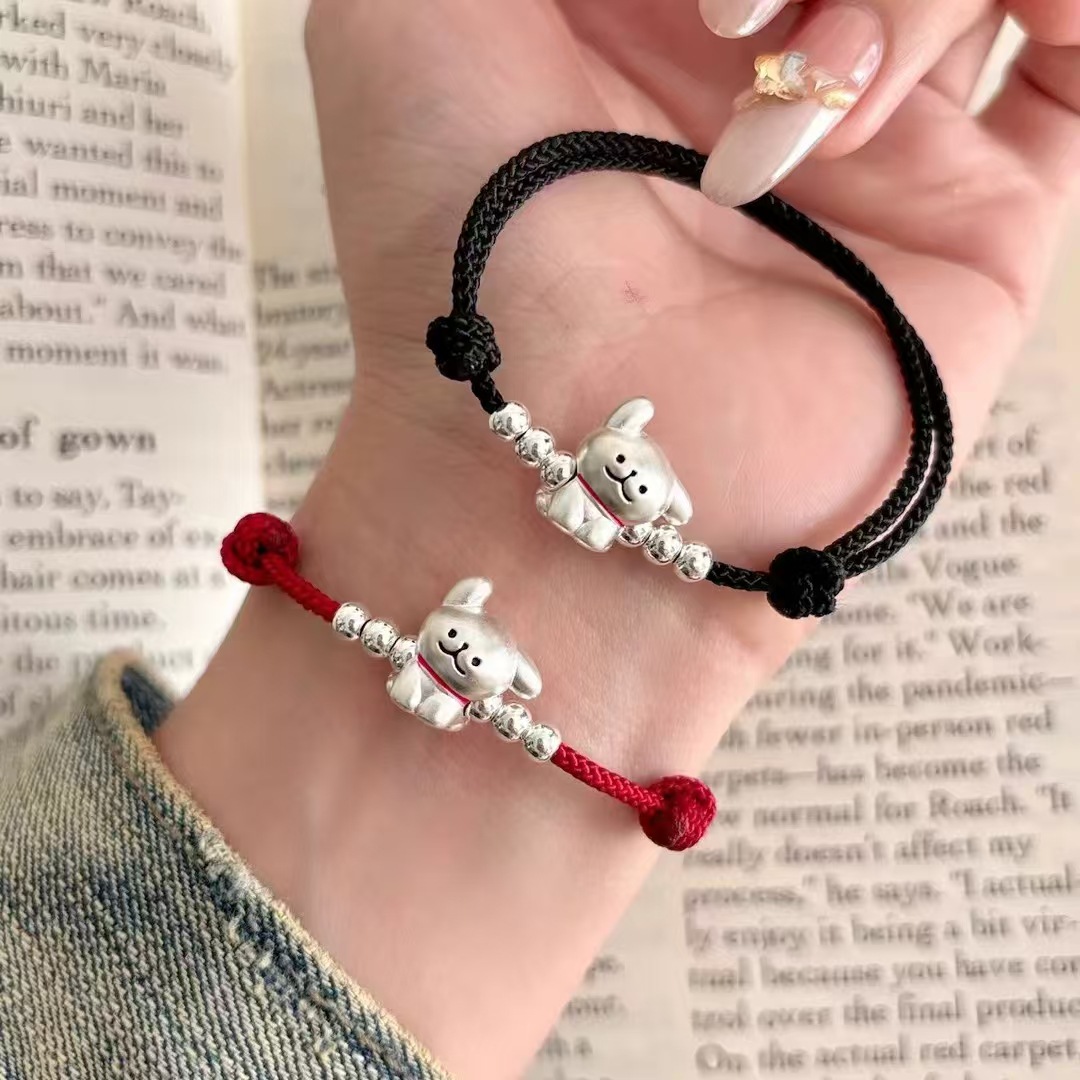 999 발 실버 라인 개 팔찌 스털링 실버 강아지 짠 손 로프 커플 틈새 간단한 문자열 올매치 실버 보석