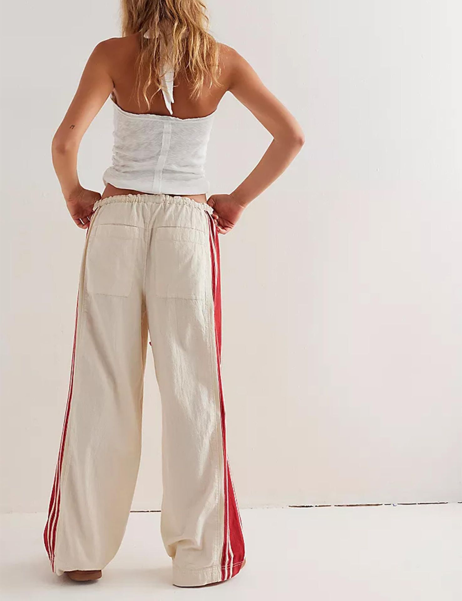 사이드 스트라이프 에어컨 캐주얼 바지 여성 봄 여름 가을 패션 홍콩 스타일 학생 느슨한 스포츠 바지 크로스 국경 유럽