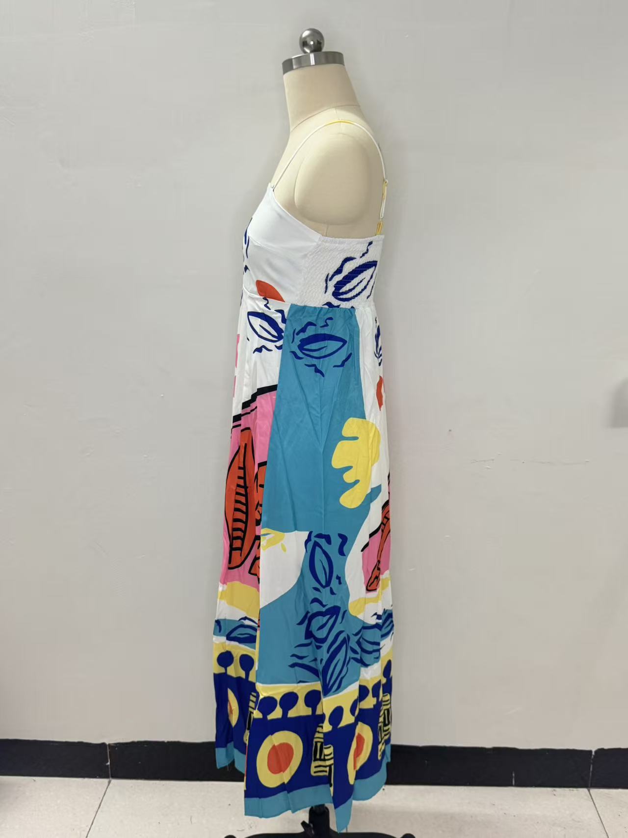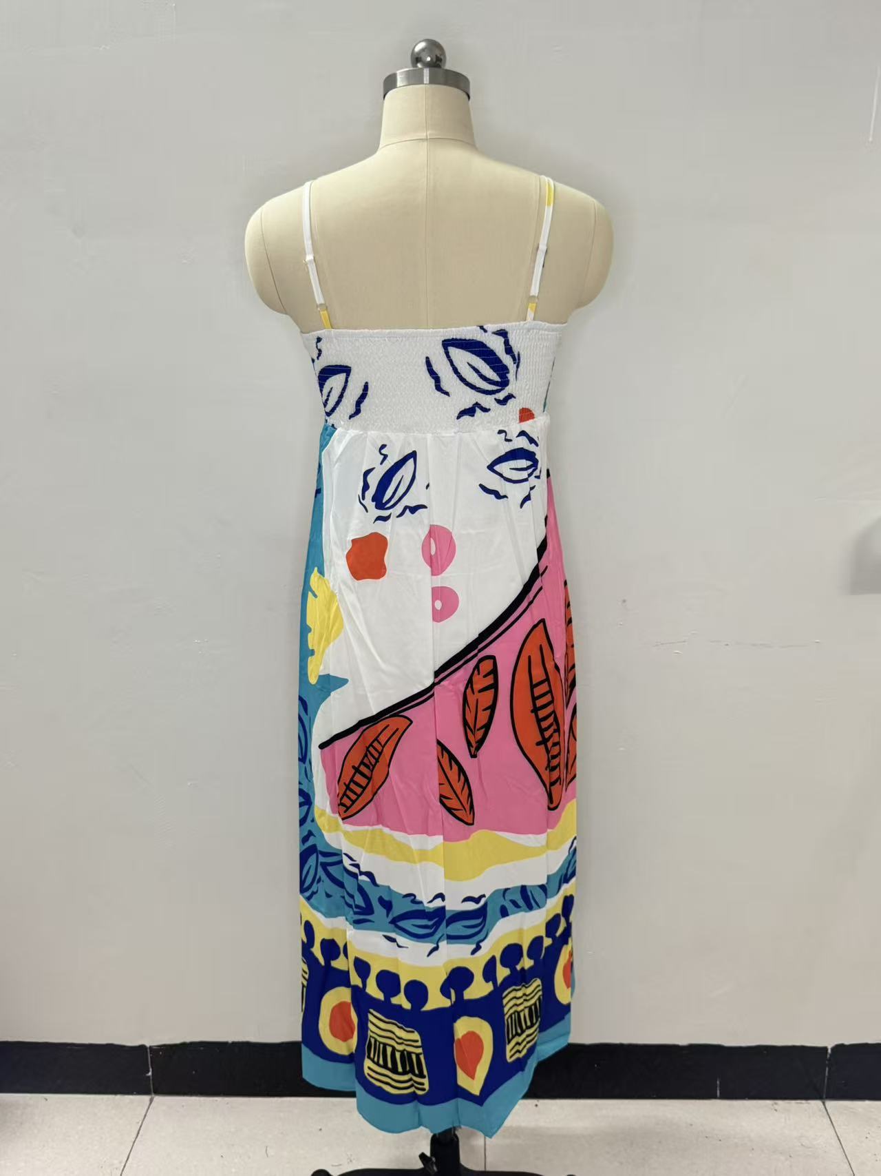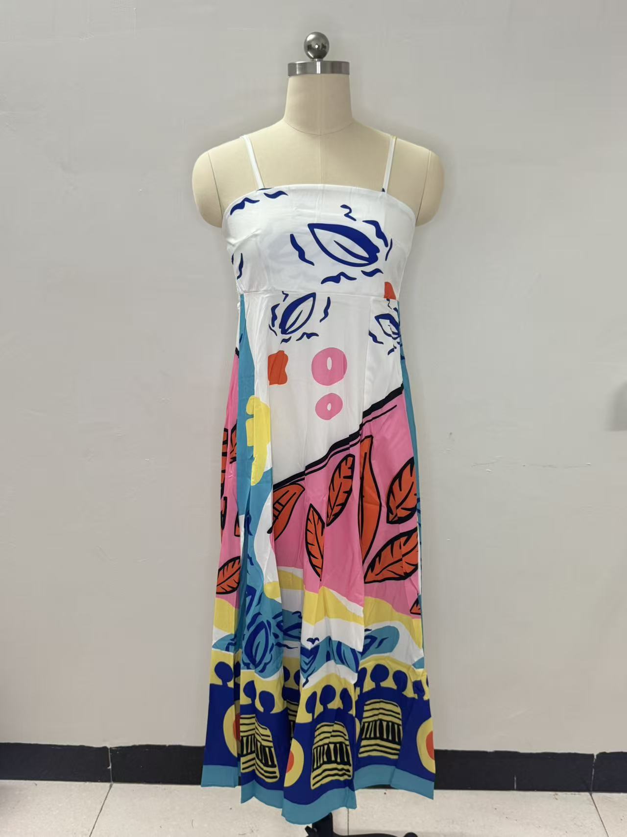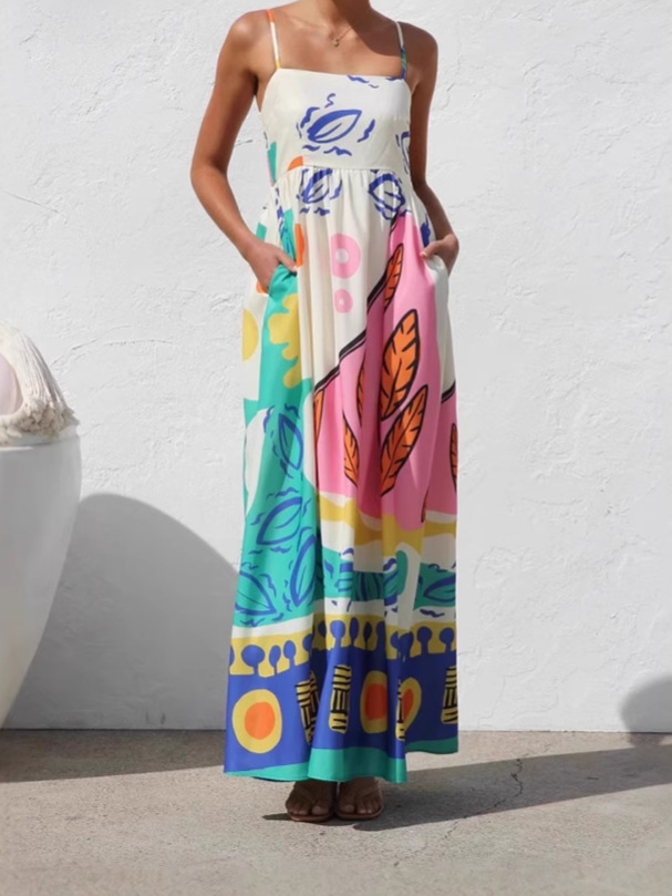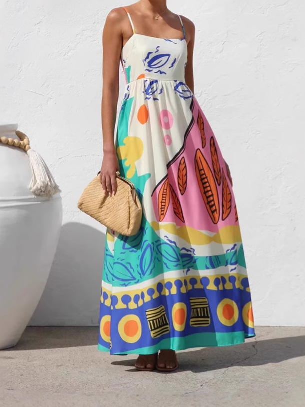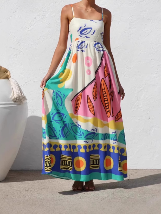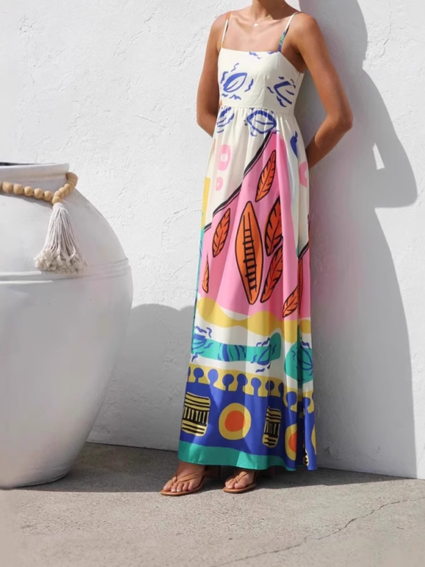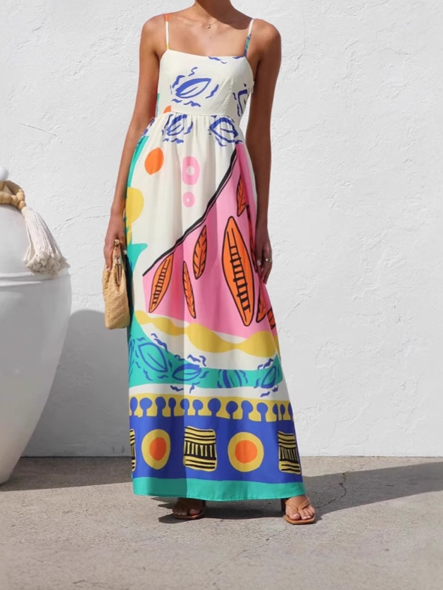 유럽 및 미국 해외직구 2025 여름 신상품 독립적인 스타일의 인스 휴양지풍 프린트 슬립 드레스 비치 드레스 가볍고