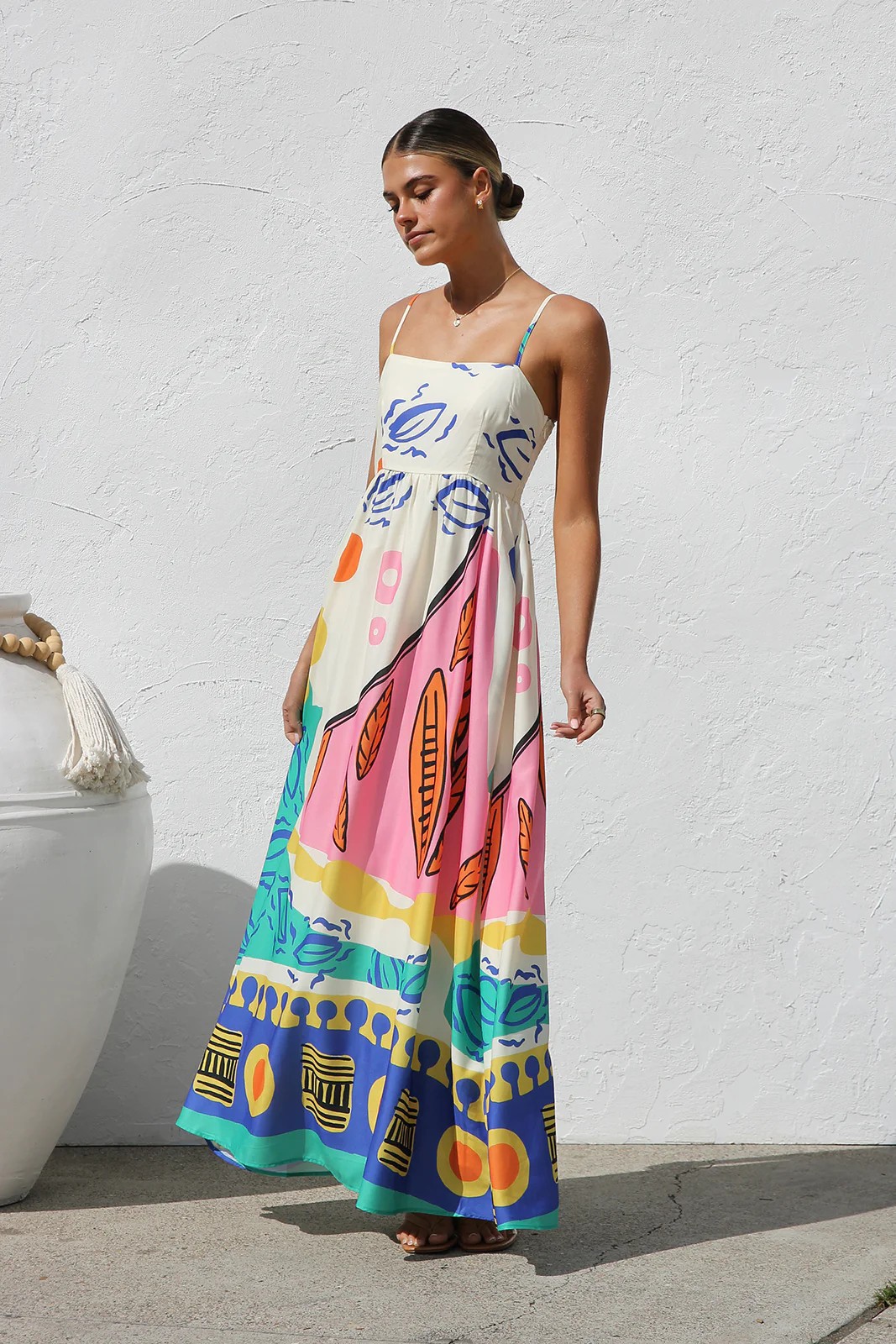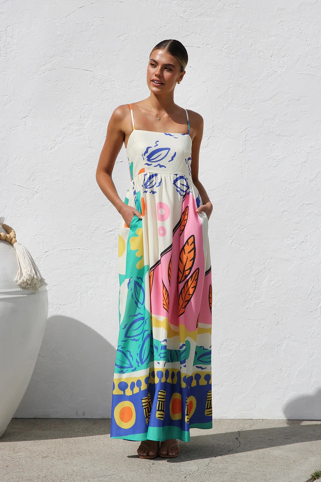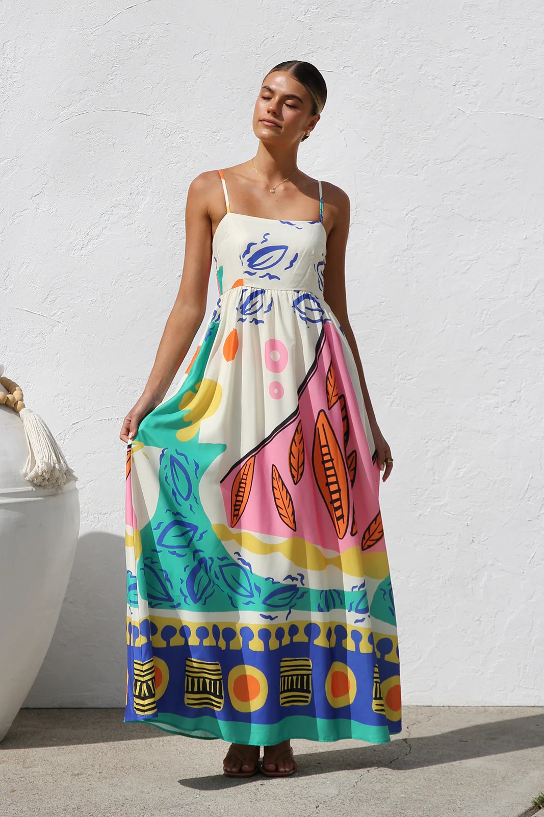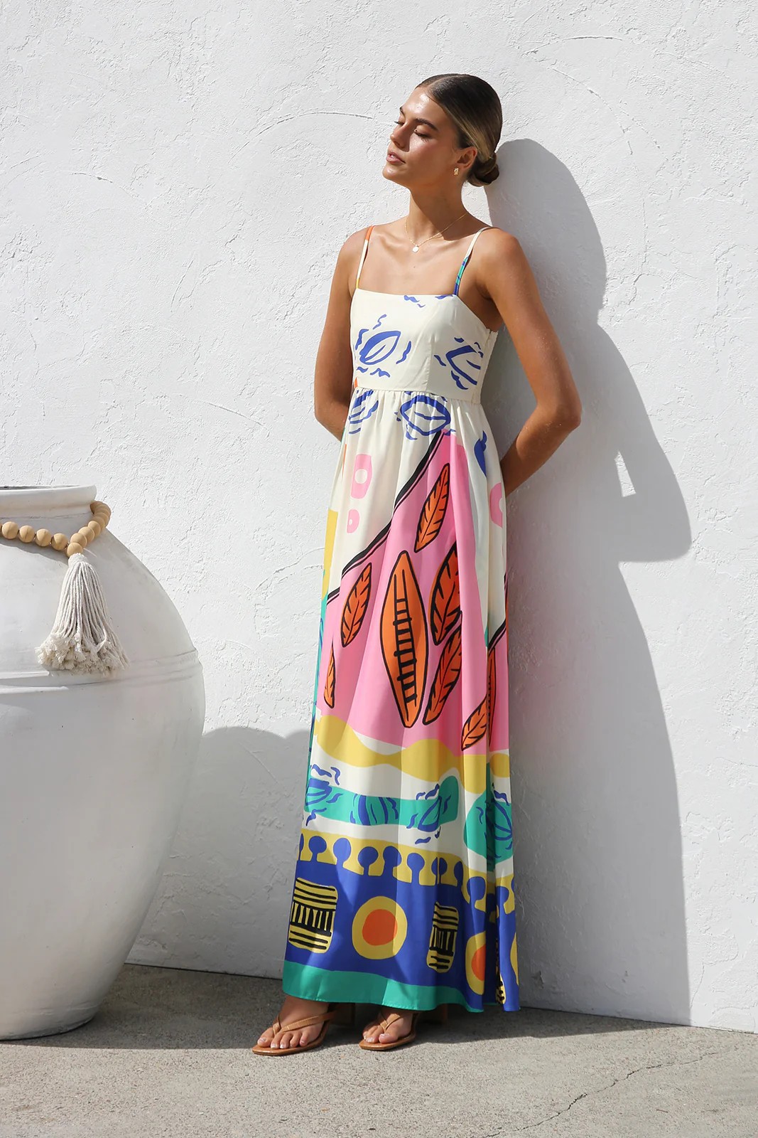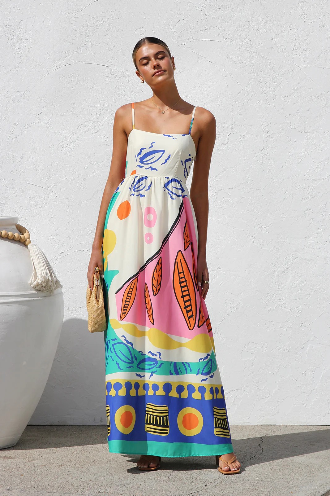 유럽 및 미국 해외직구 2025 여름 신상품 독립적인 스타일의 인스 휴양지풍 프린트 슬립 드레스 비치 드레스 가볍고