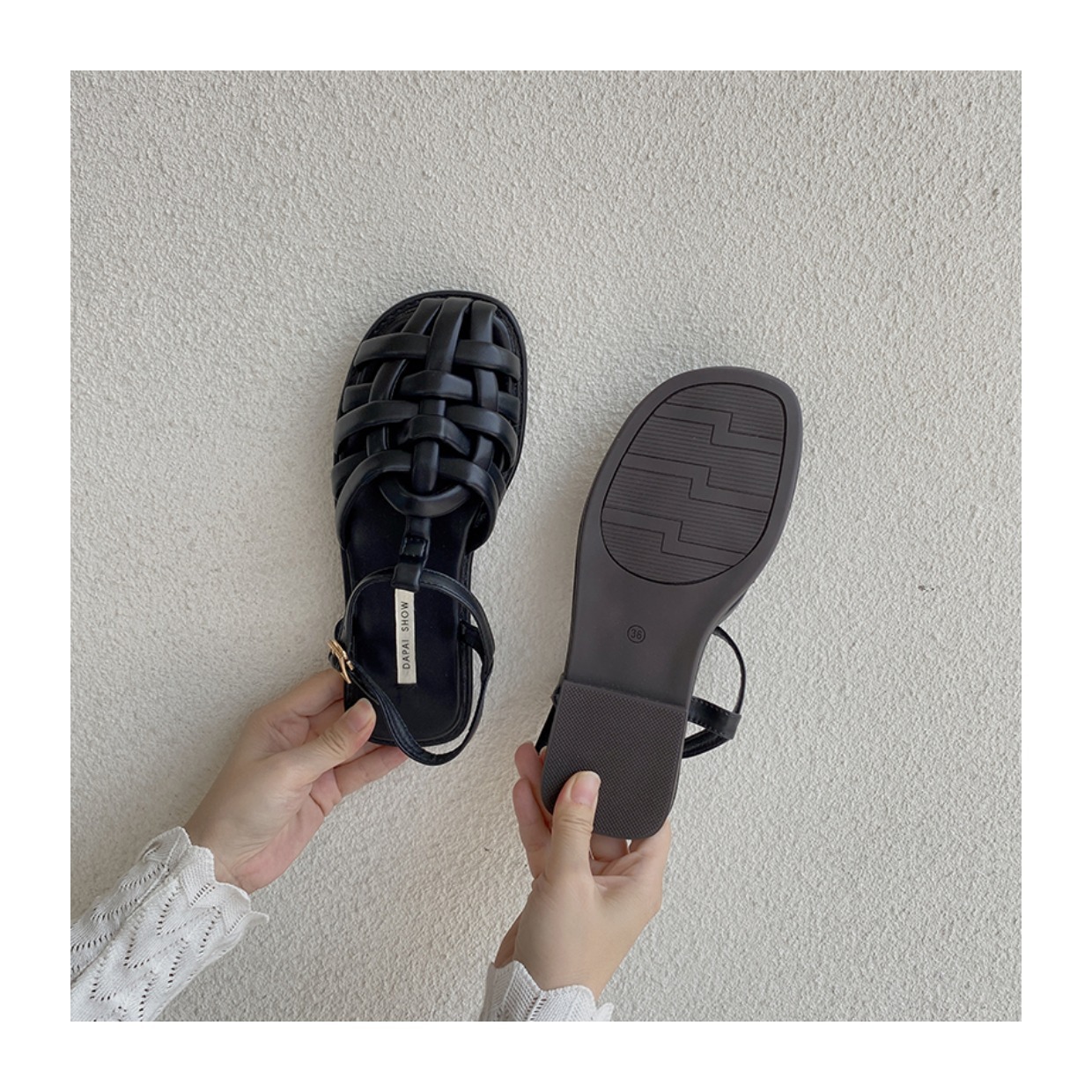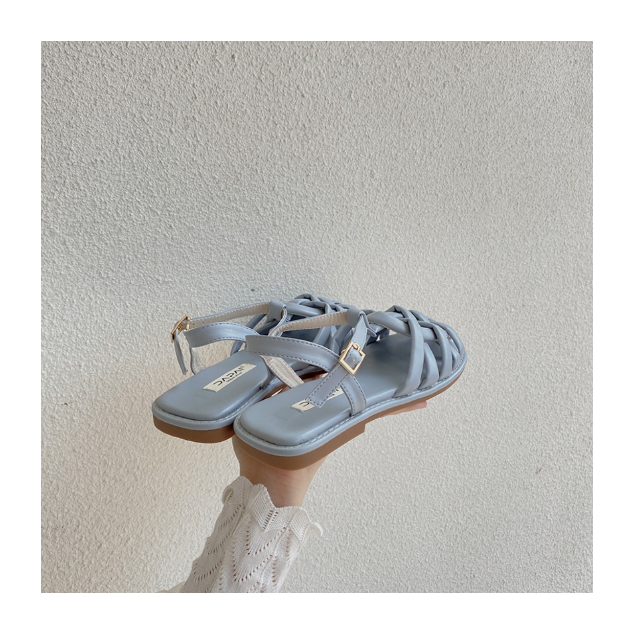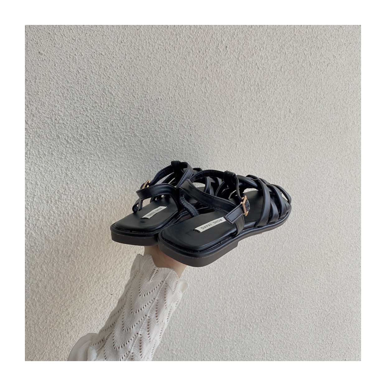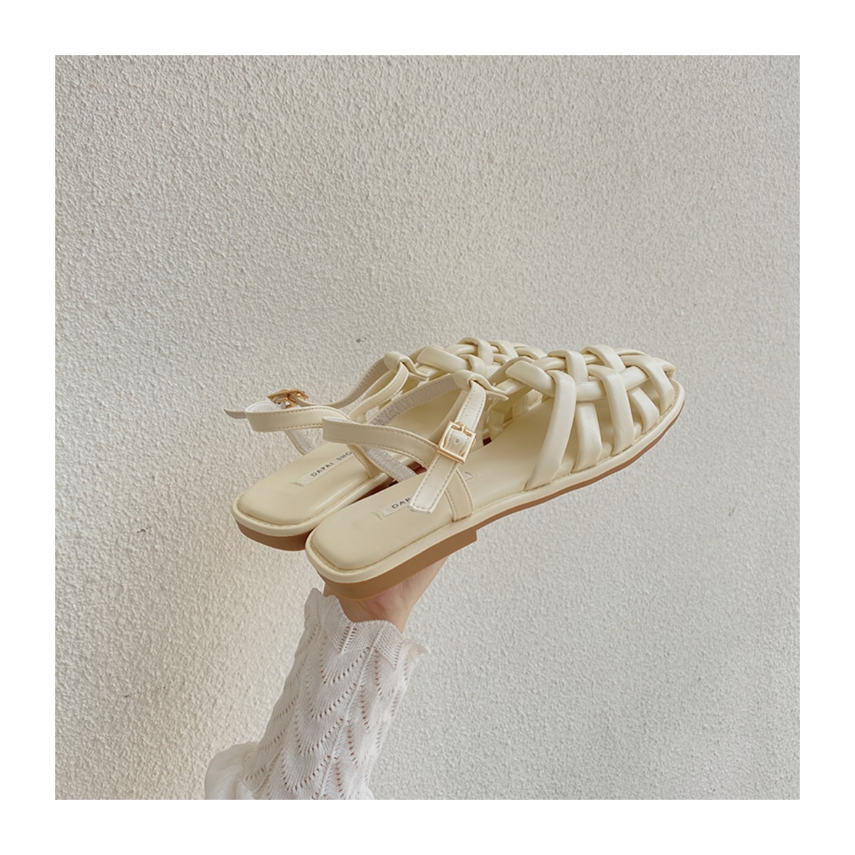 프랑스 스타일 앞굽이 비어있는 여성용 샌들, 2026년 신상 여름 브레이드 플랫 슈즈, 니치 레트로 비치 로마 샌들