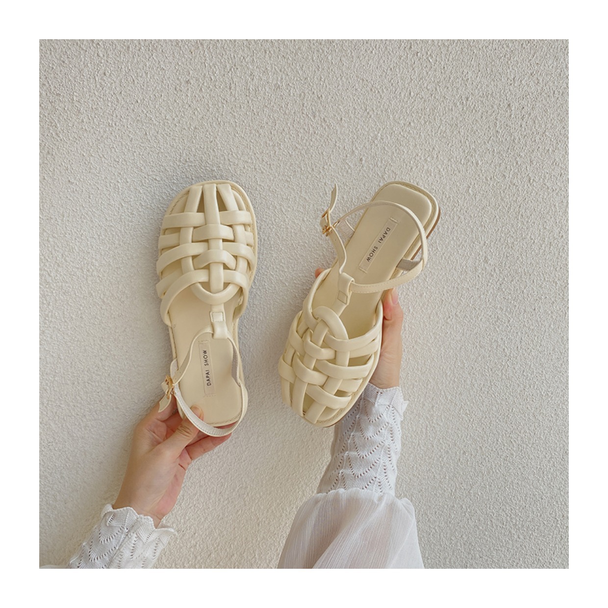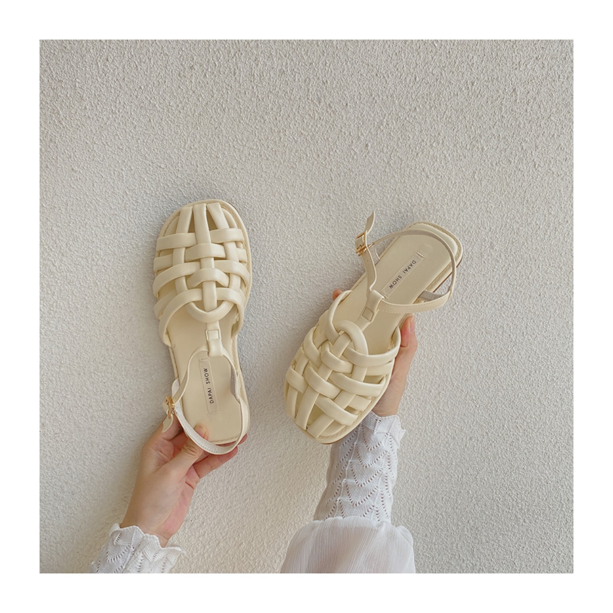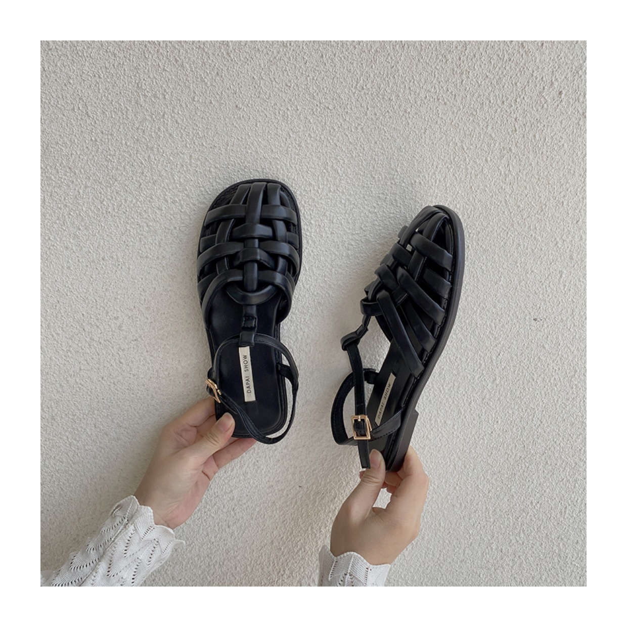 프랑스 스타일 앞굽이 비어있는 여성용 샌들, 2026년 신상 여름 브레이드 플랫 슈즈, 니치 레트로 비치 로마 샌들