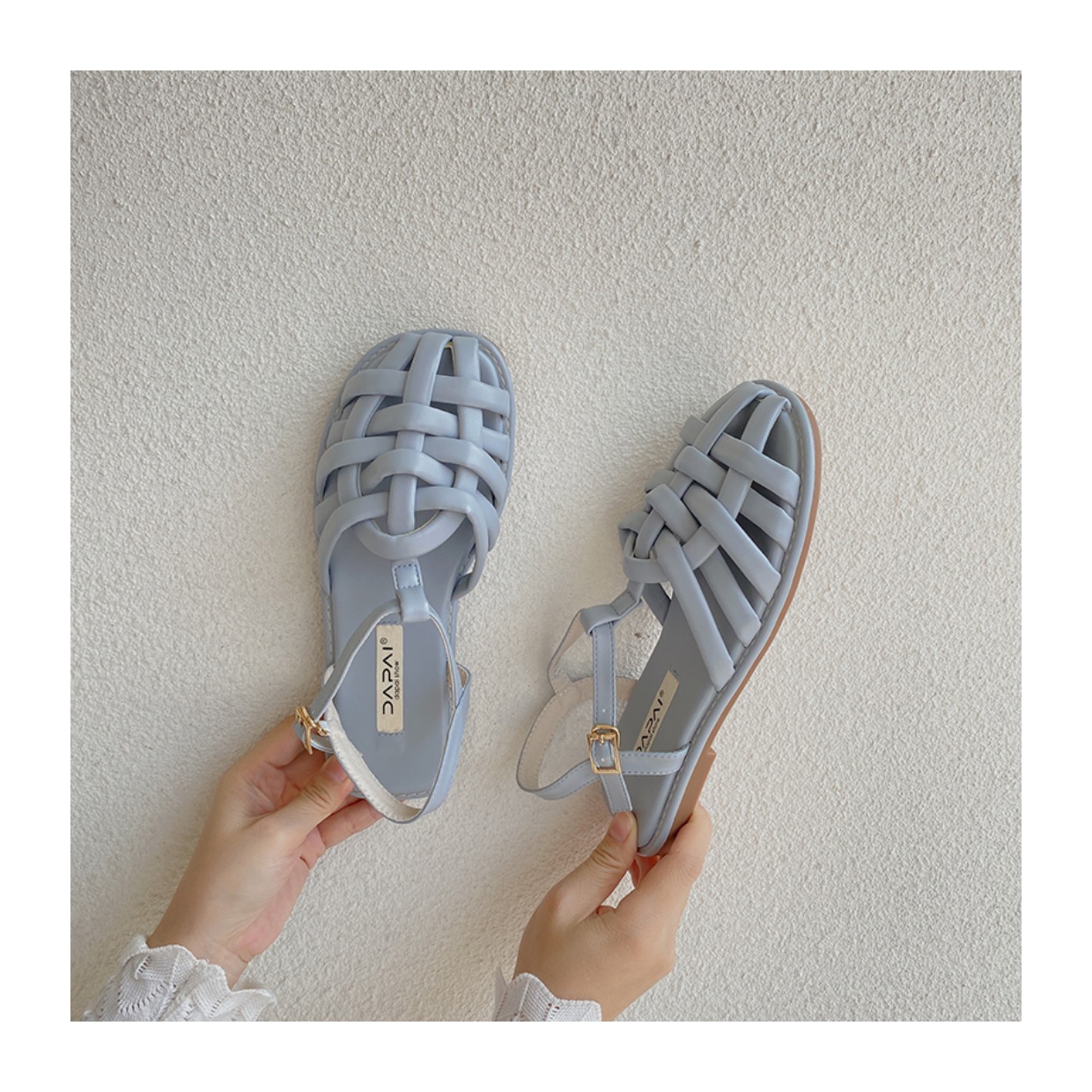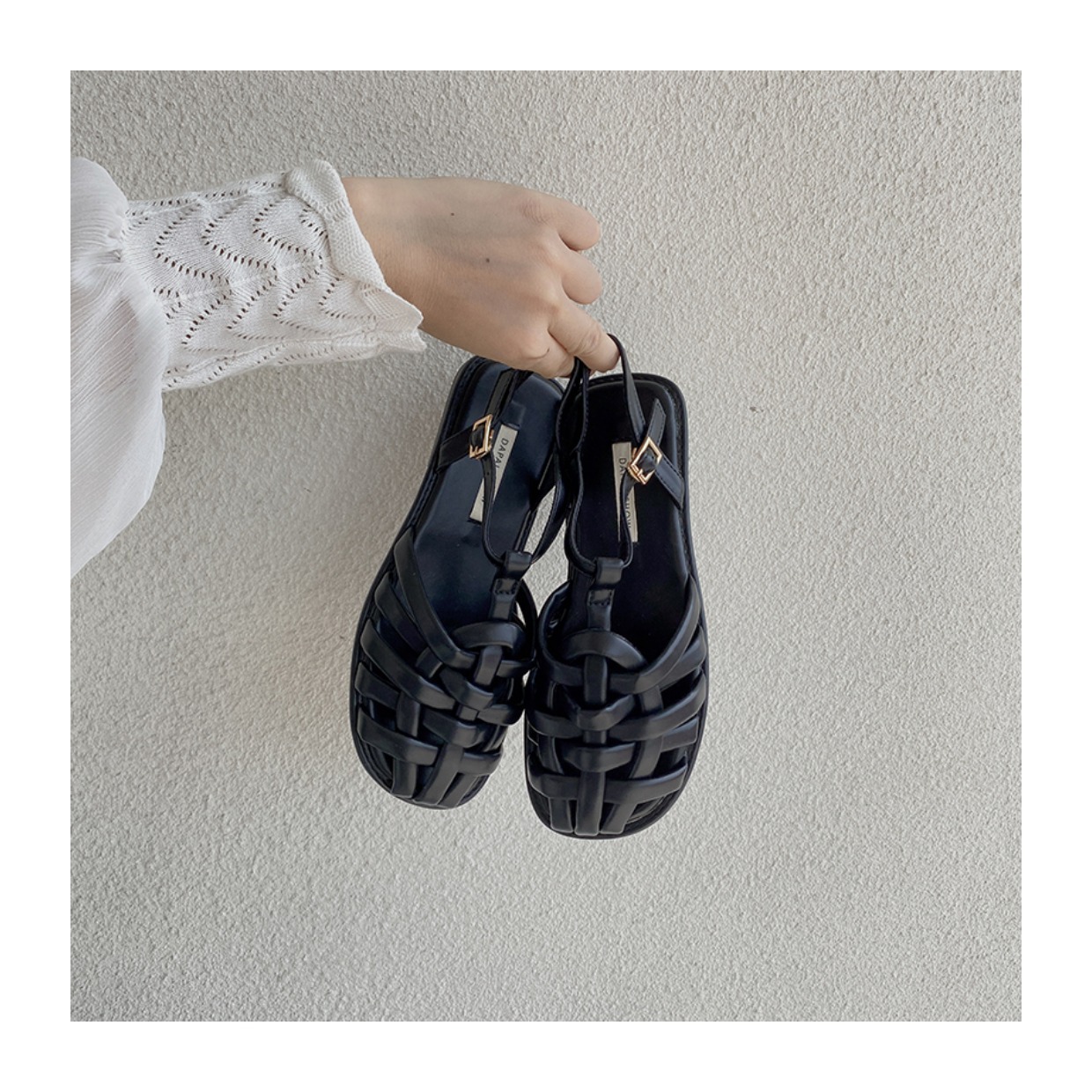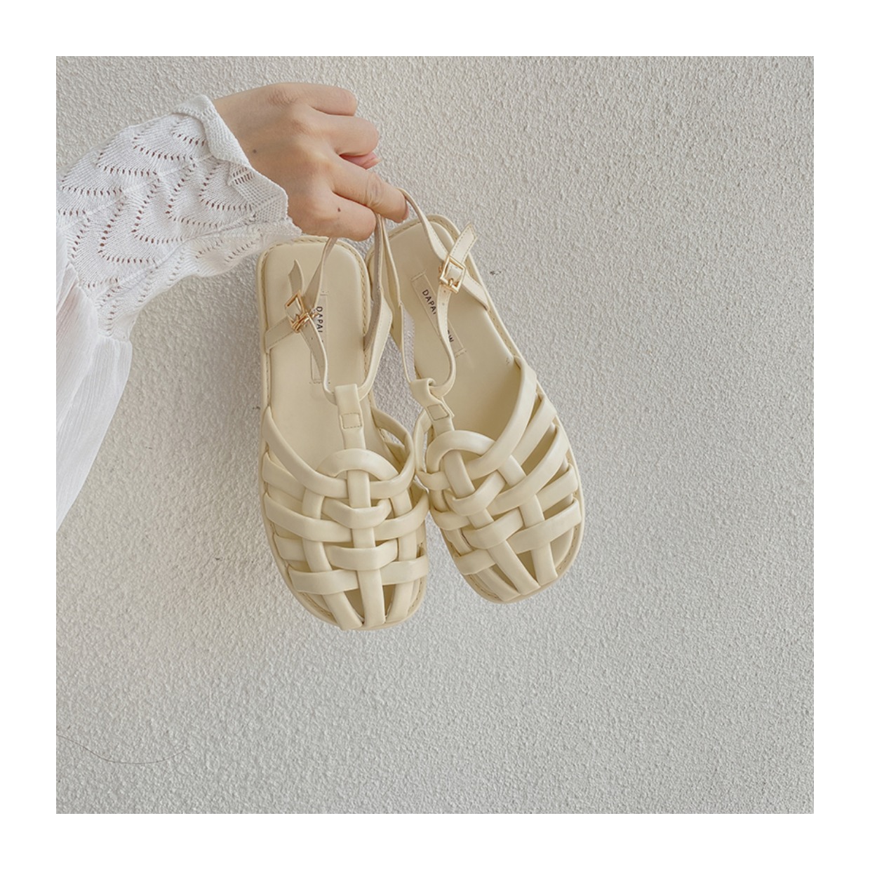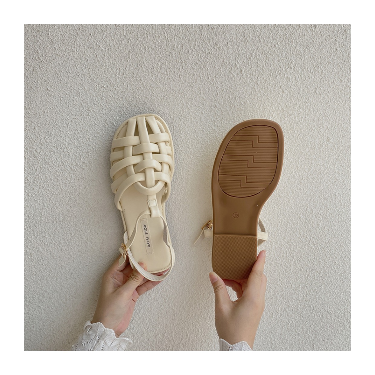 프랑스 스타일 앞굽이 비어있는 여성용 샌들, 2026년 신상 여름 브레이드 플랫 슈즈, 니치 레트로 비치 로마 샌들