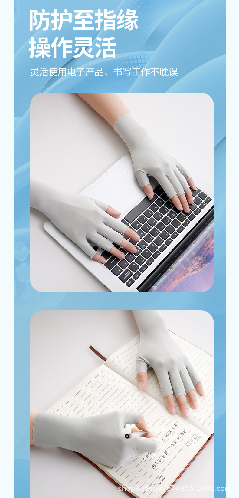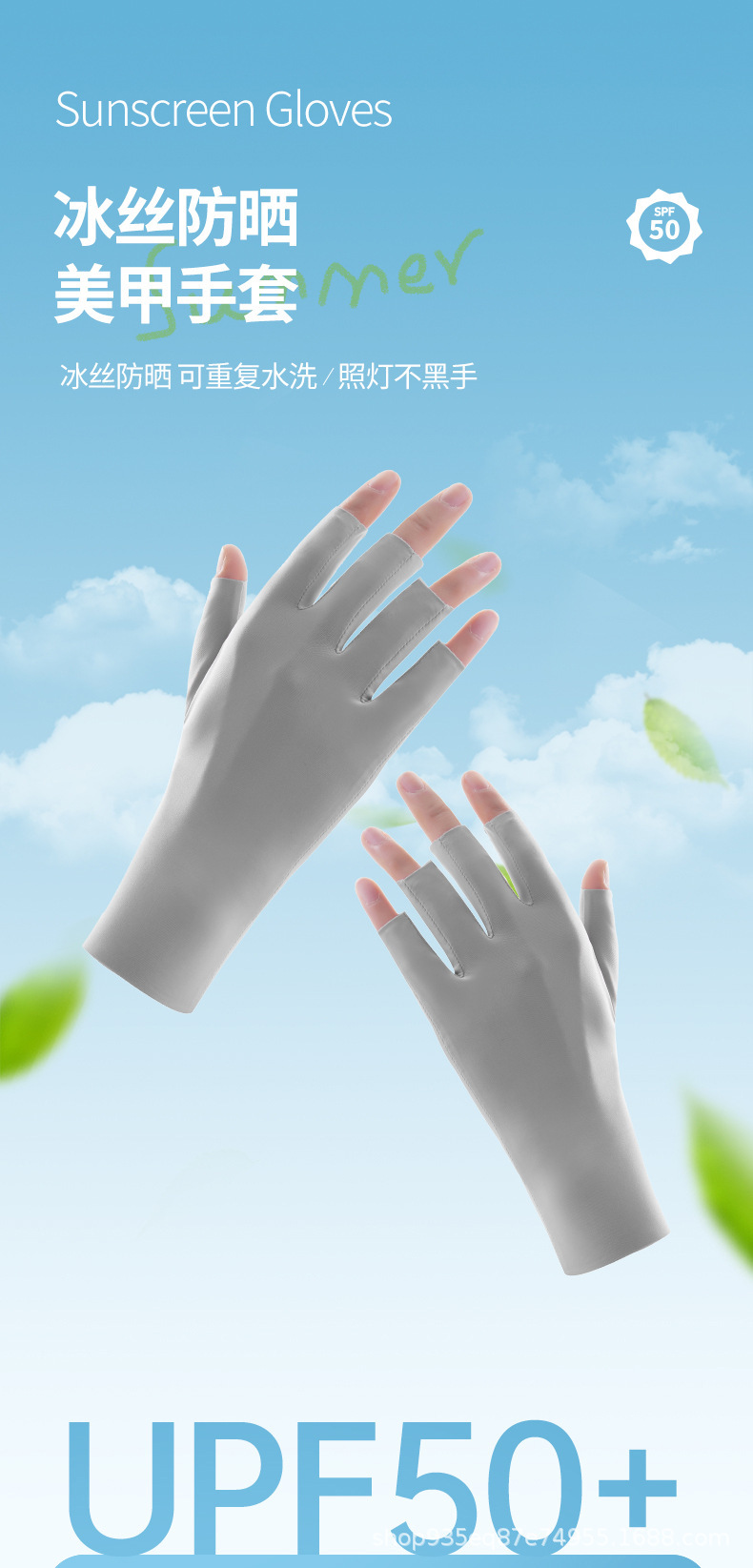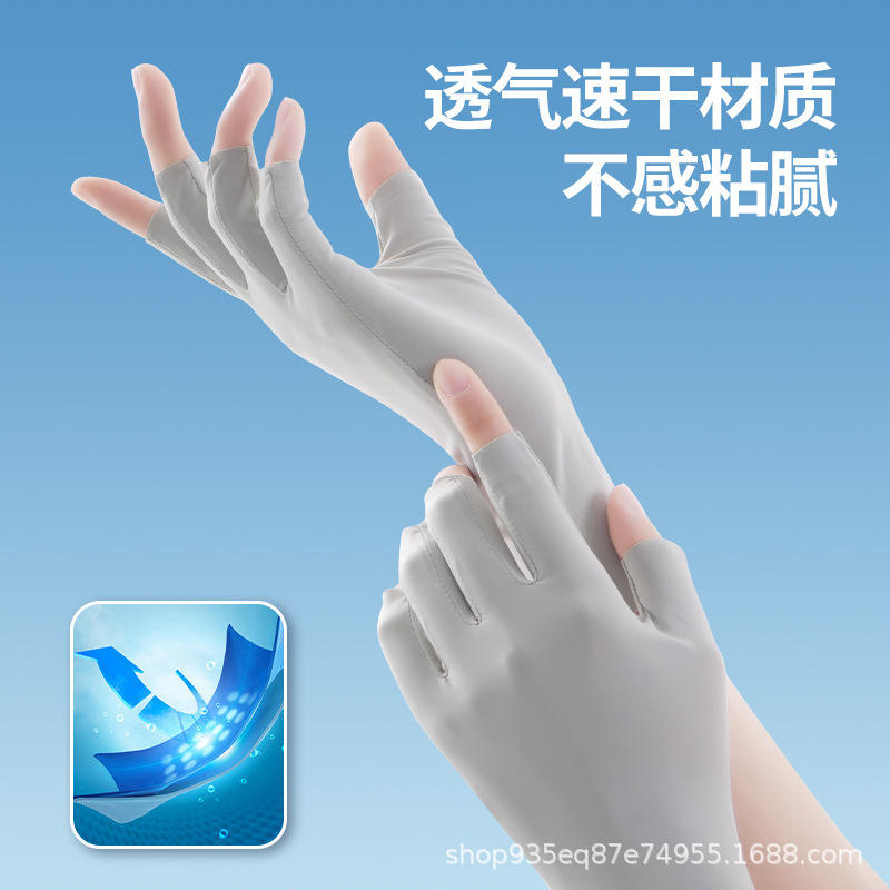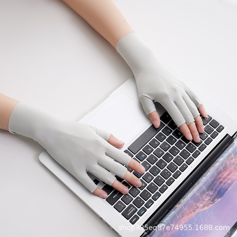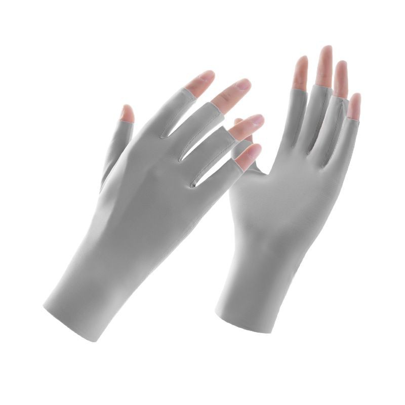 반 손가락 선 스크린 장갑 여성용 네일 아트 베이킹 방지 블랙 장갑 안티 자외선 얼음 실크 빛 통기성 이슬 다섯 손가락 보호