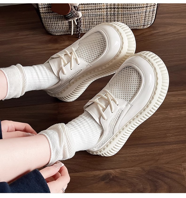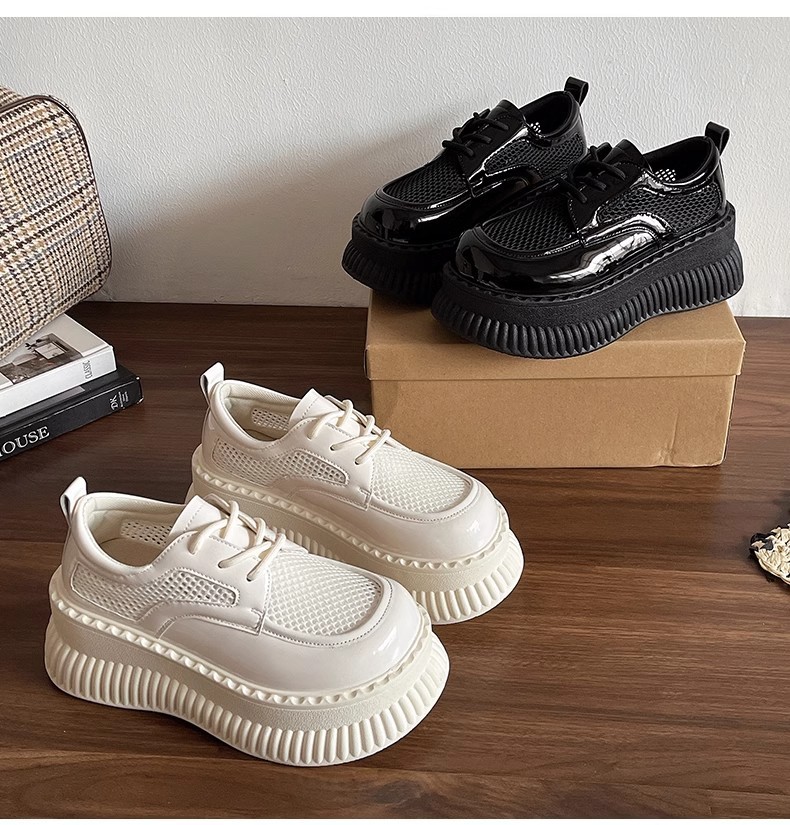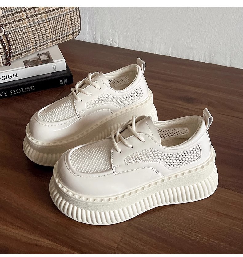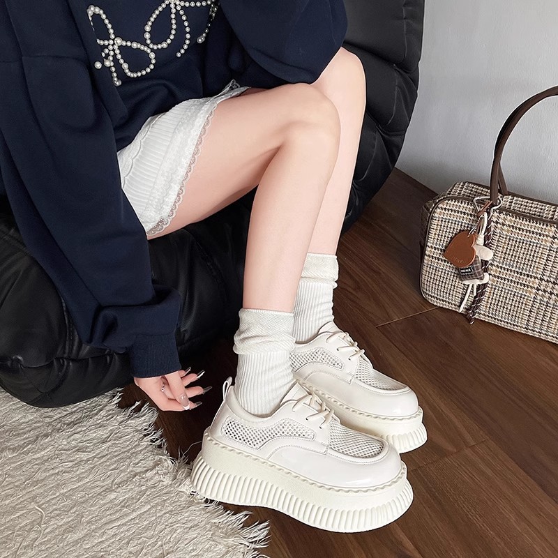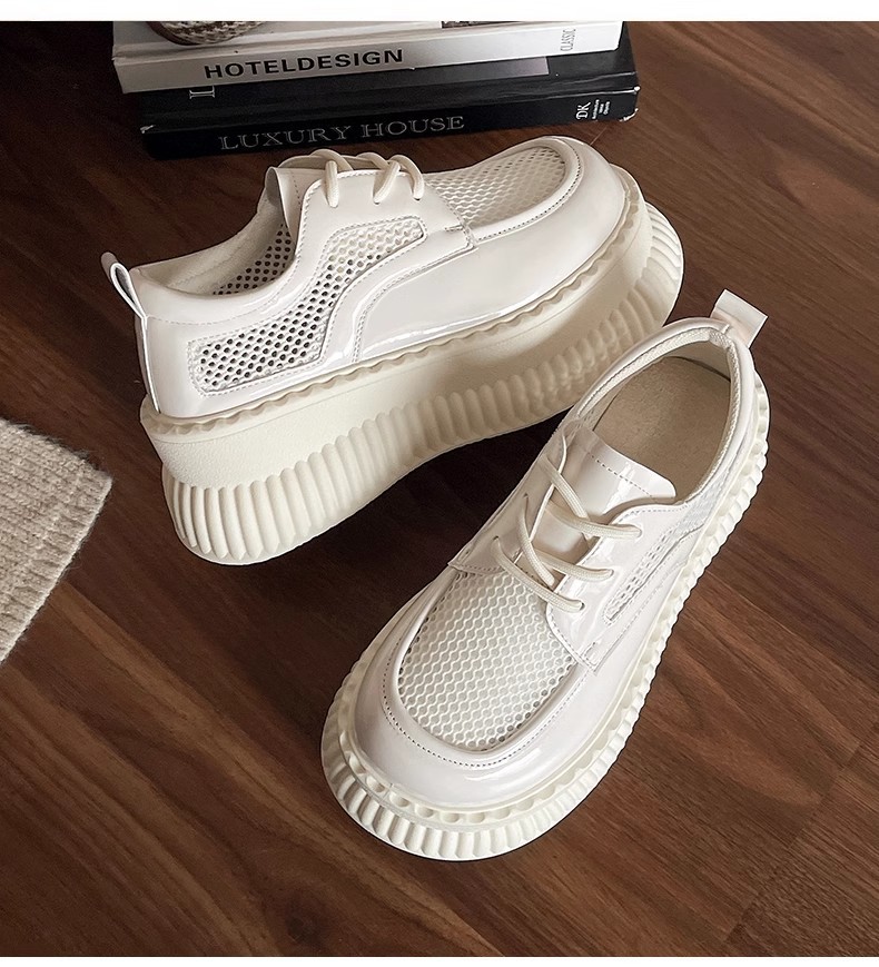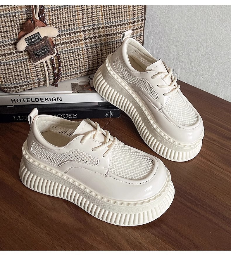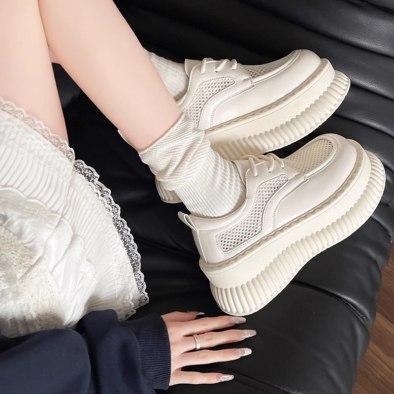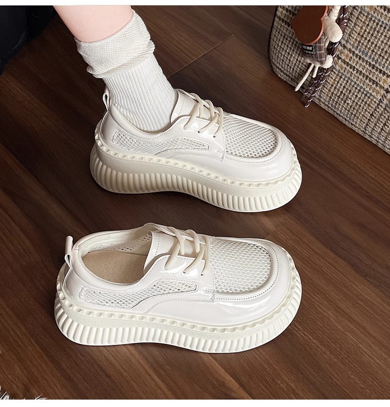 두꺼운 밑창 작은 흰색 신발 여성의 2025 봄 새로운 메쉬 통기성 패션 올 매치 작은 캐주얼 로퍼
