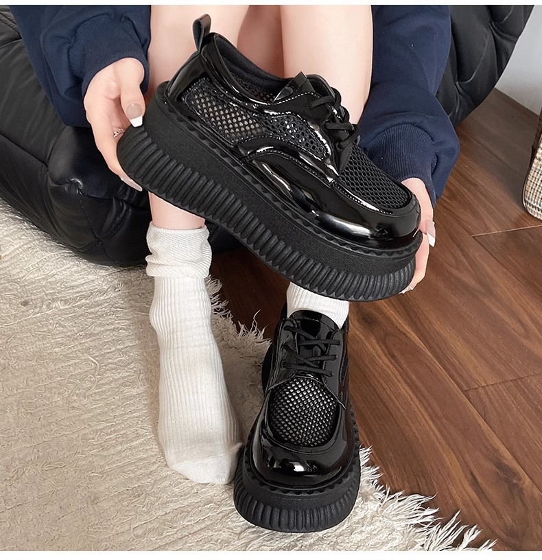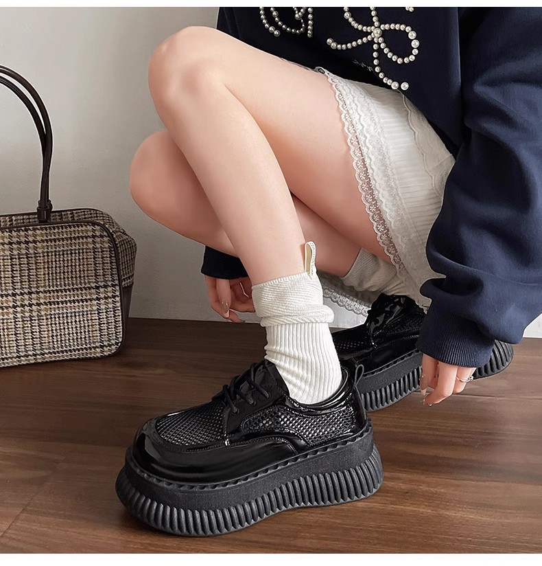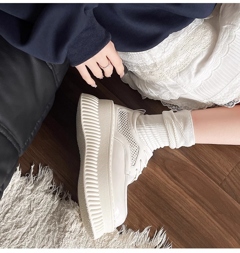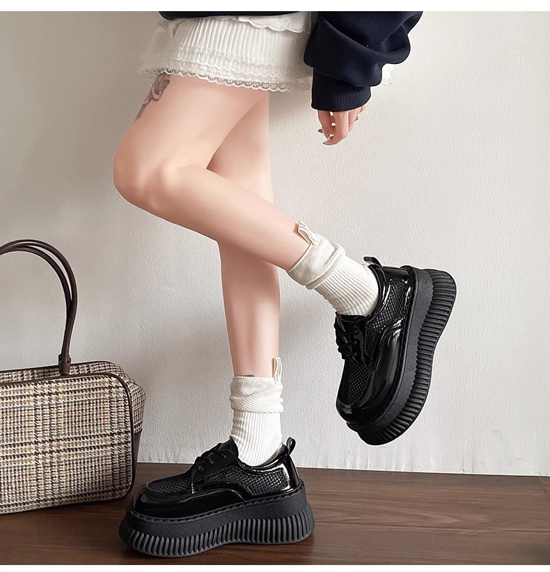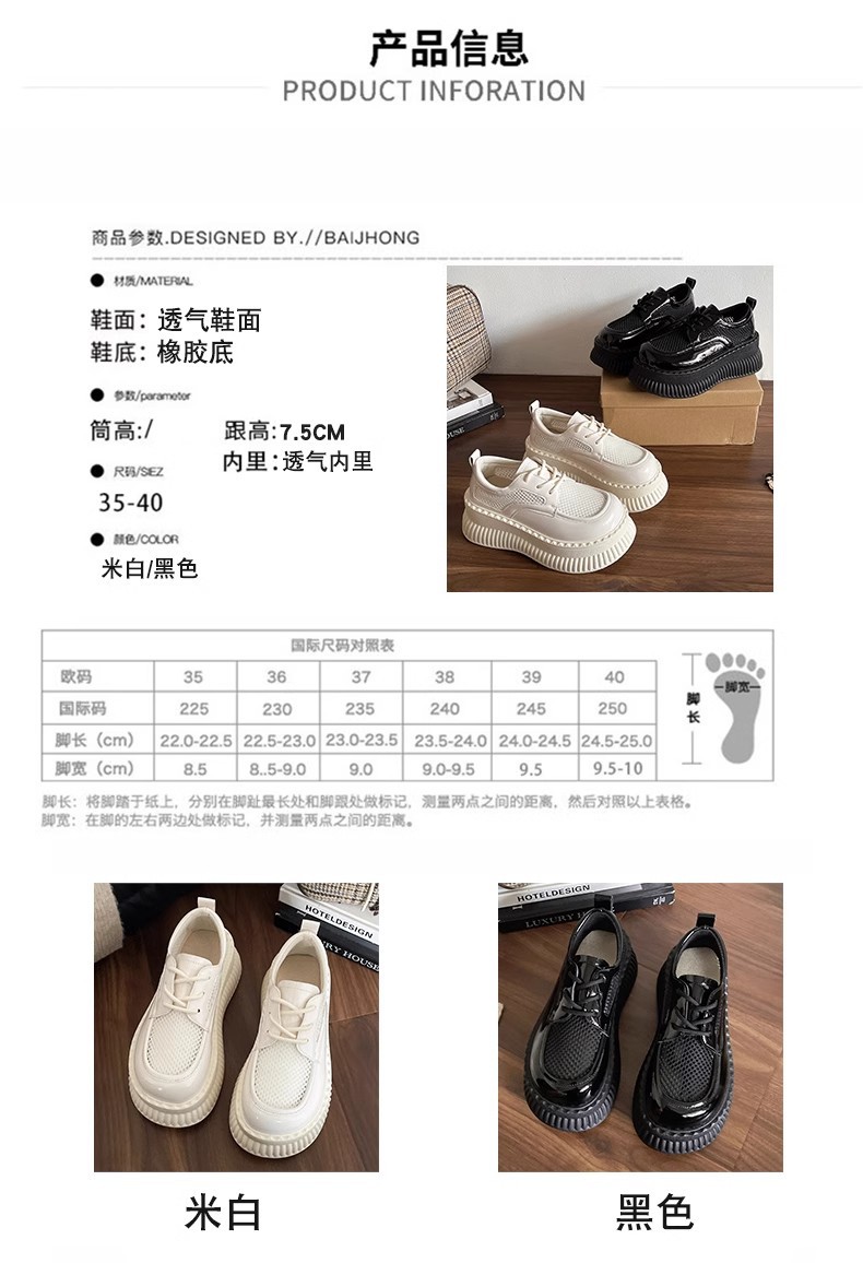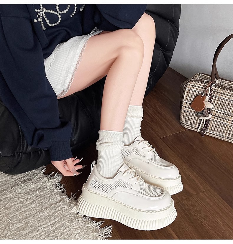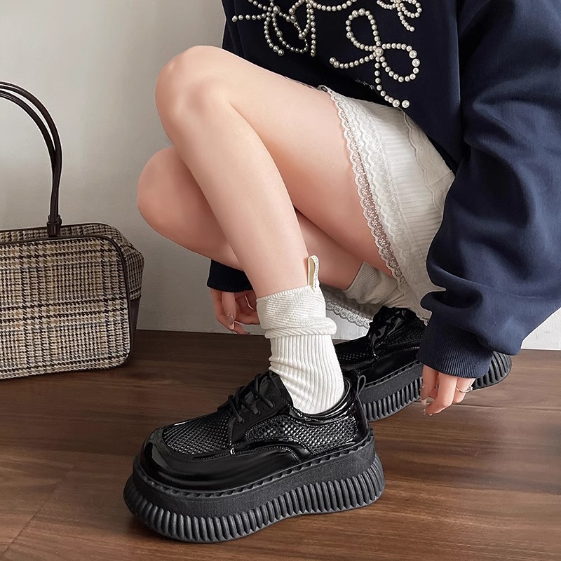 두꺼운 밑창 작은 흰색 신발 여성의 2025 봄 새로운 메쉬 통기성 패션 올 매치 작은 캐주얼 로퍼