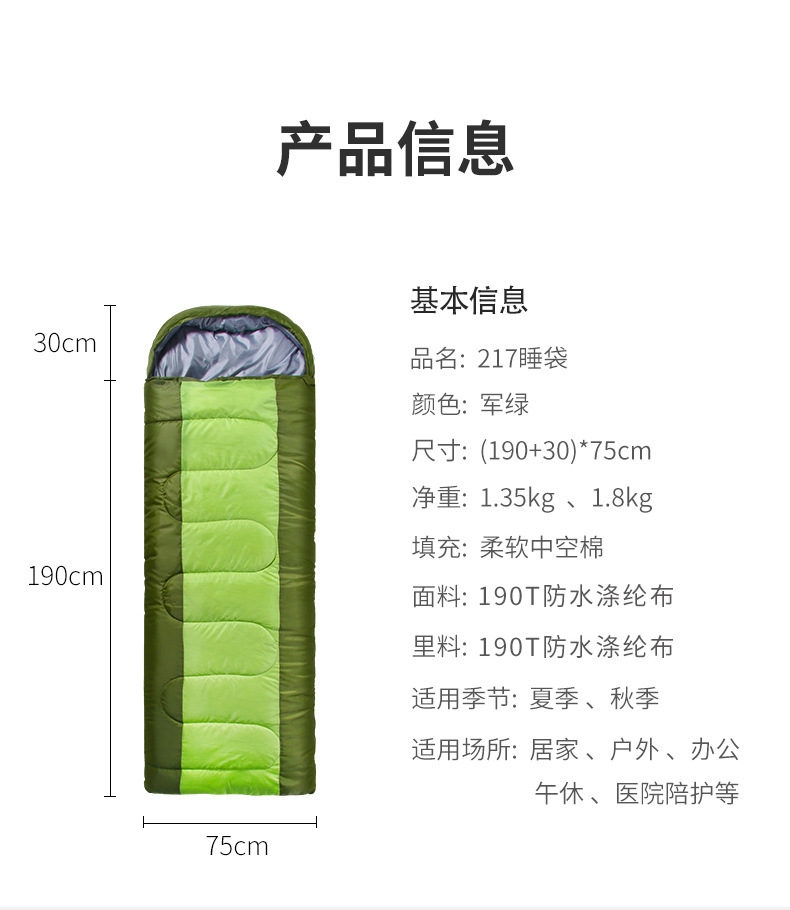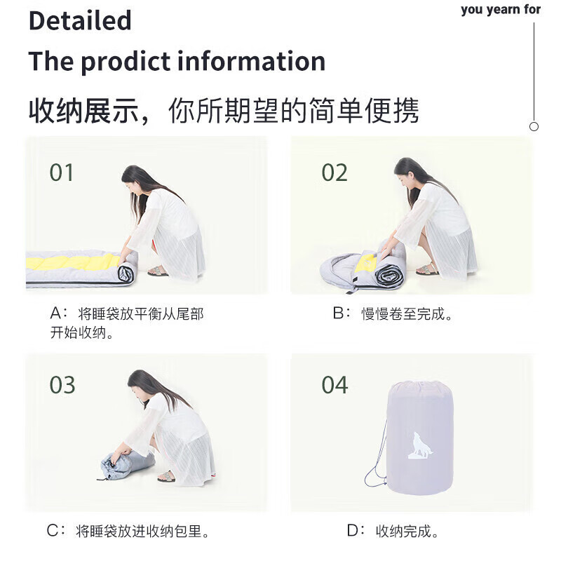 북극늑대 성인용 침낭, 겨울철 두꺼운 보온 침낭, 야외 캠핑 여행용, 방한 및 방오 기능, 사무실 점심시간용 침낭