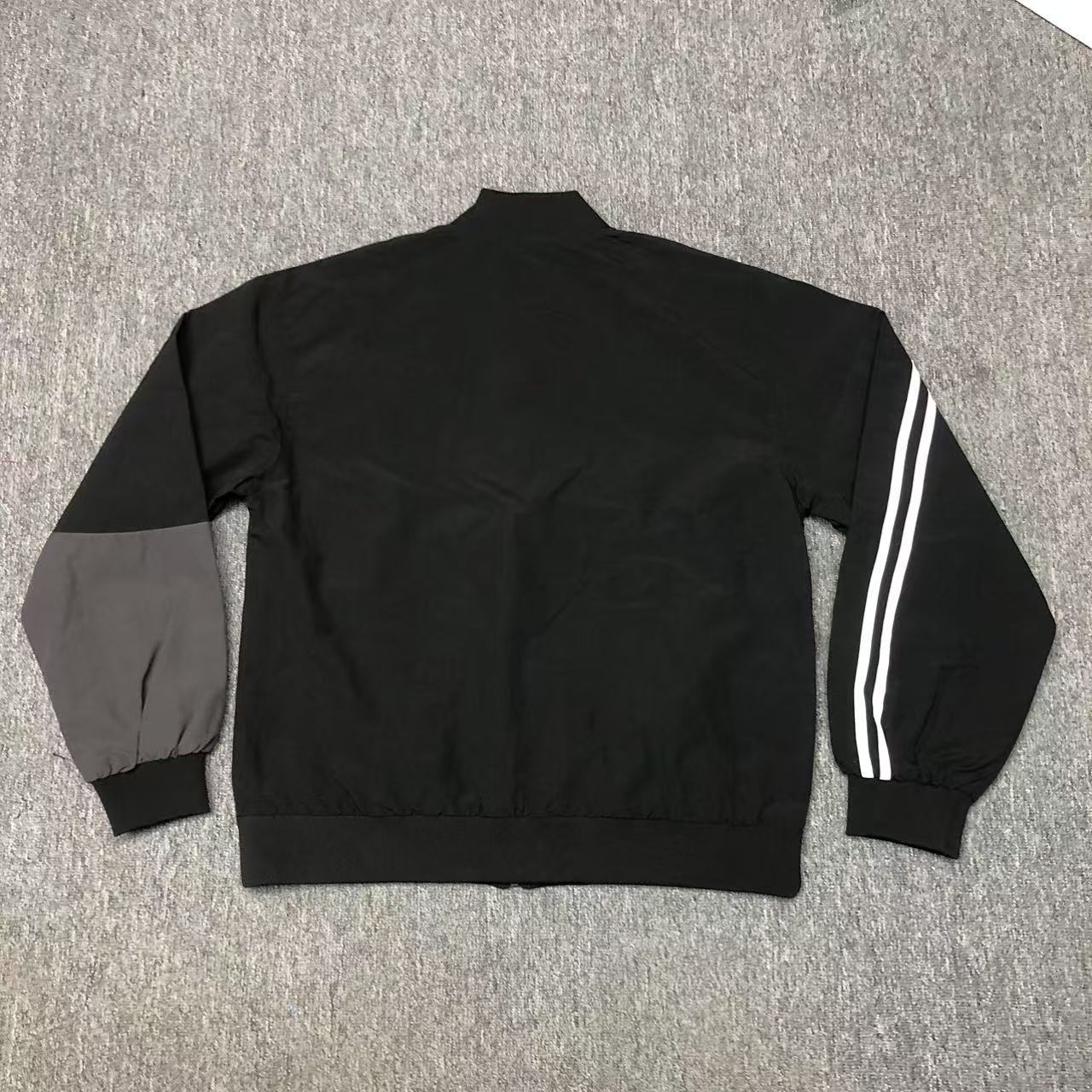 대외 무역 맞춤형 유럽 및 미국 남성 봄, 가을 느슨한 윈드 브레이커 대비 색상 슬리브 반사 스트립 전면 및 후면 인쇄 맞춤형 로고