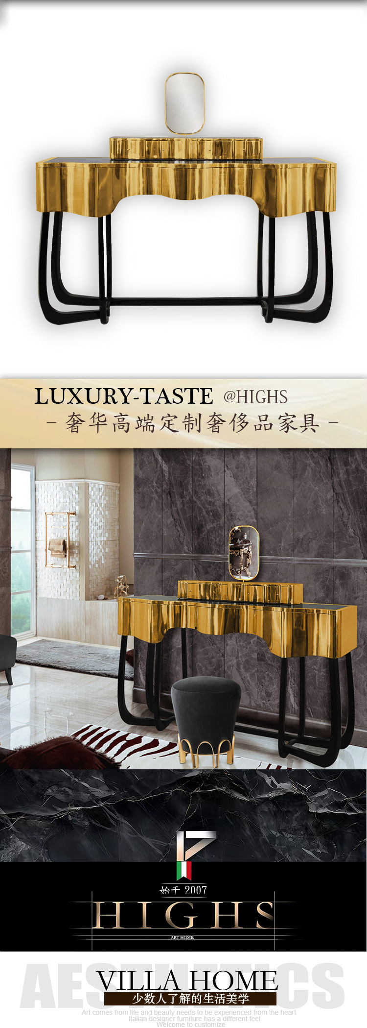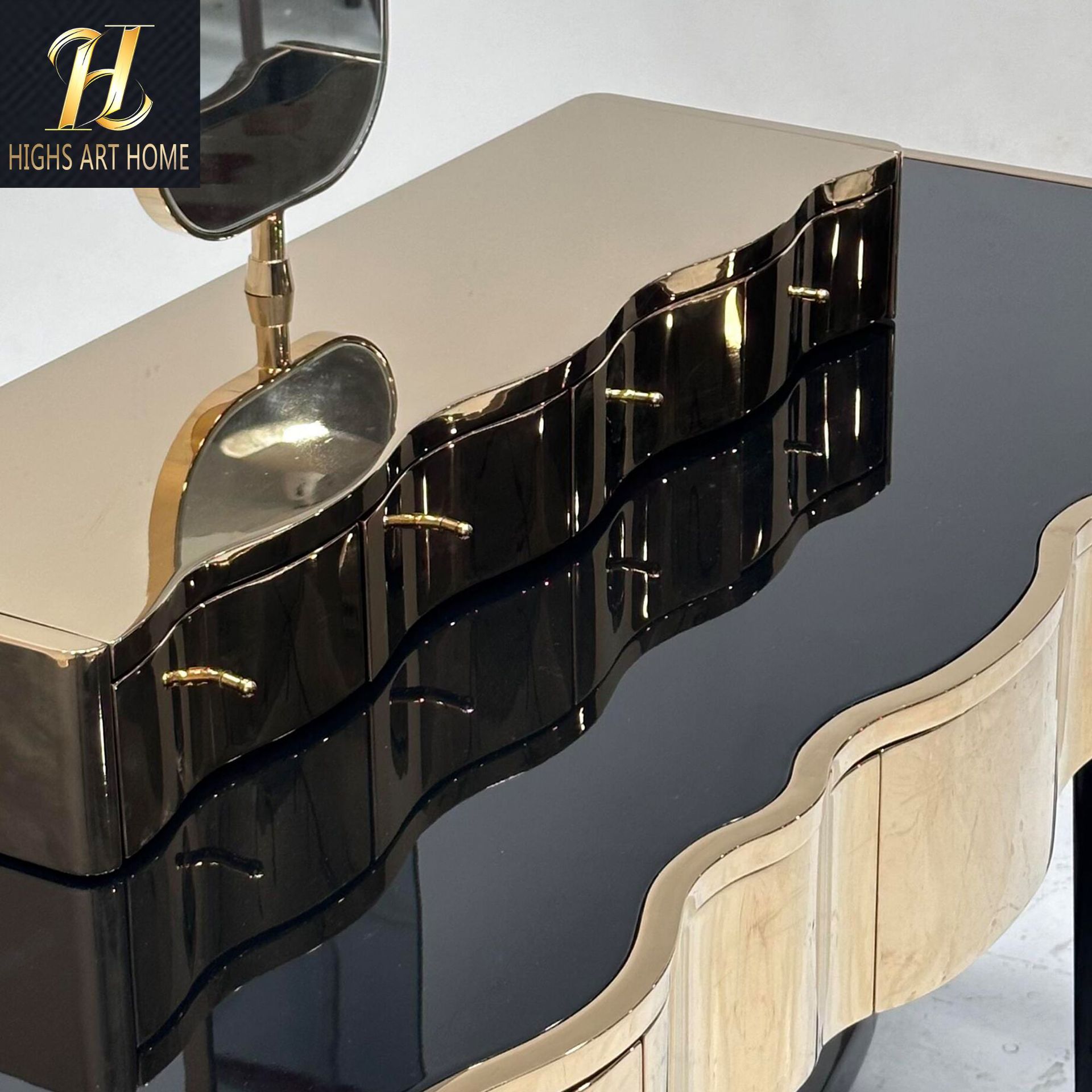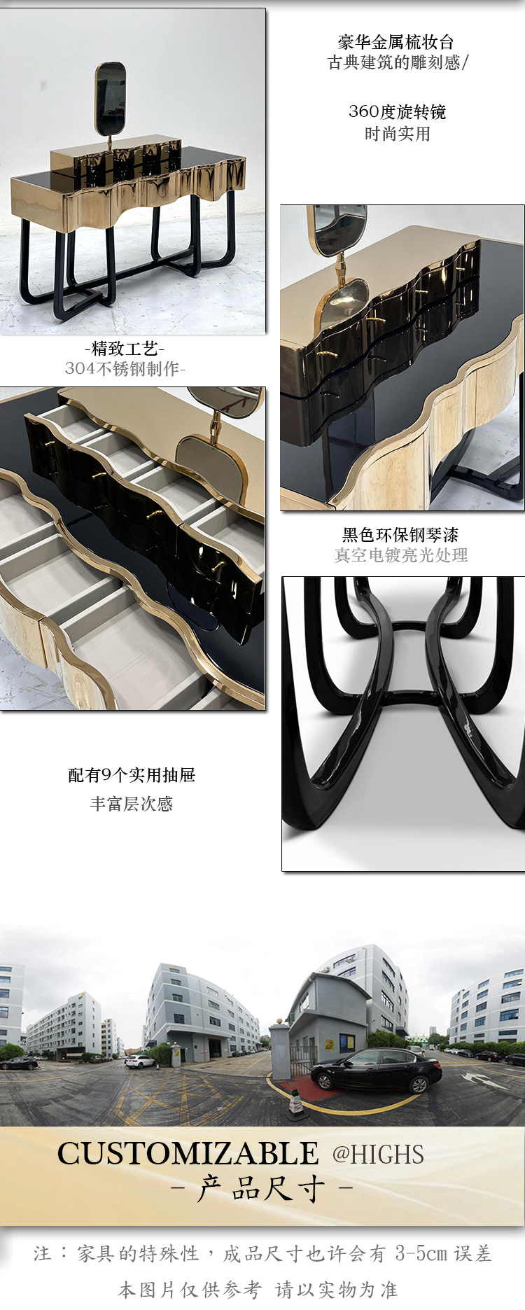 HIGHS 포르투갈 높은 럭셔리 다층 보관 침실 금속 드레싱 테이블 통합 높은 느낌 동관 가오 딩 가구