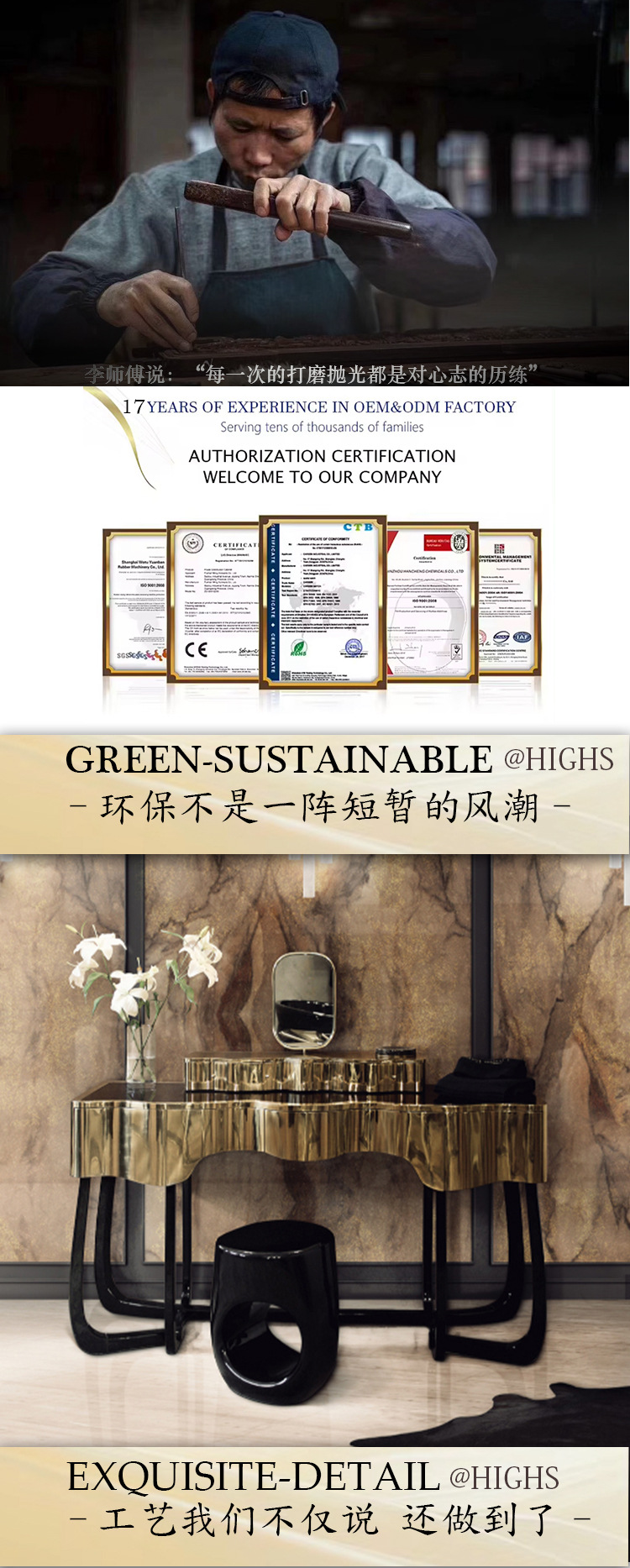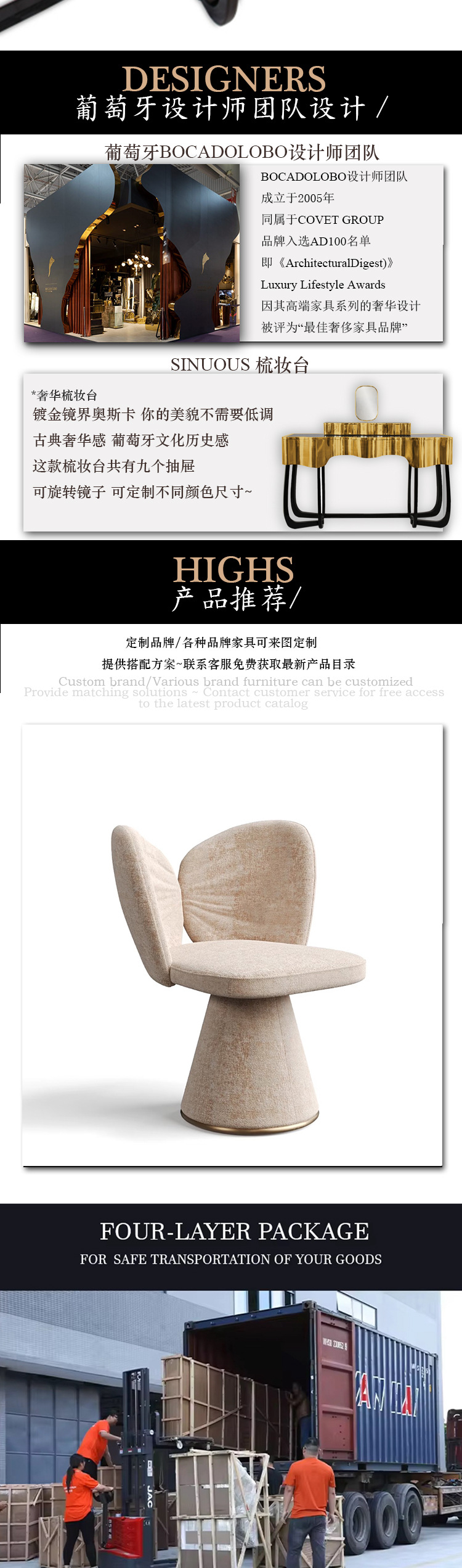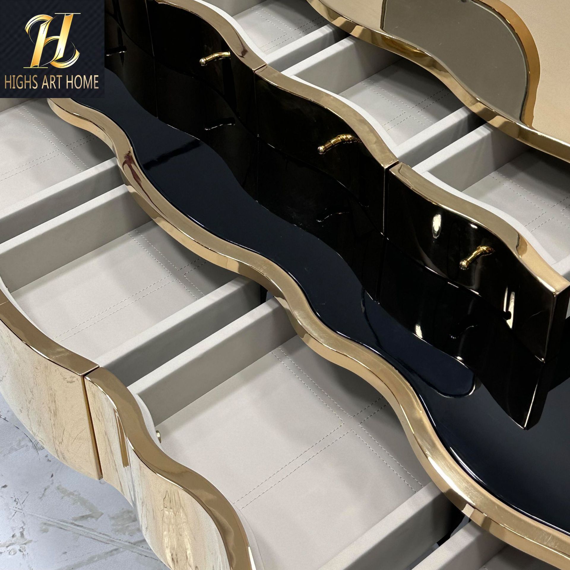 HIGHS 포르투갈 높은 럭셔리 다층 보관 침실 금속 드레싱 테이블 통합 높은 느낌 동관 가오 딩 가구