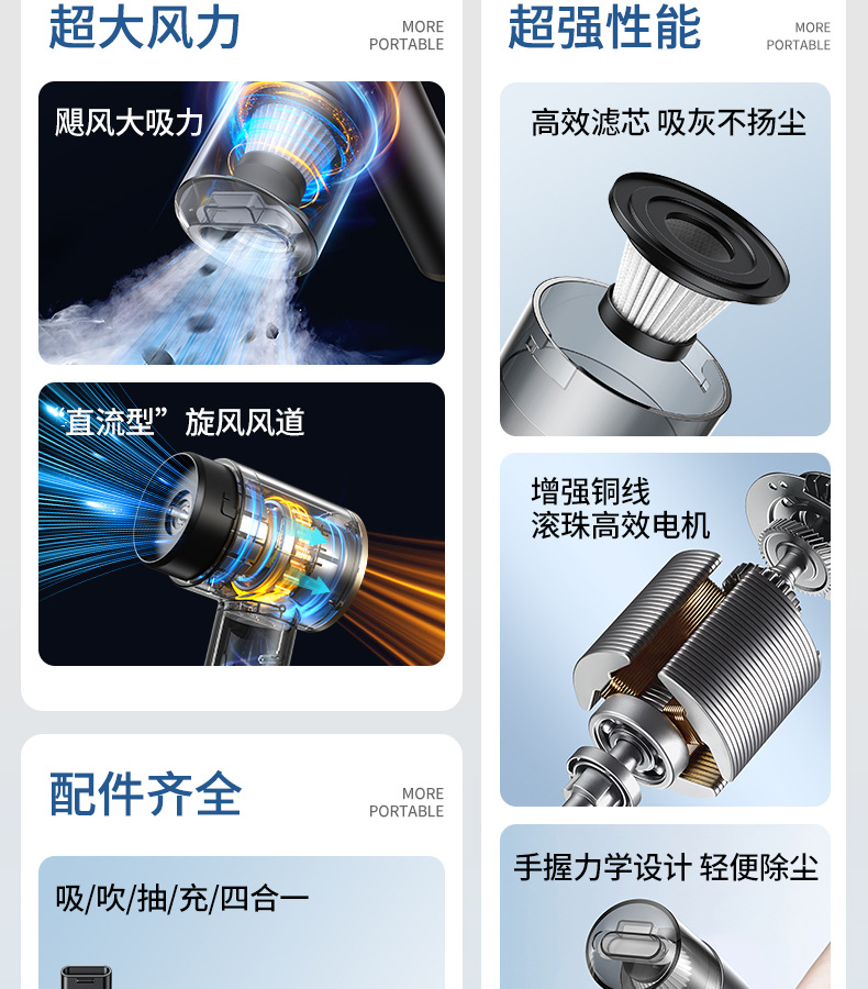 Buwei BUWEI 휴대용 자동차 무선 진공 청소기 올인원 다기능 소형 진공 청소기