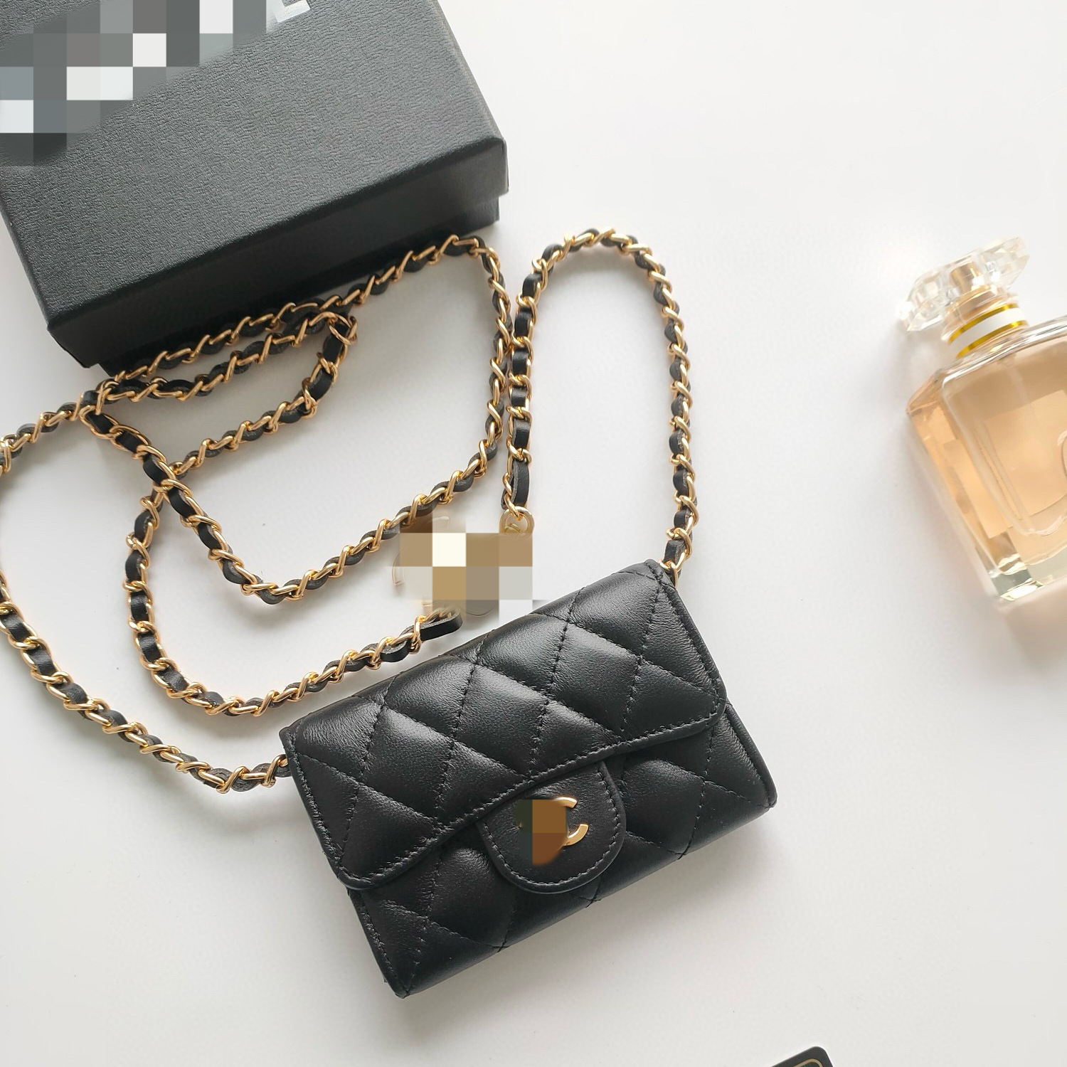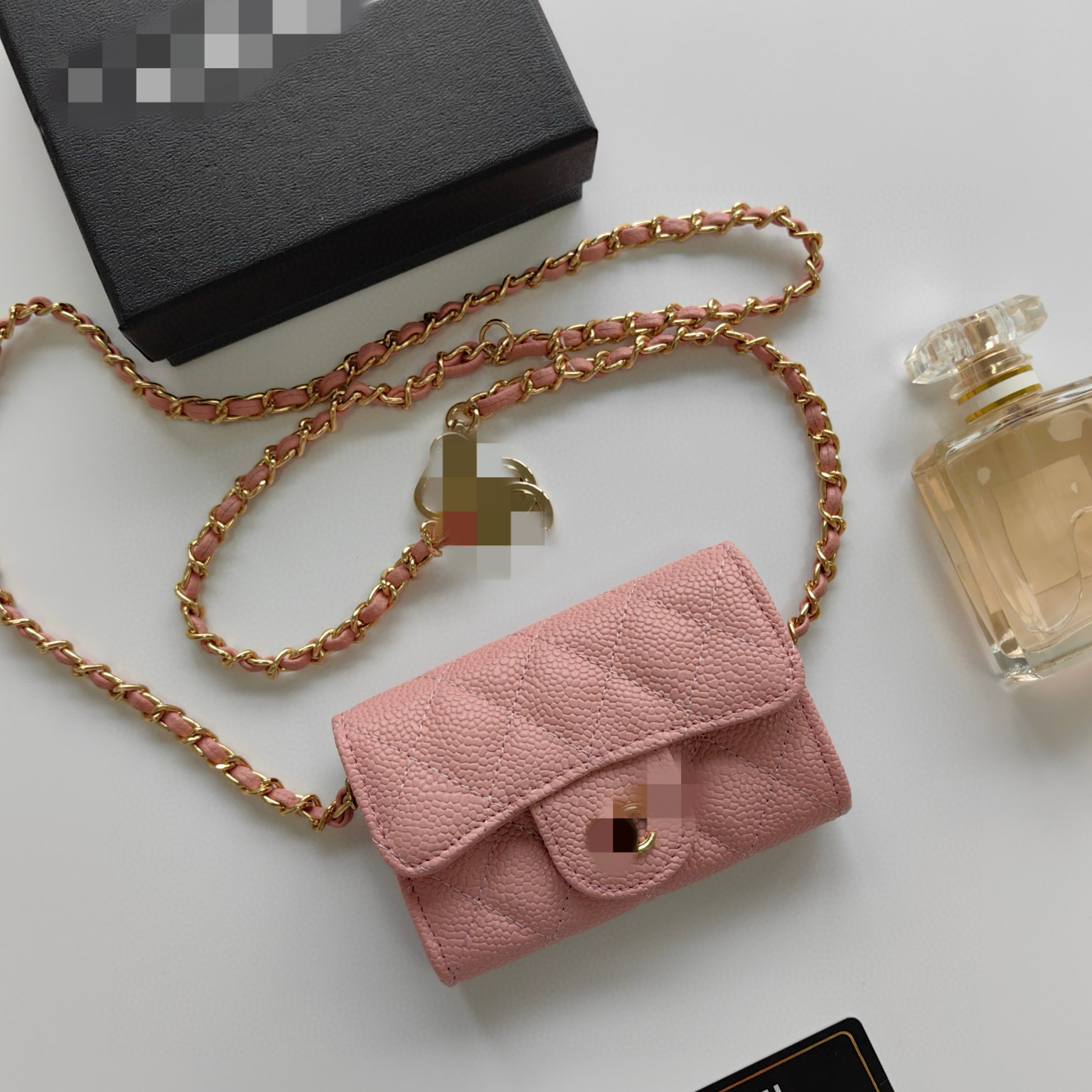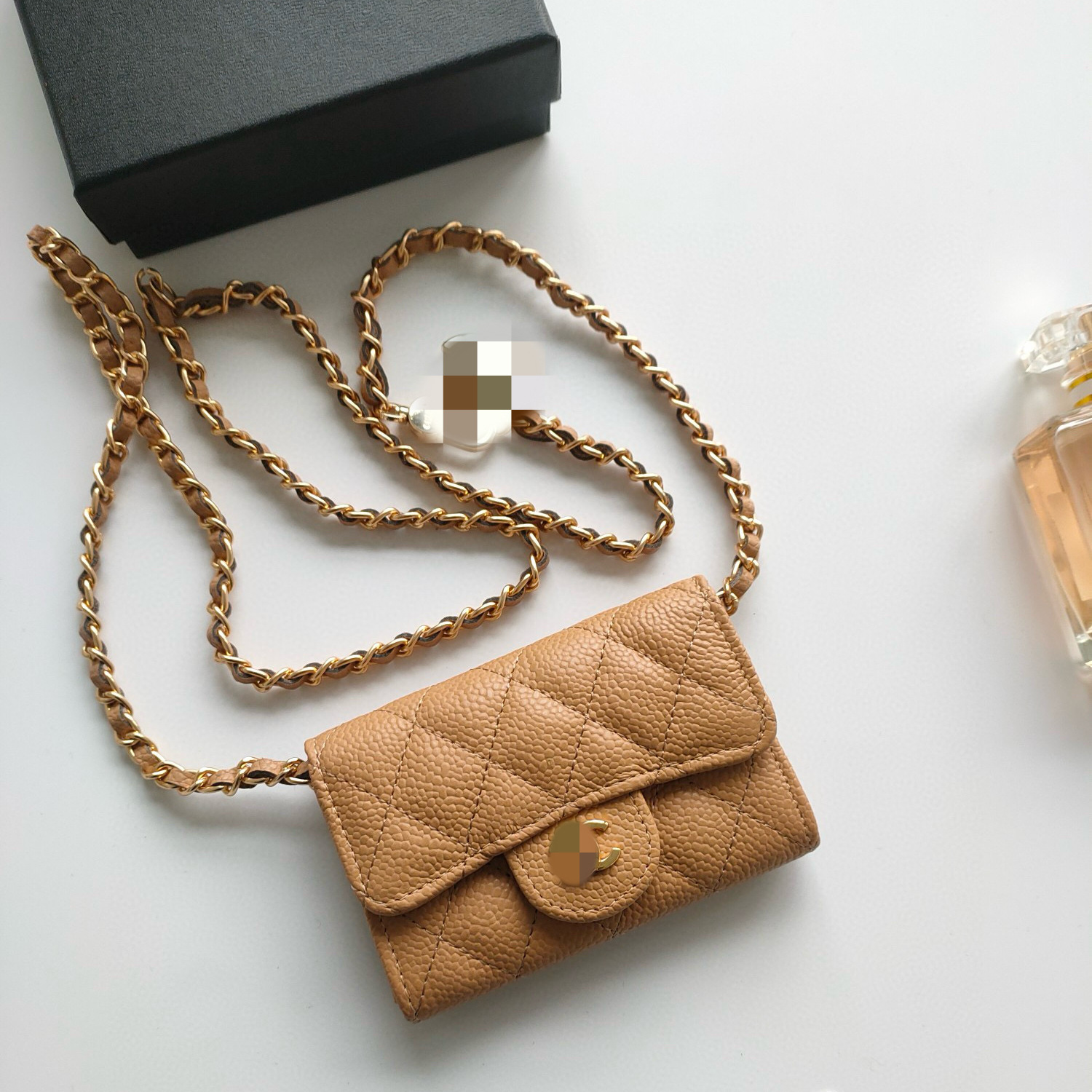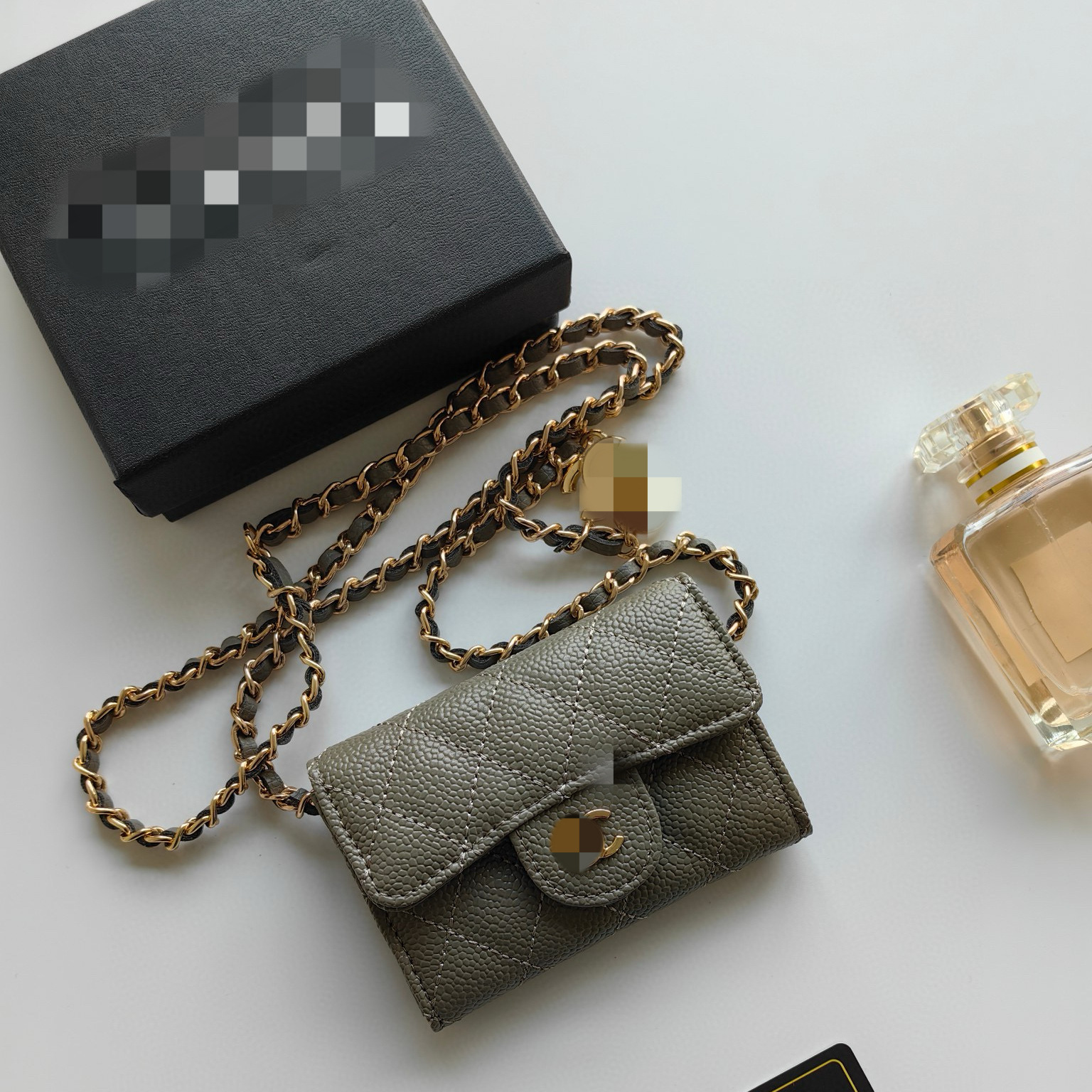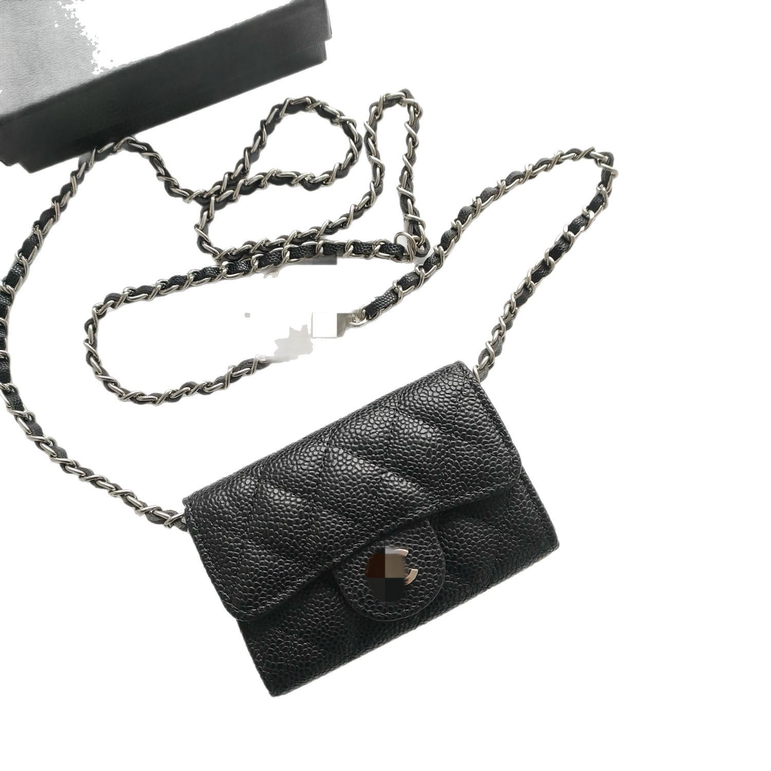이른 봄 2025 새로운 캐비아 Cowhide 카드 가방 짧은 Rhomboid 동전 지갑 틈새 디자인 정품 가죽 카드 클램프 가방