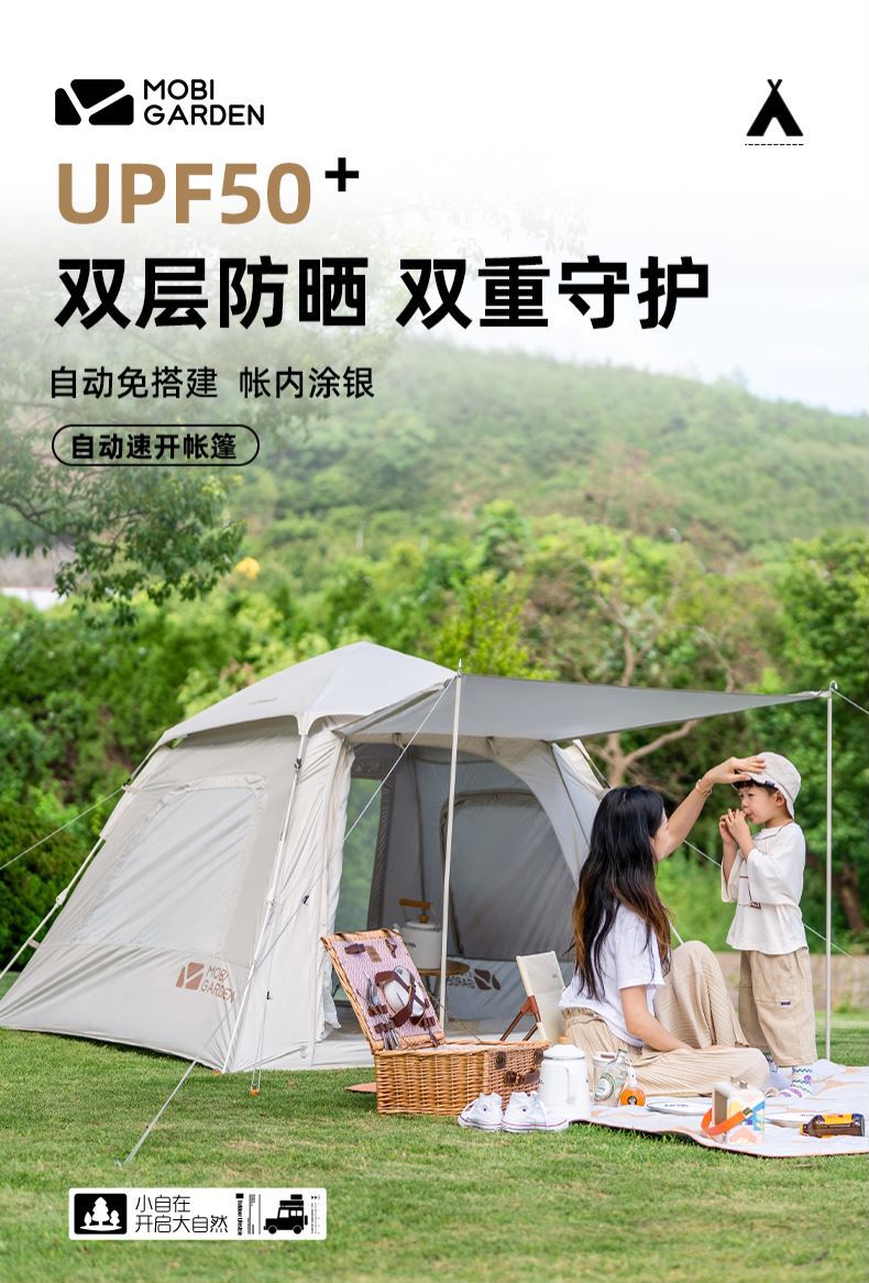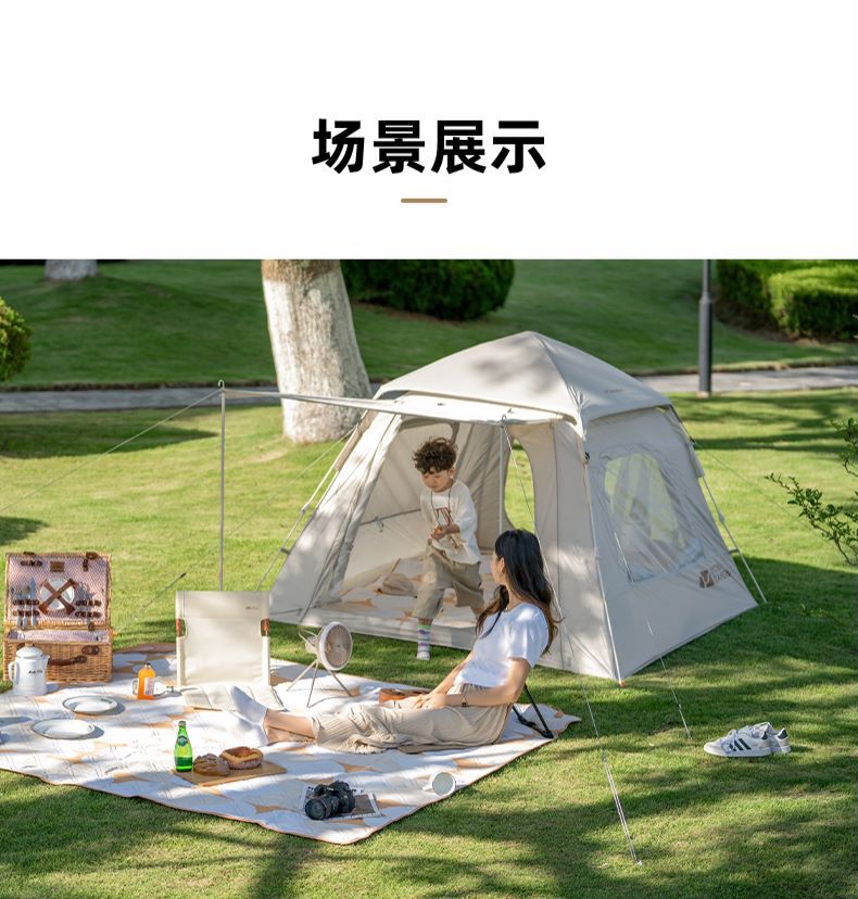 무가오디 텐트 자동 설치 공원 자외선 차단 캠핑 용품 휴대용 접이식 3-4인용 제로모션 145 블랙글로스
