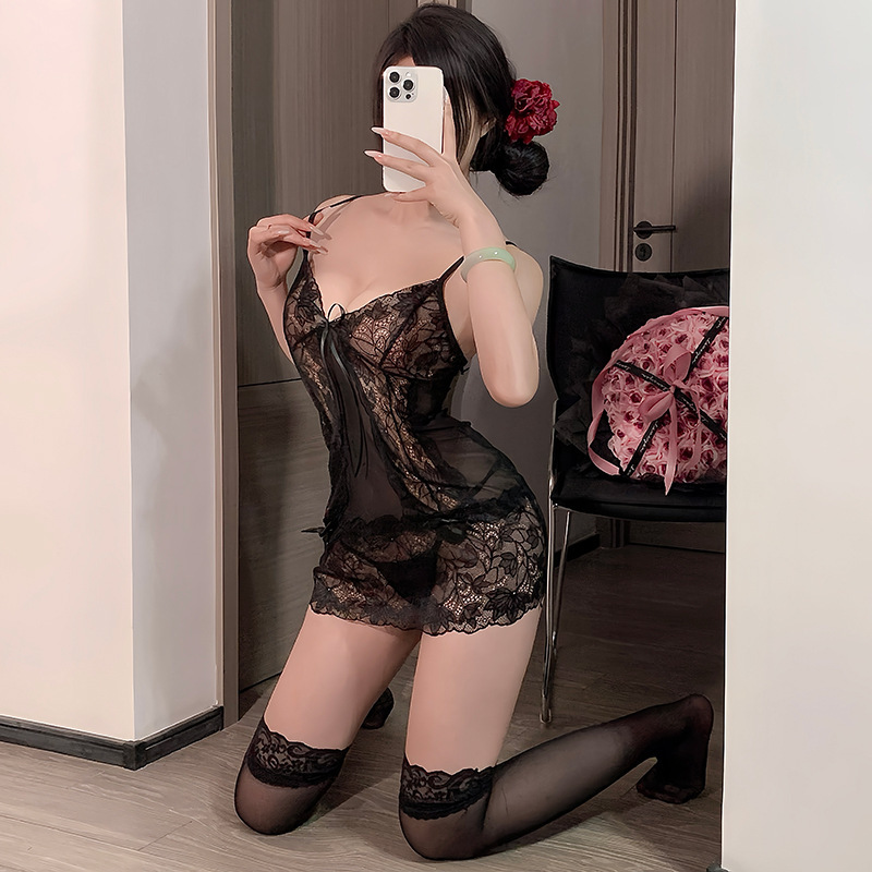 재미있는 란제리 섹시한 할로우 레이스 관점 보라색 메쉬 파자마 순수한 욕망 슬링 잠옷 3236