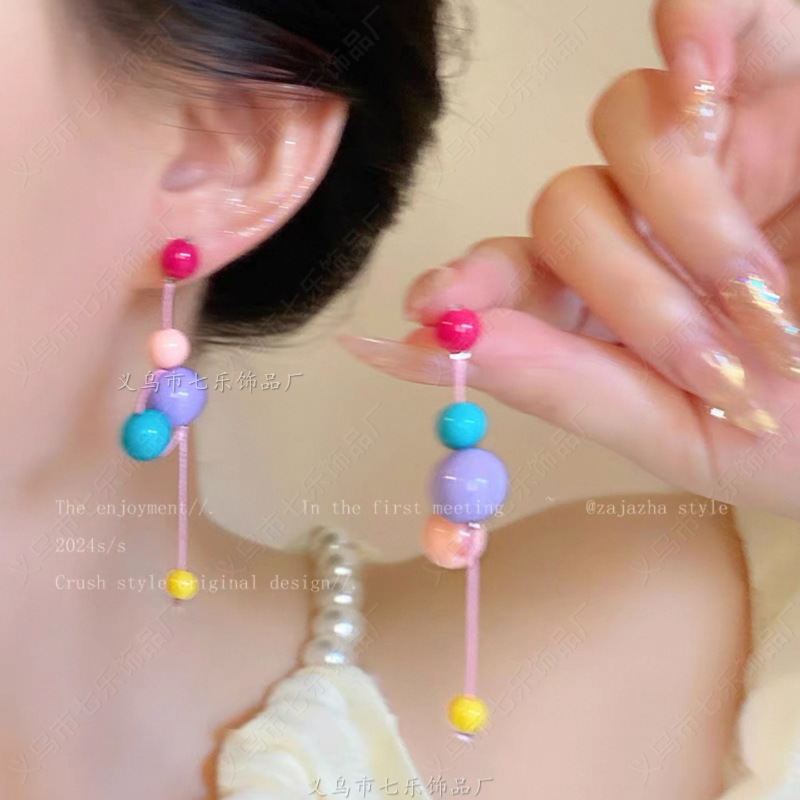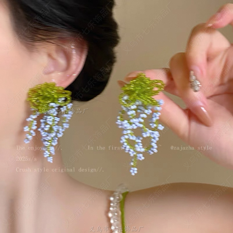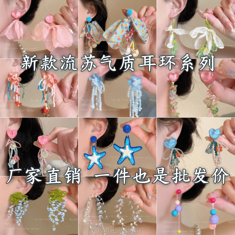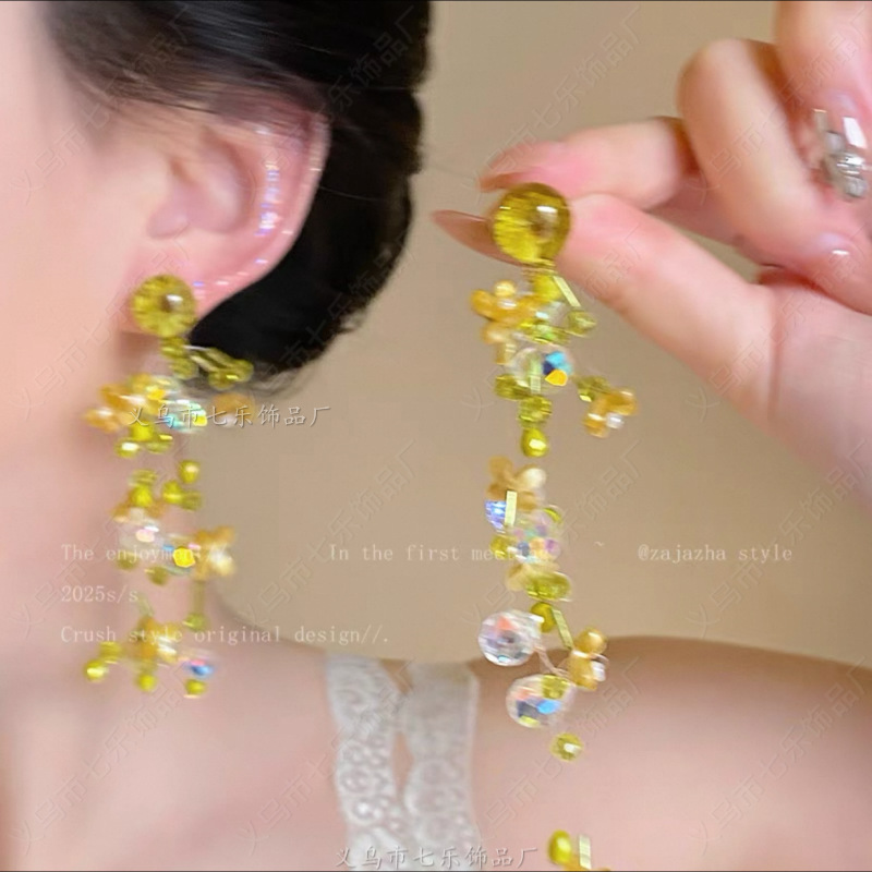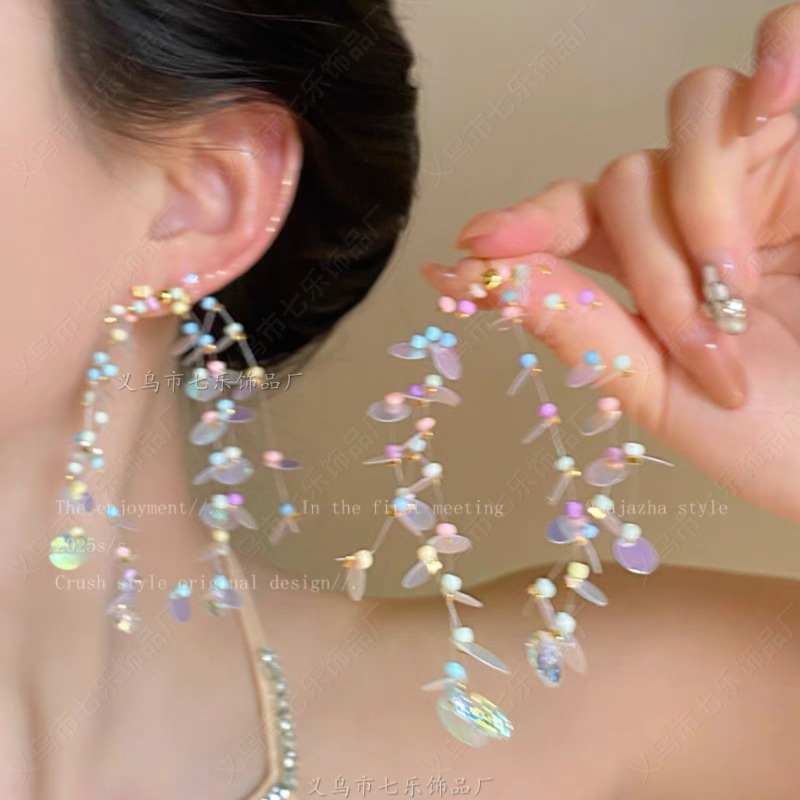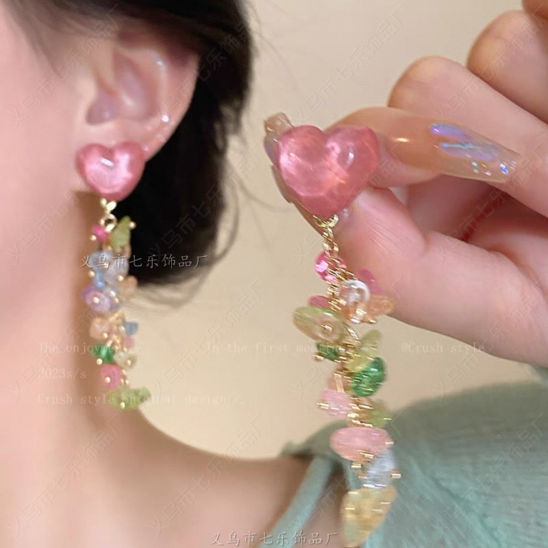 2026 컬러풀한 인조 크리스탈 꽃무늬 태슬 귀걸이, 달콤하고 상큼한 이어훅 귀걸이, 한국 스타일의 고급 귀걸이