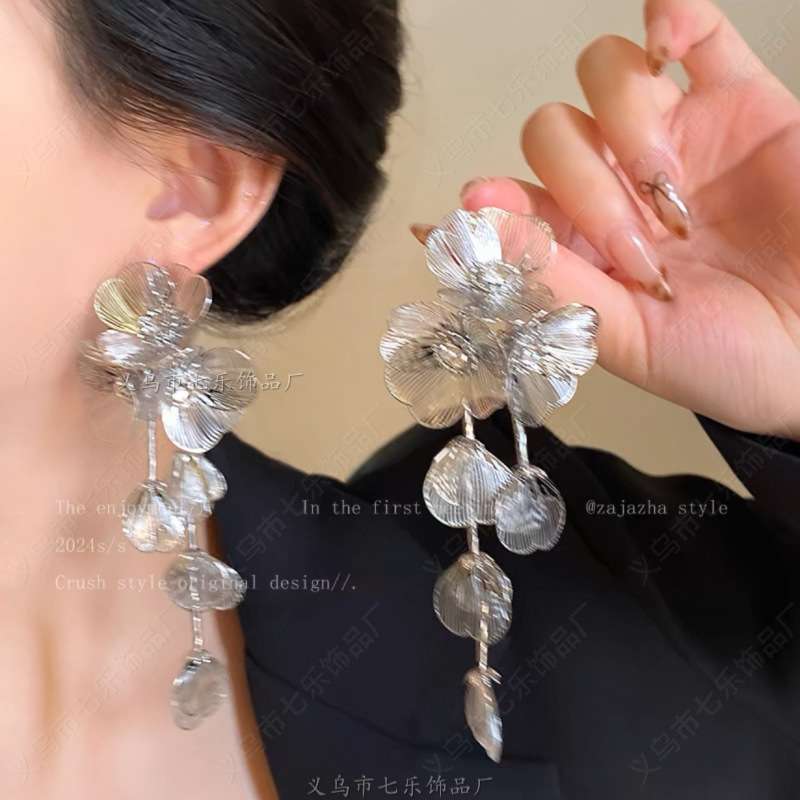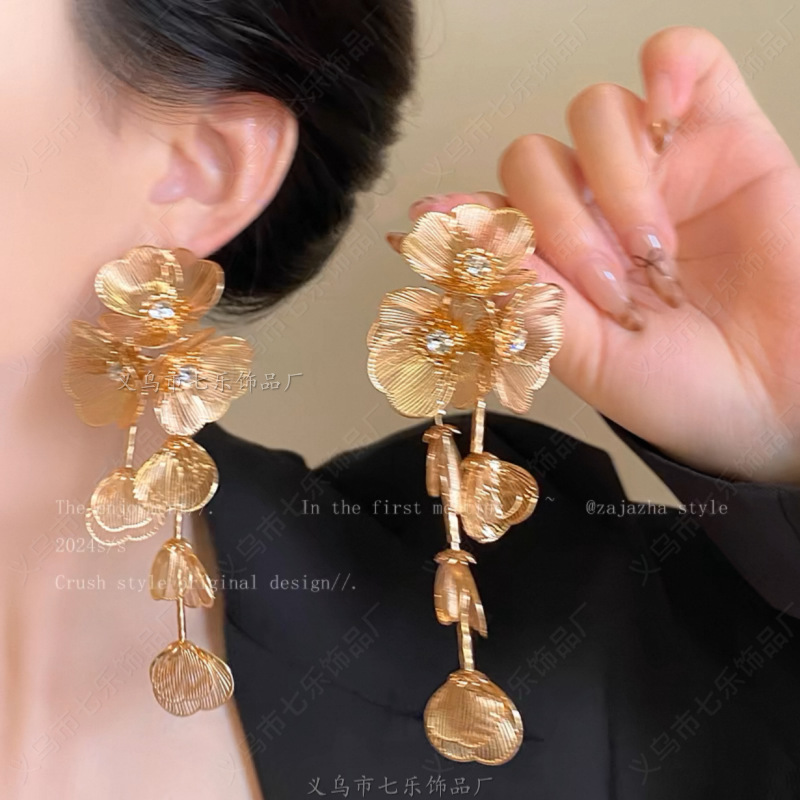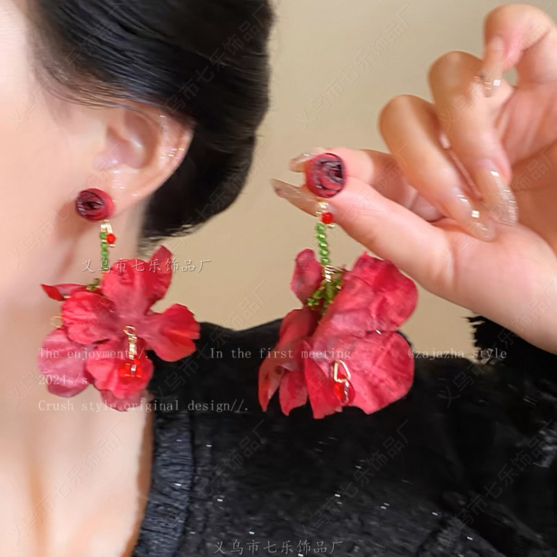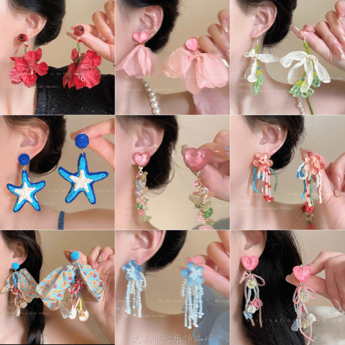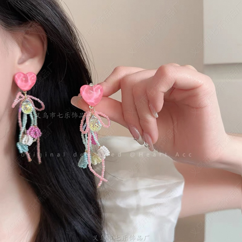 2026 컬러풀한 인조 크리스탈 꽃무늬 태슬 귀걸이, 달콤하고 상큼한 이어훅 귀걸이, 한국 스타일의 고급 귀걸이