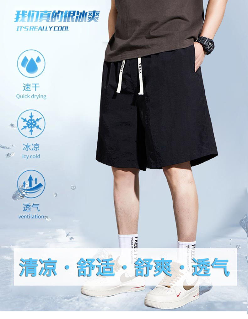 남자 반바지 여름 얇은 2025 새로운 스포츠 캐주얼 빠른 건조 통기성 아이스 실크 느슨한 스트레이트 바지