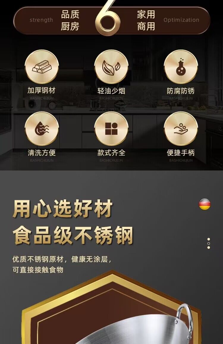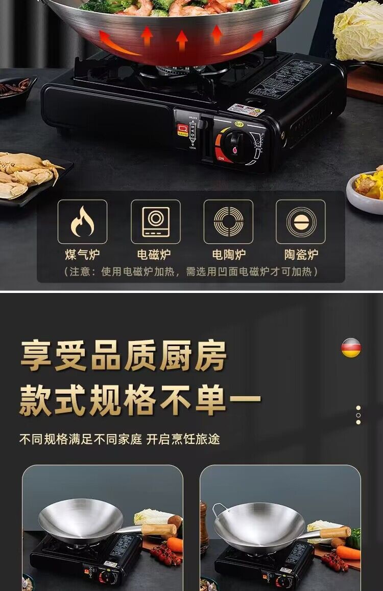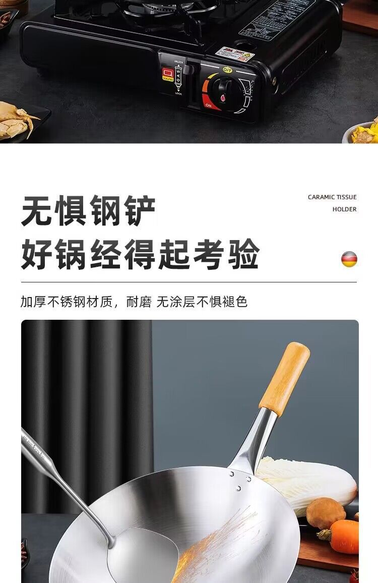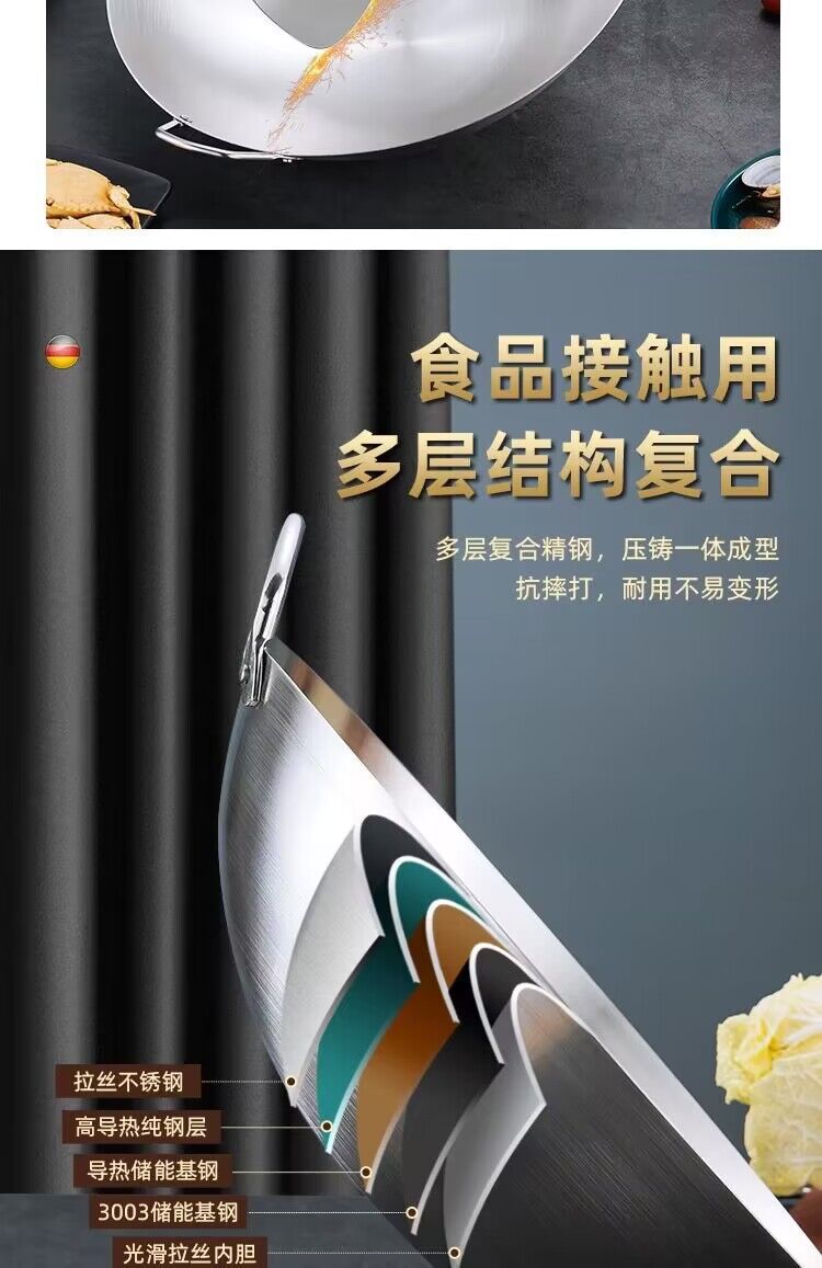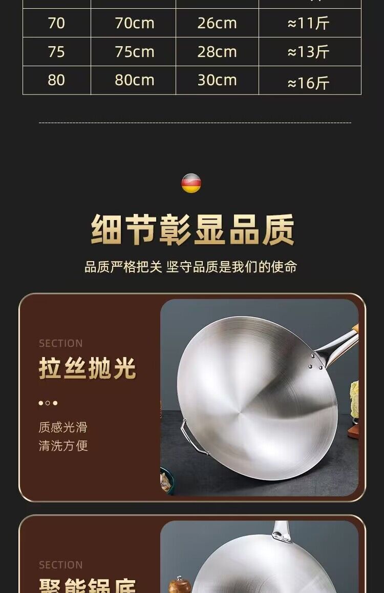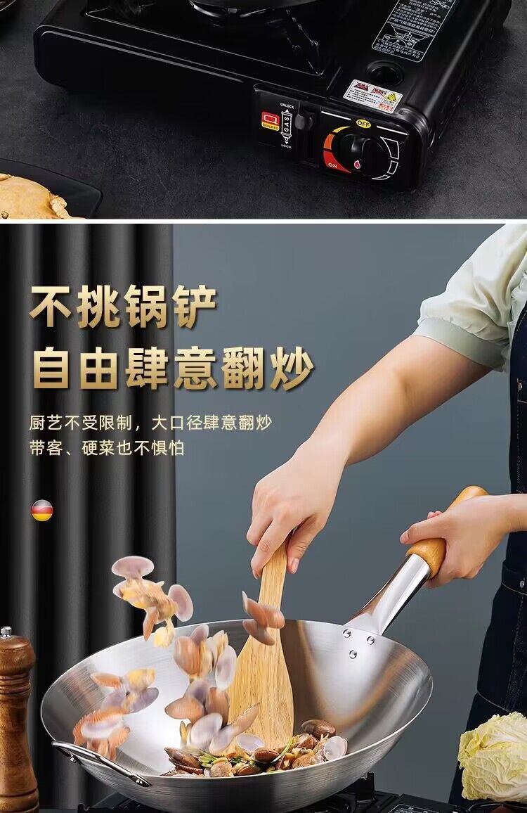 공장 직접 스테인레스 스틸 wok 비 자기 비 코팅 이중 귀 두꺼운 가정용 단일 핸들 나무 손잡이 비 스틱 웍