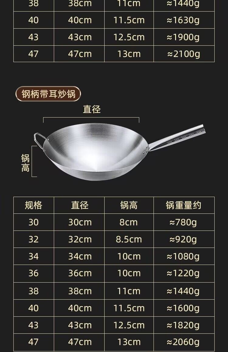 이중 귀 강철 손잡이 웍 38cm