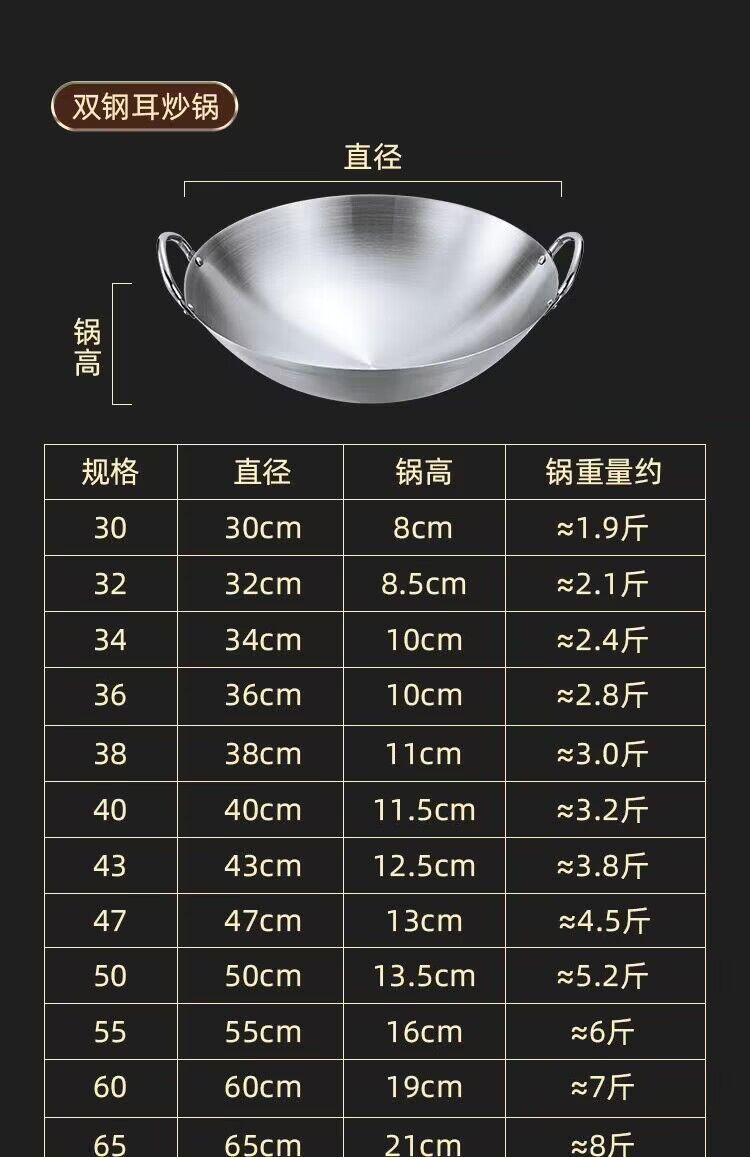 이중 귀 강철 손잡이 웍 36cm