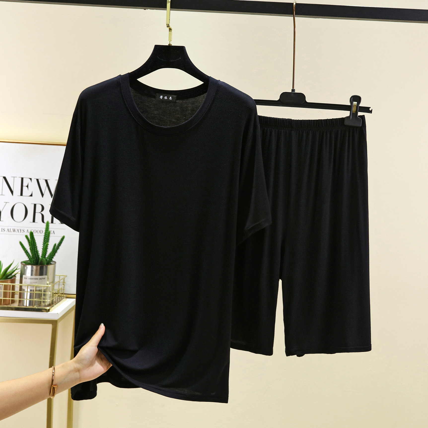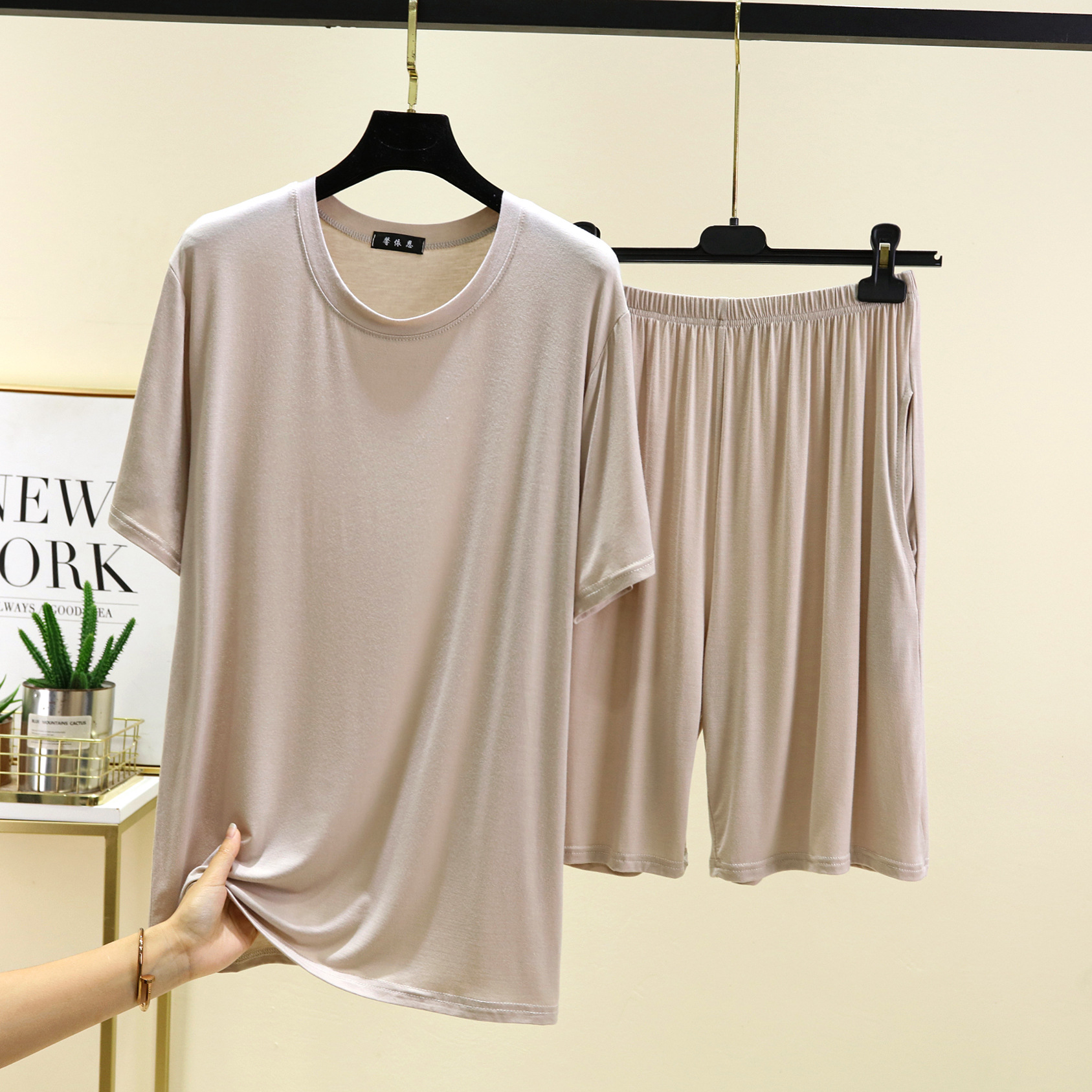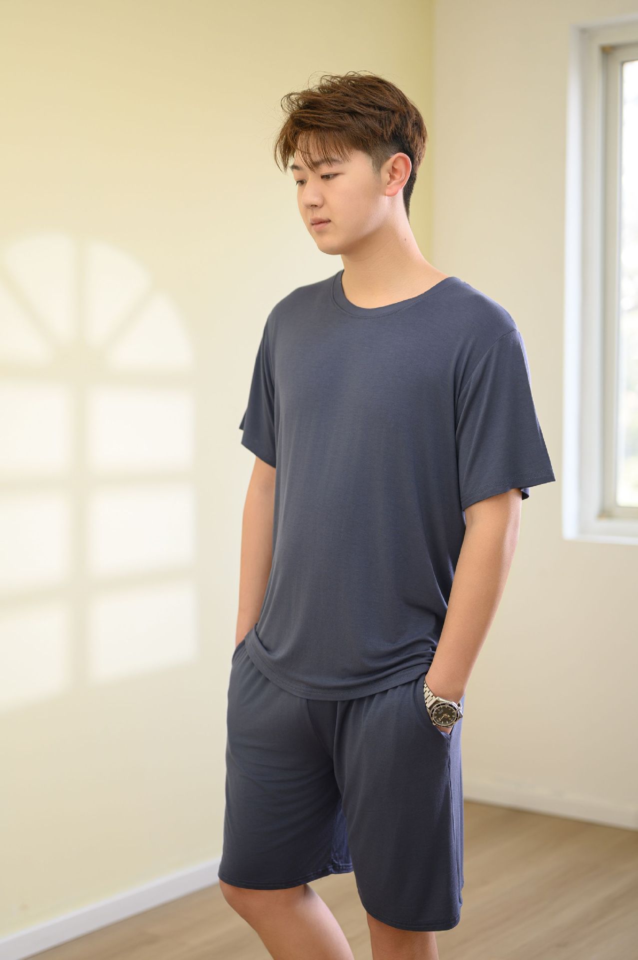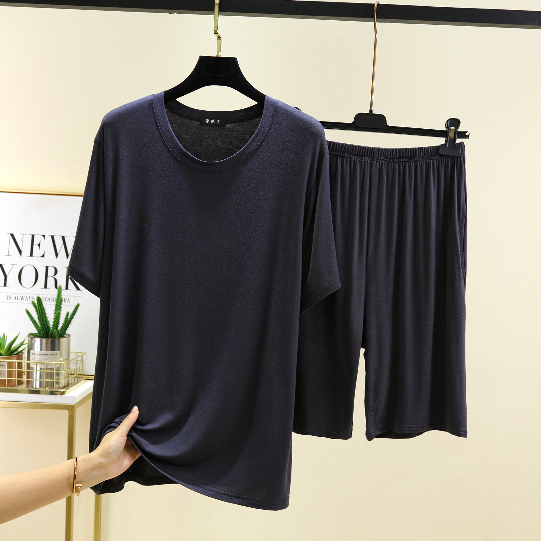 모달 캐주얼 잠옷 남성용 얇은 느슨한 반팔 반바지 봄과 여름 착용 가능한 스포츠 홈웨어 세트