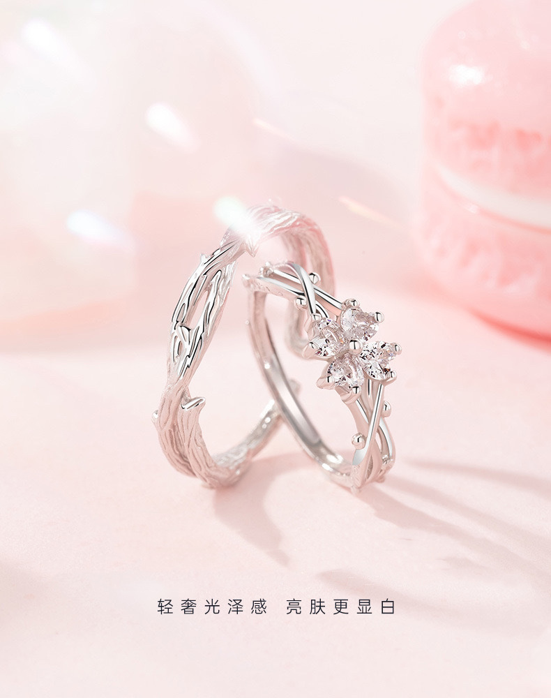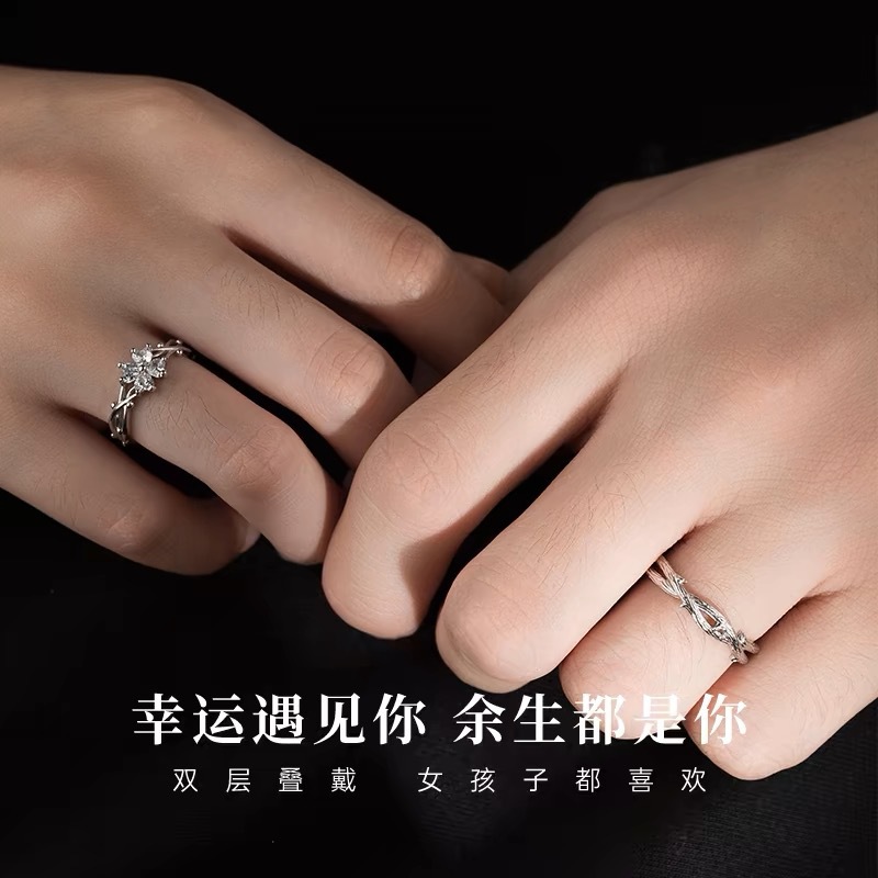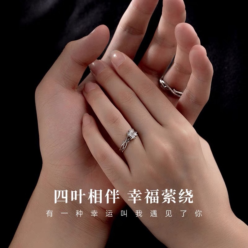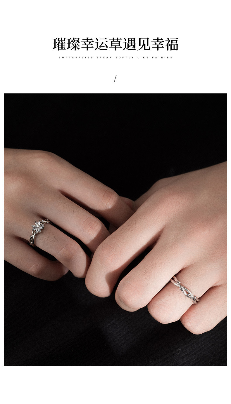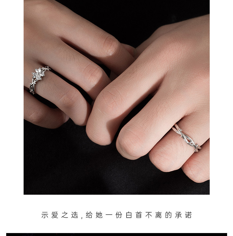 가시 네 잎 클로버 하트 모양의 커플 링 남성과 여성을위한 한 쌍의 가벼운 럭셔리 간단한 질감 스타일 조정 가능한 링 링