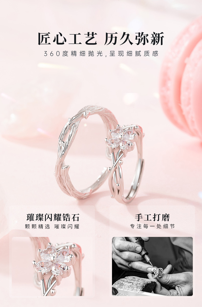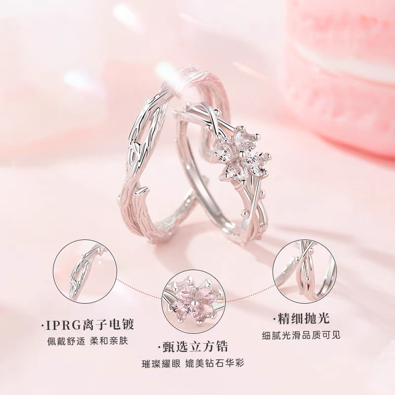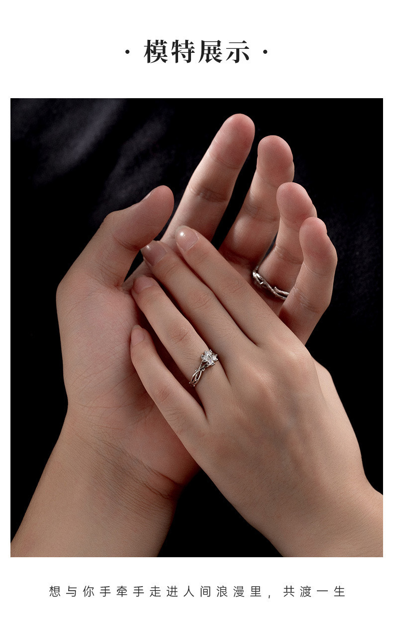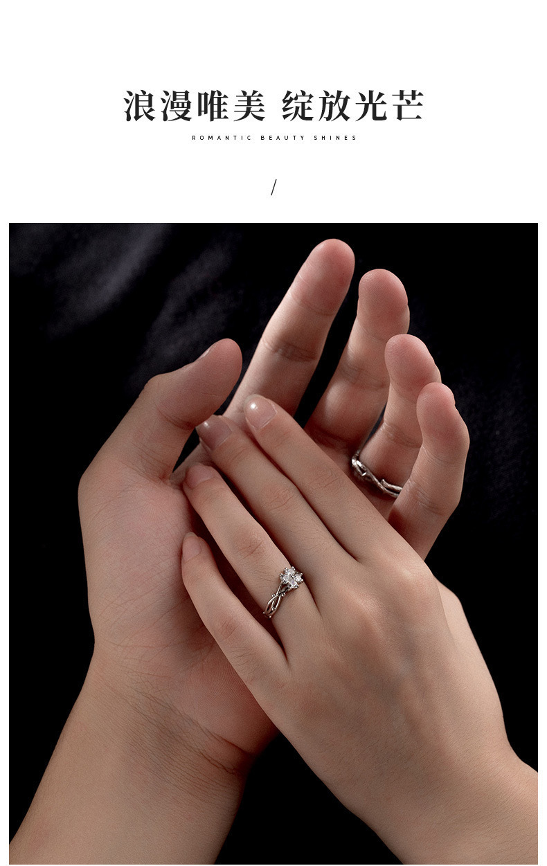 가시 네 잎 클로버 하트 모양의 커플 링 남성과 여성을위한 한 쌍의 가벼운 럭셔리 간단한 질감 스타일 조정 가능한 링 링